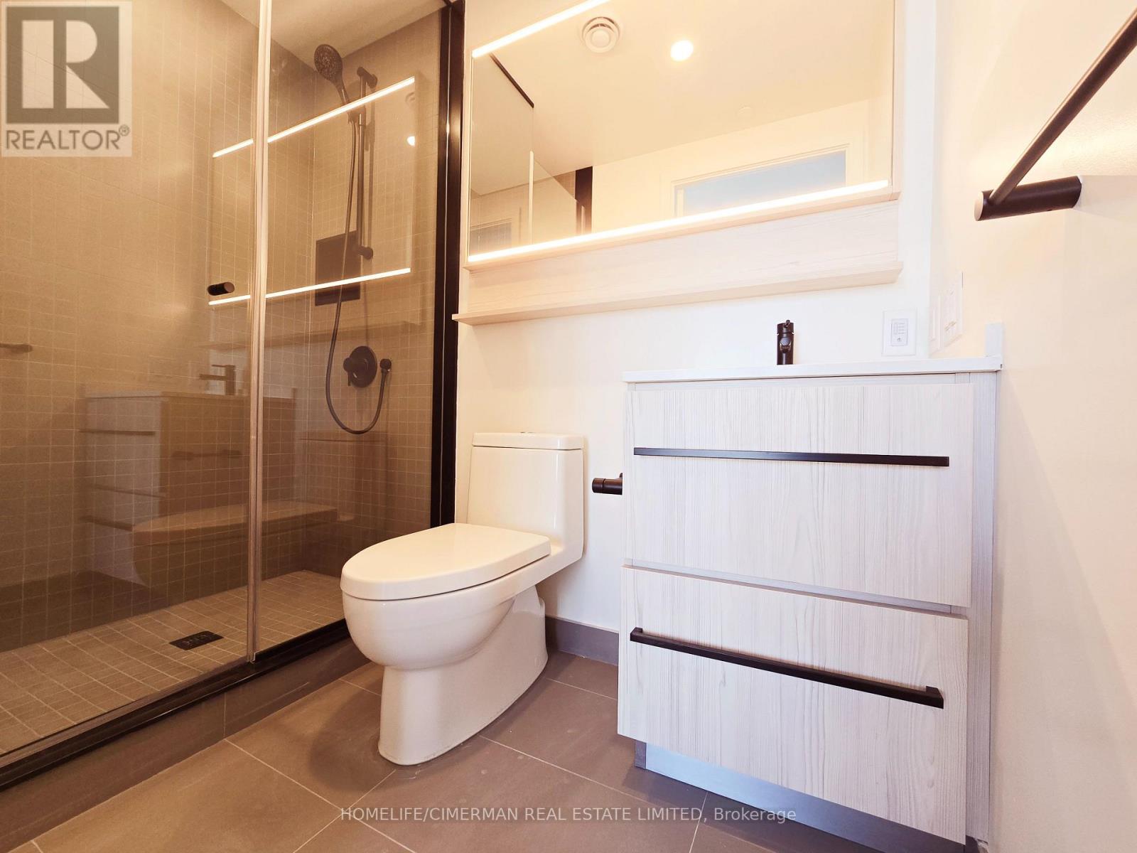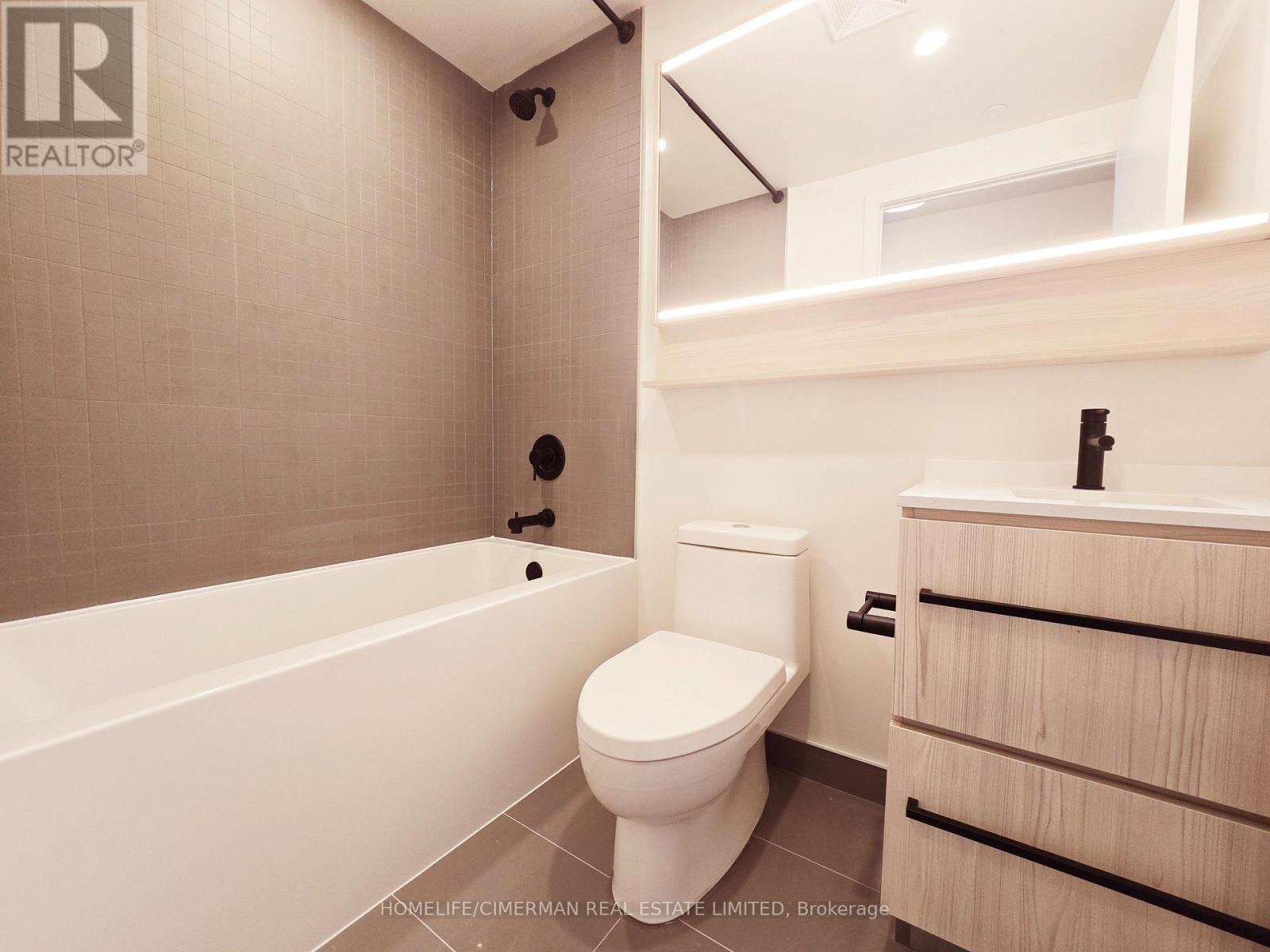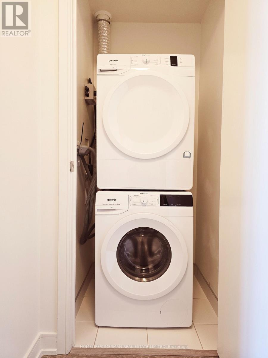 This bright and meticulously designed 2 bedroom, 2 bathroom condo in the Canary District offers modern urban living with a huge Balcony of 105 SQ Ft with unobstructed view. The unit features 9-ft smooth ceilings, premium finishes like custom-designed European-style kitchen cabinetry with integrated LED lighting, quartz countertops, and European appliances. With sleek laminate flooring, contemporary lighting, and an in-suite washer/dryer, this space is designed for comfort and convenience. The Canary House building offers cutting-edge amenities including an entertainment room with a private movie lounge, a billiards room, and karaoke space. Enjoy panoramic city views from the fitness room, or find peace in the multi-use studio, perfect for yoga, art, or children's activities. The rooftop garden wraps around three sides of the building, offering breathtaking views, al fresco dining spaces, and a cozy fire pit. Other amenities include a party room, library, and terrace for private events or BBQs, fitness room, multi-use studio & concierge. Lively Street Retail & Dining On Front Street. 15 Min Street Car To Financial District & Subway. Short Walk To Waterfront & Distillery District. Easy Access To DVP &Gardiner Expressway. This Modern Condo Has It All! EXTRAS: includes free hi-speed internet and window coverings. (id:4555)