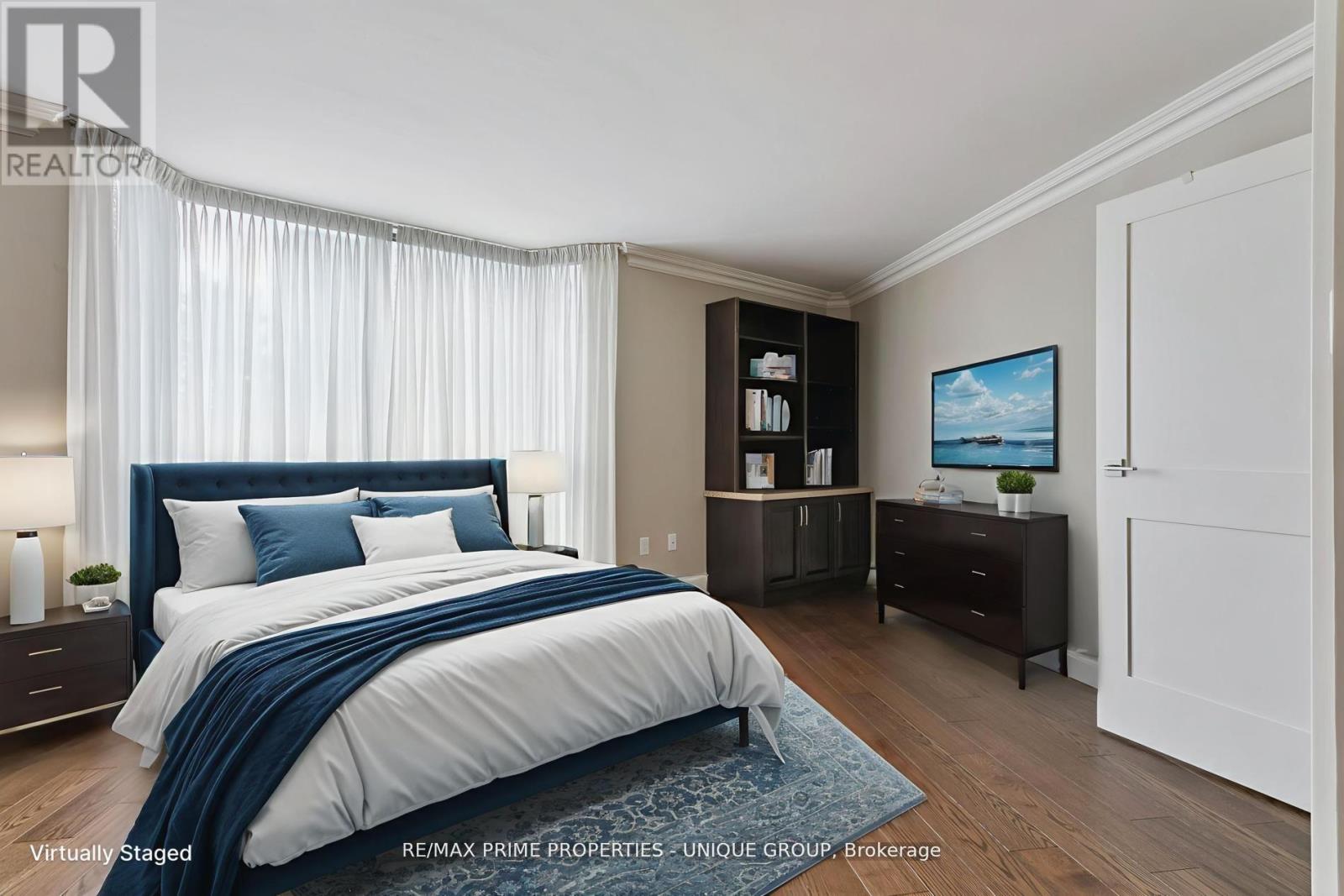 Professionally renovated throughout with top-tier finishes, this spacious Tridel-built suite offers 1,525 sq. ft. of thoughtfully designed living. The open-concept layout features a split-bedroom floor plan, ensuring privacy for guests or family. The versatile second bedroom easily adapts to a home office, media room, or reading retreat. Enjoy morning coffee on your private balcony with a southeast view. Carpet-free and move-in ready, with ensuite laundry and only six units per floor for added quiet and comfort. Explore the 3D tour and photo gallery to see both partially furnished and space-planned views. This well-managed community includes a gatehouse for peace of mind and a vibrant schedule of social activities. Convenient access to Hwy 401/427 and shopping. __**EXTRAS** Huge locker room -- 7'x10.5' x 8.5'h -- 1st locker on P2 next to elevator. 2 tandem parking spots next to elevator. 24-hr security. Maint. fee include all utilities, internet and TV. New windows installed for noise reduction and increased insulation. Luxury Resort-style amenities. __**INDOOR** pool & hot tub, sauna, gym, aerobics/yoga room, squash court, ping-pong room, golf-swing room, library, party/event room, billiard room (2 tables). __**OUTDOOR** 5 BBQs & Patio, massive swimming pool. 3 Tennis/Pickle Ball courts, lush gardens. (id:4555)
