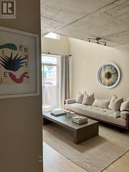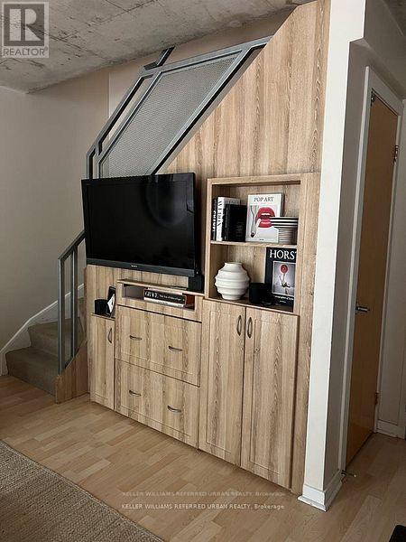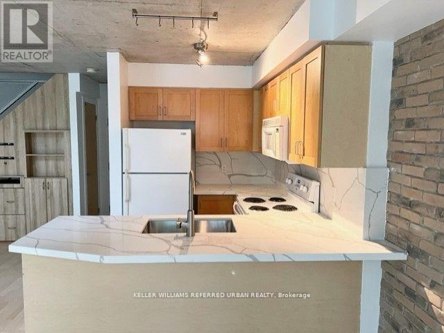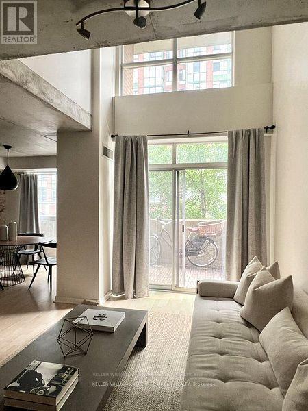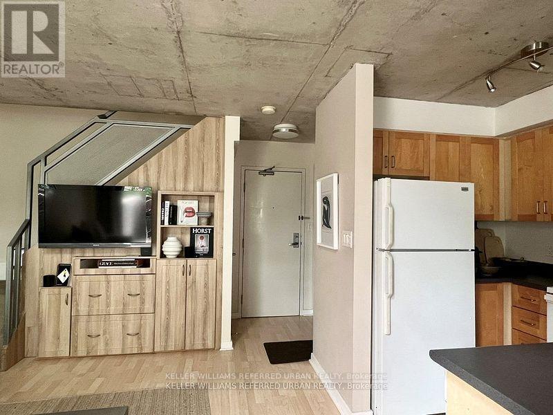 Experience elevated urban living in this remarkable 2-Level Loft! Welcome to a unique blend of sophistication & functionality in this exceptional 2-level loft. Offering 1 bed + versatile den, bathroom + powder room & soaring 16-foot ceilings, this loft boasts approximately 800 sq/ft of thoughtfully designed living space. The second floor is your sanctuary, featuring a spacious Primary Bedroom that can comfortably fit a King Size Bed, a 2nd-floor laundry, and an open-concept den with a custom-built desk & storage for all your needs. Your own south facing private balcony where sizzling BBQ feasts are not only welcome but encouraged. Heat, Hydro and Water are included in the lease, making budgeting a breeze! You will also enjoy the convenience of one parking space, a locker for additional storage & a private bike rack. *Photos from prior listing & New White Marbled Kitchen Countertop Installed* (id:4555)
