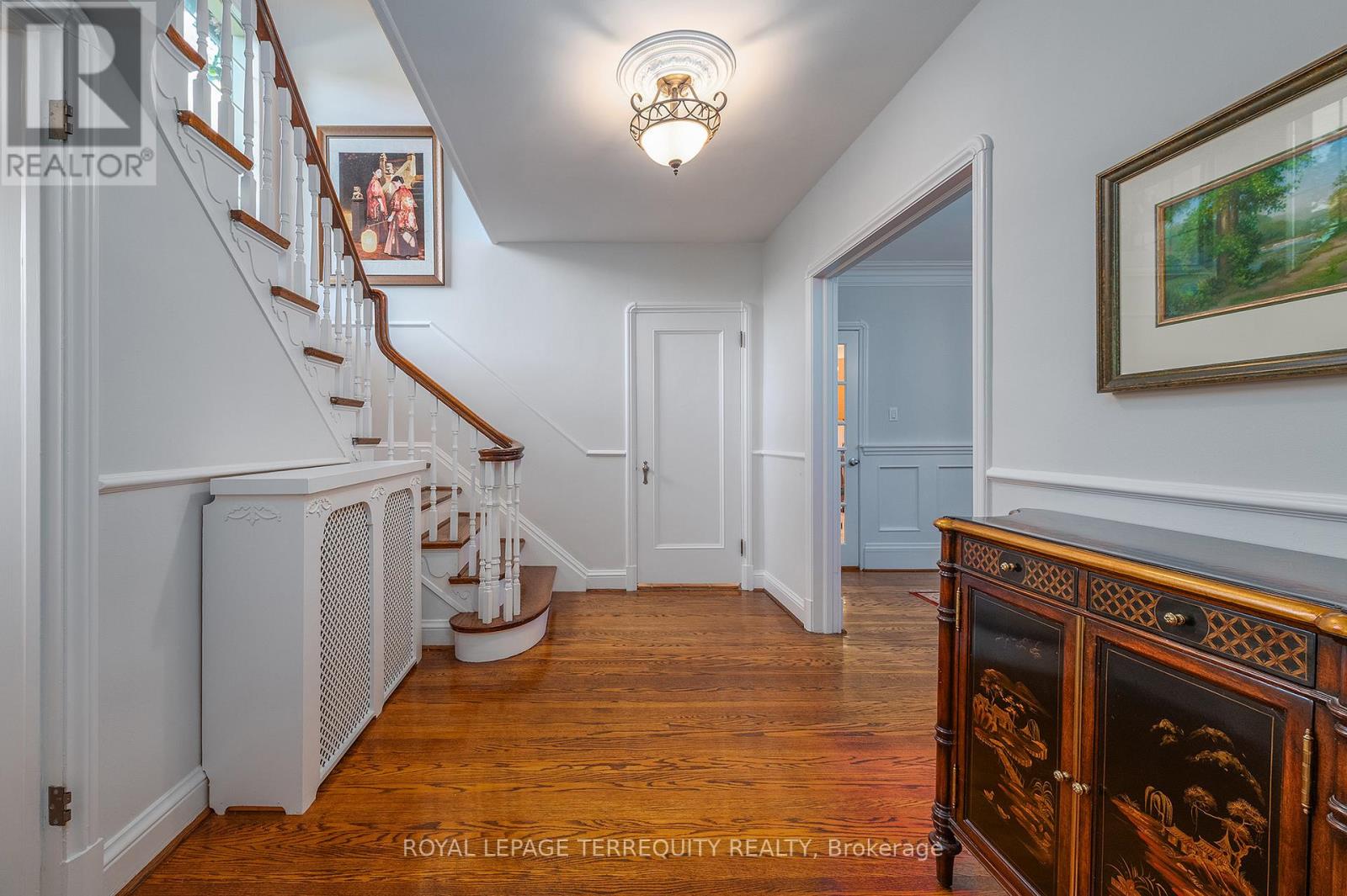 Exceptional Riverside Drive Residence. Rarely available 75' by 226' Ravine Lot. Solid Family Home with space to grow into. Gracious Living room centered around a stately open gas fireplace. Dining room with views to the wooded backyard. Mid Century modern eat-in Kitchen with access to the elevated oversized deck - perfect for morning coffee or twilight wine. Convenient powder room and covered access to the double car garage complete the main floor. Four generous bedrooms on the second - primary with a 3 piece ensuite overlooking the ravine. Wonderful potential to develop the loft attic. (Make sure to walk up the stairs and view) Above grade walk out basement to stone patio from the home office/bedroom. Full size recreation/games room - billiards anyone? Separate laundry room plus ample storage in the utility room. Steps to "Lucy Maud Montgomery" Parkette. All the above on a coveted street in Swansea with easy walking access to the Subway, Bloor West Village Shops & Restaurants, The Old Mill and Humber River Trails. 12 minutes to the financial district and minutes to the Martin Goodman Trail Boardwalk siding onto Lake Ontario. Fantastic School Districts. Move in, live and personalize at your leisure. (id:4555)