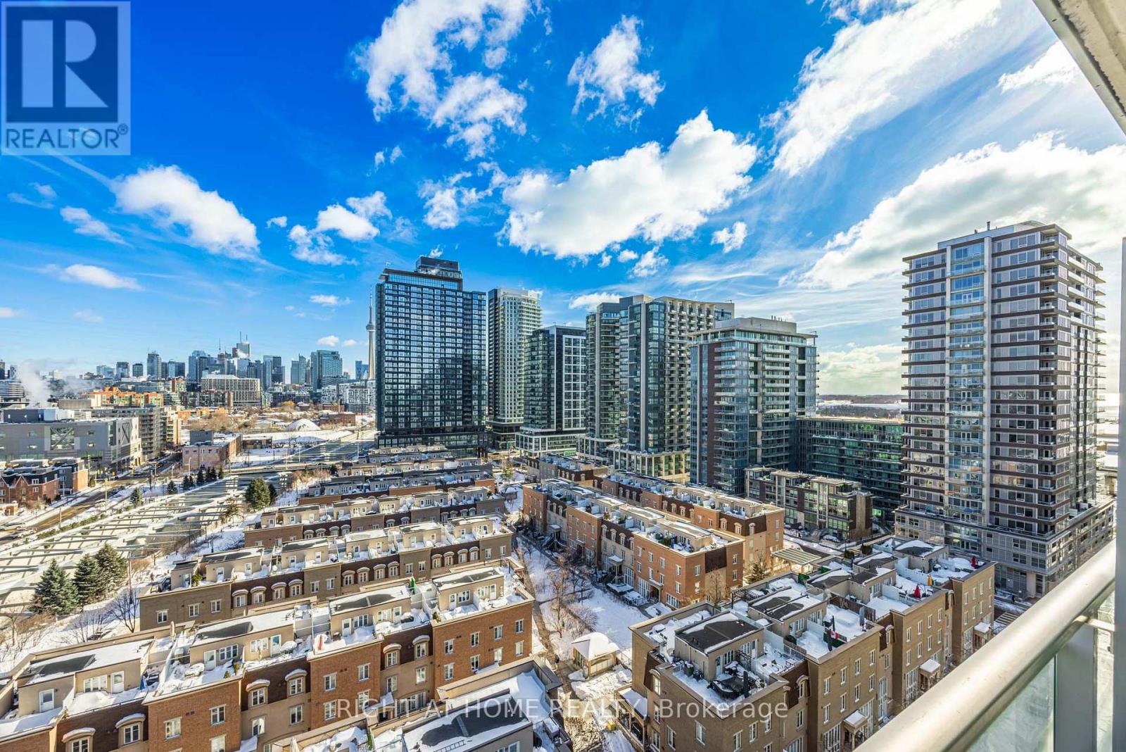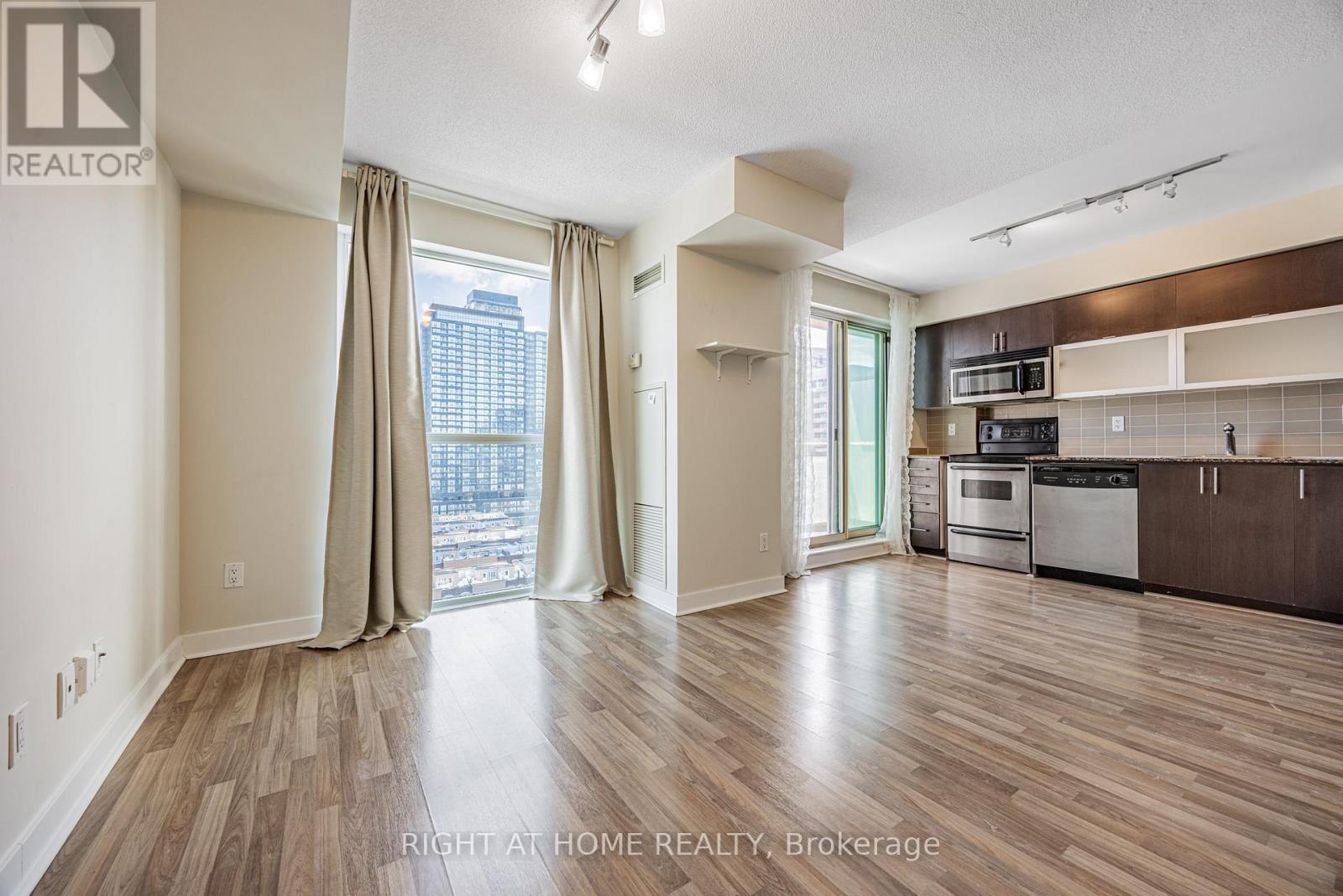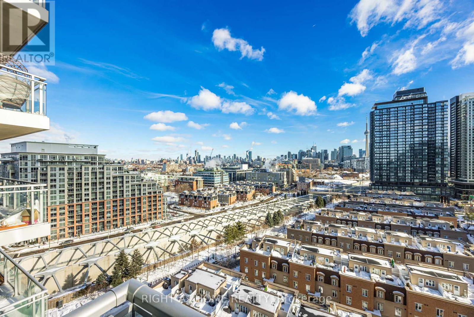 Studio living that actually works, in the middle of Liberty Village. This bright bachelor offers a smart, usable layout with room for a full-size bed, sofa, dining table, and a dedicated work-from-home nook. Floor-to-ceiling windows bring in strong natural light and frame an east-facing CN Tower and skyline view. The open-concept kitchen features stainless steel appliances, and a full 4-piece bath with ensuite laundry. A full-size locker is included for extra storage. Step outside and you're a short walk to Liberty Village essentials: transit, groceries, cafes, pubs, restaurants, and everyday conveniences, with quick access to the lake and highways. The building delivers on amenities with 24-hour concierge, indoor pool, saunas, gym, yoga studio, guest suites, and ample visitor parking. Parking spot may be available for rent through management or individual owners. (id:4555)