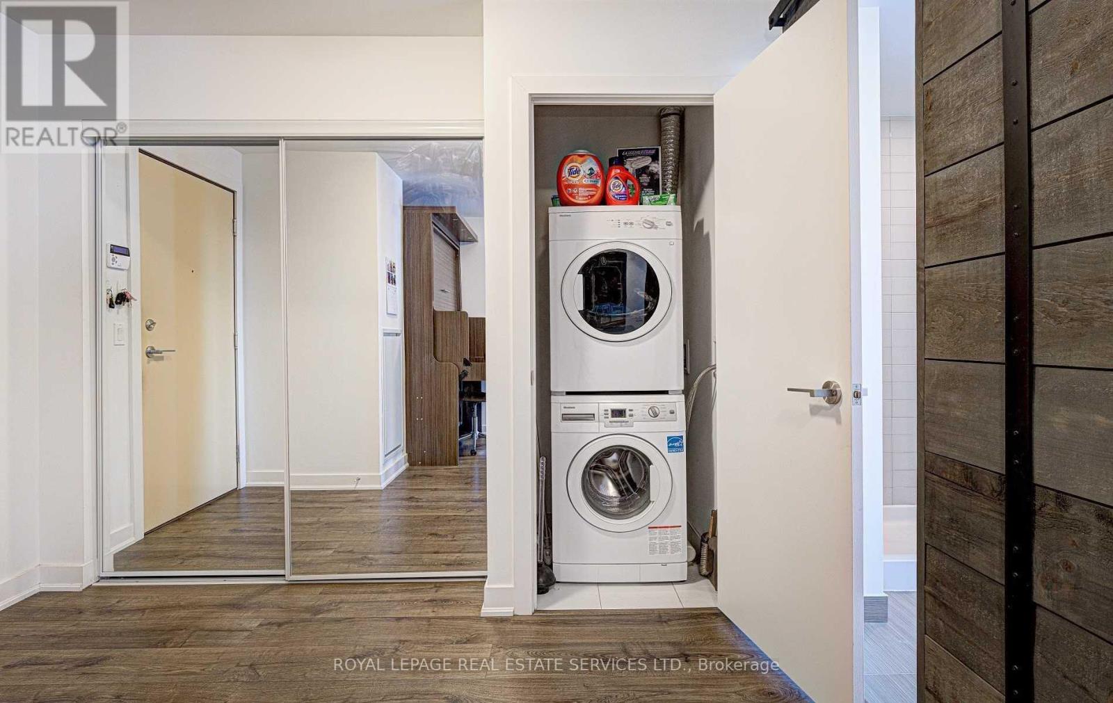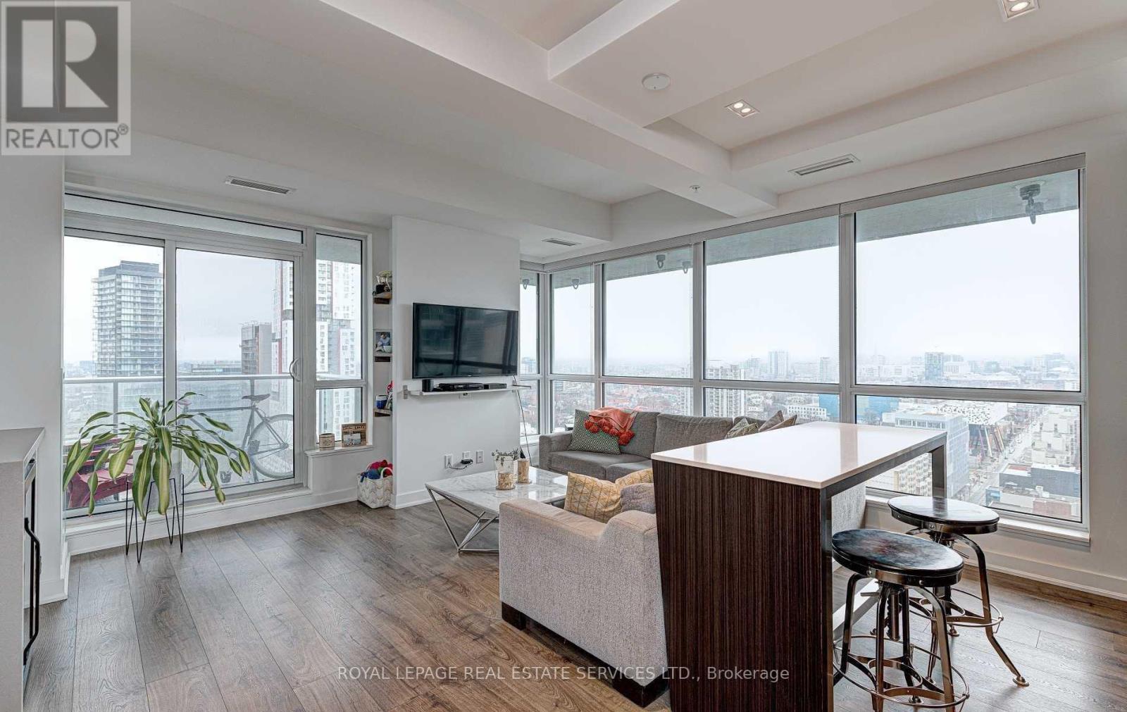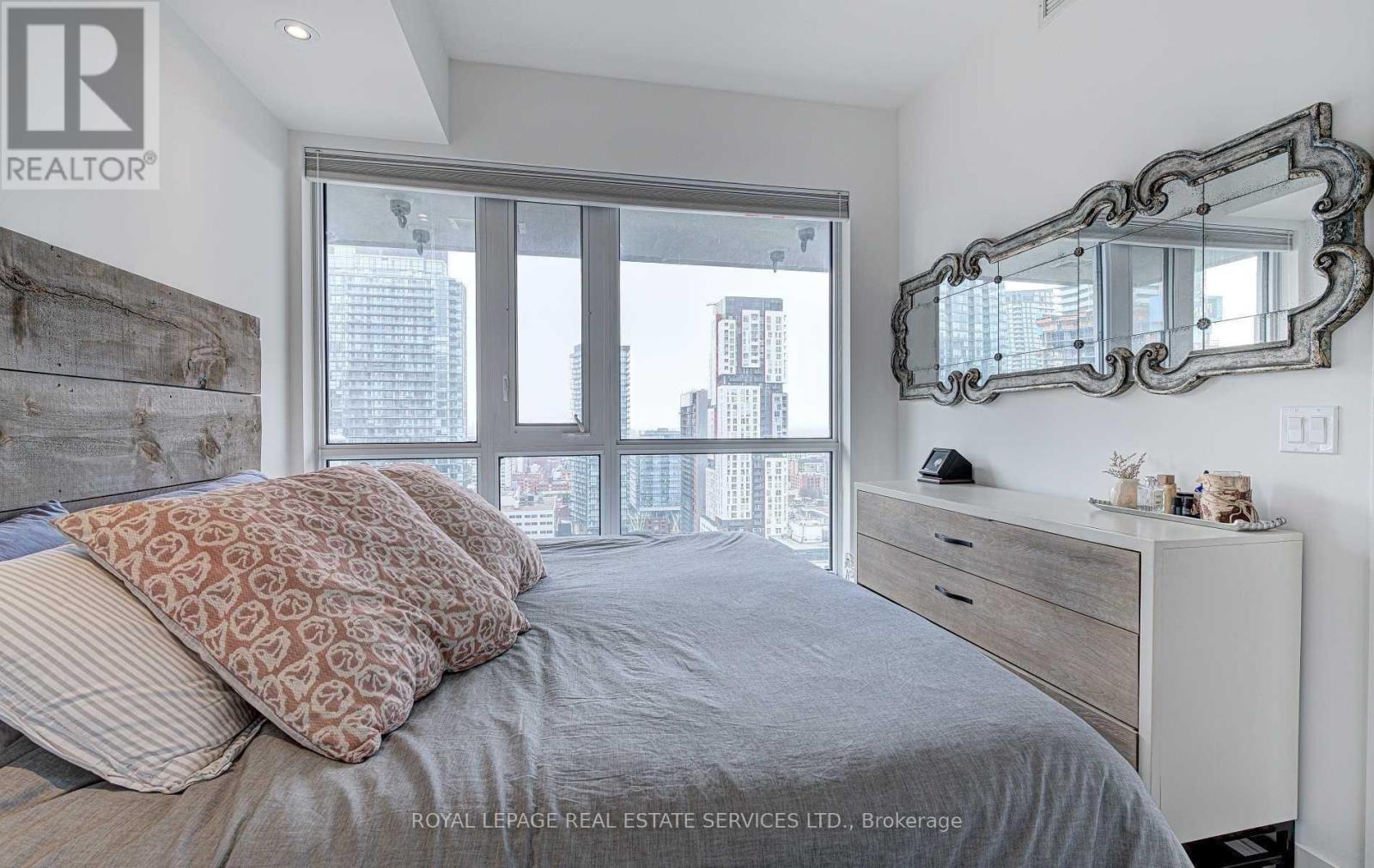 Studio 2 at Prime Location in the Heart of the Financial & Entertainment District. Immaculate **corner unit** with floor-to-ceiling windows and a rare high-end upgrades throughout. This thoughtfully designed 1 bedroom plus den offers excellent functionality, including a Murphy bed in the den, ideal for guests or a flexible work-from-home setup. Features include solid wood barn doors to the primary bedroom and semi-ensuite 3-piece bath, a built-in bar cabinet, custom TV feature wall with shelving, and custom closet organizers. The dining area showcases a waffle ceiling with pot lights, complemented by a custom center island. Walk out to a private balcony with unobstructed city views. The modern kitchen is equipped with premium Miele appliances, and the unit includes a full-size washer and dryer. Prime parking and locker are conveniently located just steps from the elevator. Building Amenities at Studio 2 include: Rooftop deck and outdoor lounge spaces; Fitness center and yoga studio; Party, media, and games rooms; Sauna; Outdoor BBQ areas and hot tub; Guest suites and bike storage; 24/7 concierge and security. This condo set on a quiet street while offering immediate access to dining, entertainment, transit, and financial core conveniences. A rare opportunity to live in a truly upgraded suite in one of downtown's most desirable locations. (id:4555)