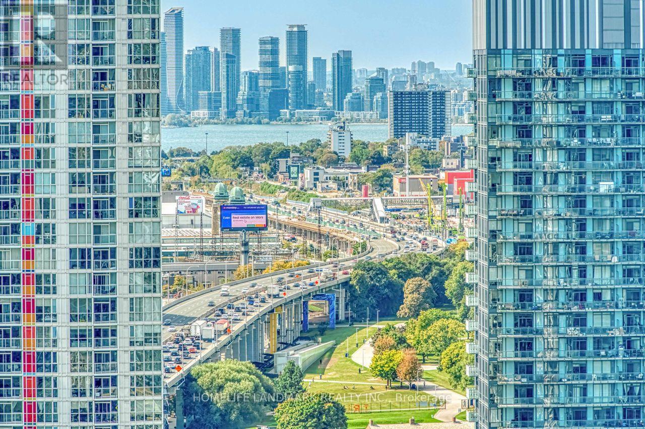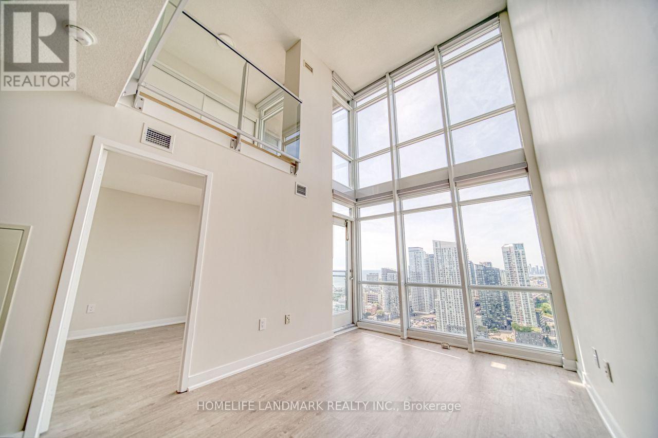 Spectacular fully upgraded 2-storey condo loft with unobstructed southwest city and lake views. Features 16-ft ceilings and floor-to-ceiling windows, offering approximately 1,032 sq ft of bright, open living space. Functional layout includes two spacious bedrooms, an open den ideal for a home office or walk-in closet, two full bathrooms, and ensuite laundry. Newly installed laminate flooring throughout. Excellent building amenities include indoor pool, sauna, gym, theatre room, billiards, party room, 27th-floor spa/party room, BBQ area and more. Prime location steps to 8-acre park, community centre, TTC, supermarkets, restaurants, banks, waterfront and entertainment district, with easy access to Gardiner Expressway. (id:4555)