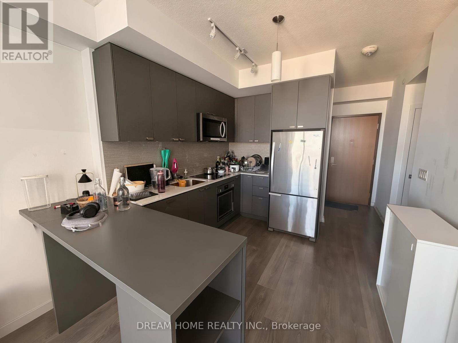 Bright and spacious 1+1 suite in the Emerald City community, offering 492 sq ft of well-designed living space plus a large 108 sq ft balcony with unobstructed north views. Functional den ideal for a home office. Modern finishes with laminate flooring throughout. Enjoy excellent building amenities including a gym, party room with outdoor patio access, steam room, outdoor Zen terrace, and hot/cold plunge pools. Prime location steps to subway and public transit, Fairview Mall, T&T, FreshCo, community centre, schools, and parks, with easy access to Hwy 404 and 401. (id:4555)