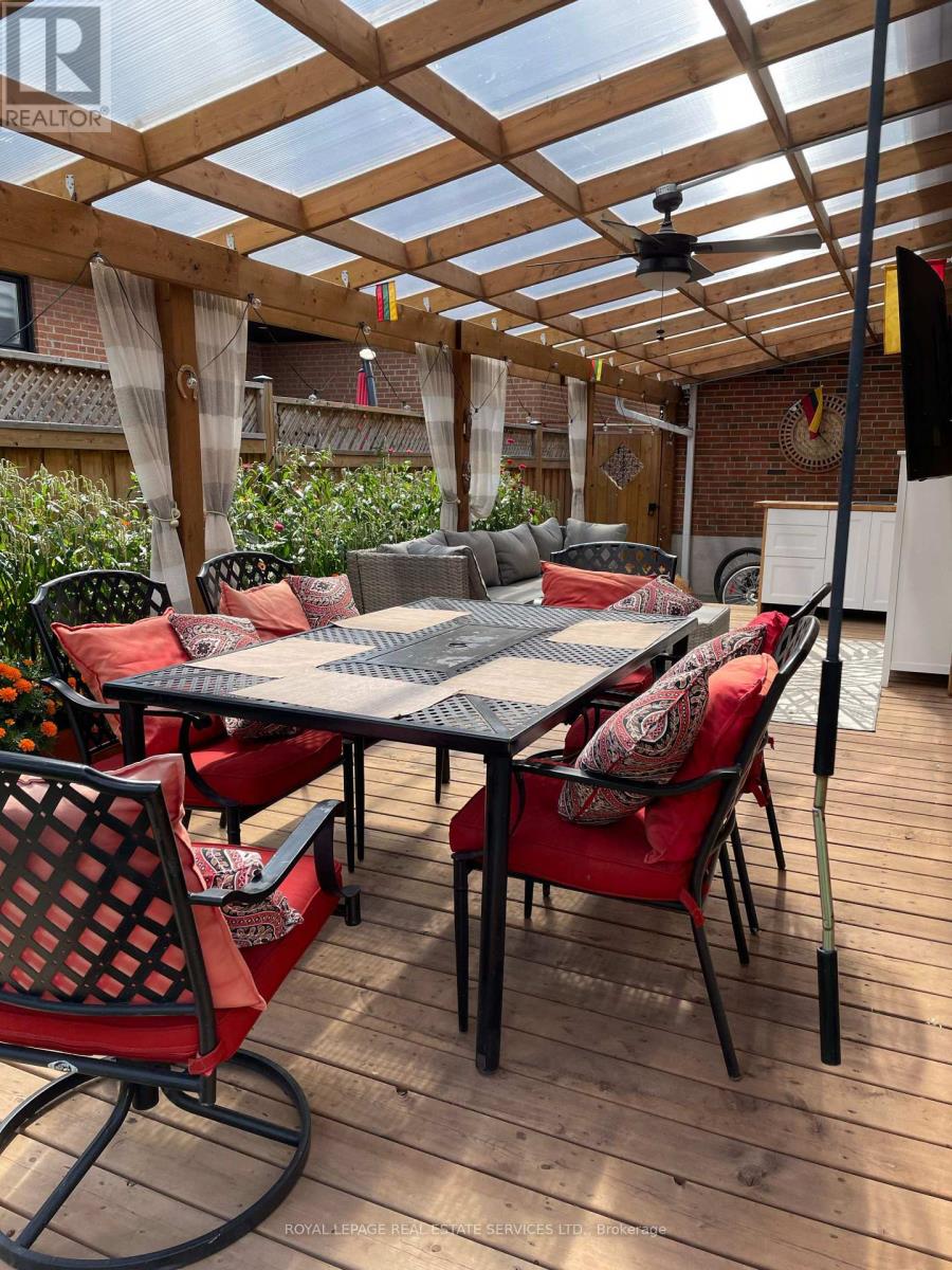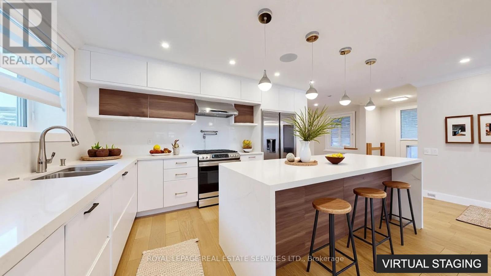 Virtually Staged. Beautiful 3 +2 bdrm, 2 bath home with triple pane windows (2020) on a lovely, quiet cul de sac. Solid brick, detached with private double driveway and double car garage. Main floor features hardwood floors, Stunning kitchen with a large white Quartz Island. Stainless steel appliances include gas burners and oven, pot filler, microwave, dishwasher and Fridge with water dispenser. Enjoy the heated floors at the entrance, kitchen and both bathrooms. Bathroom towel racks in both bathrooms are heated. Primary bdrm has a huge walk-in closet. Light filtered Zebra Blinds and California Blinds on main floor windows. Side door opens to a deck and large, private fenced rear yard. Basement has roughed in kitchen by the staircase, a roughed in sauna and an extra shower in the Laundry/Utility Rm. Rec room with electric fireplace. Roof (2021). Home Inspection Available. (id:4555)