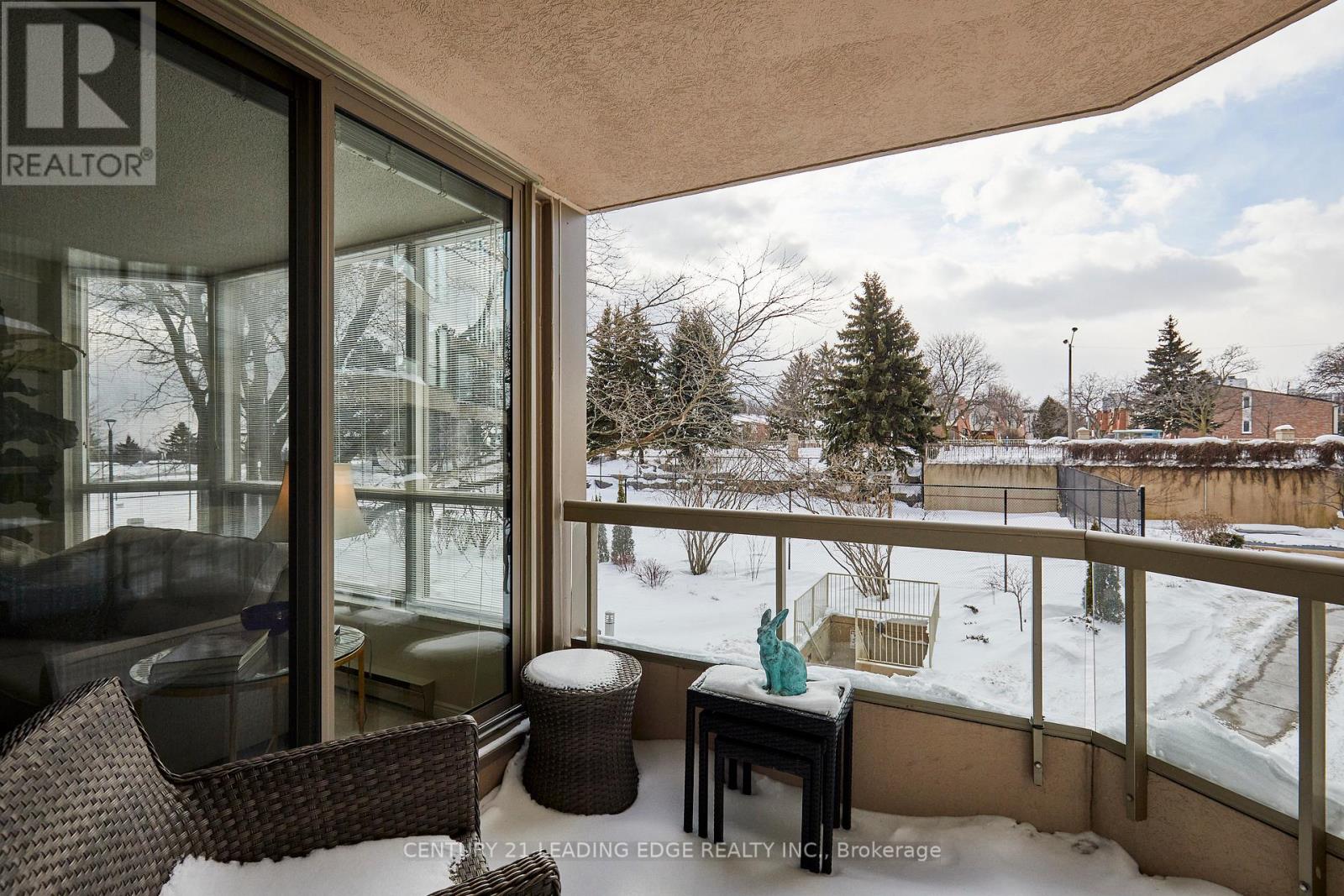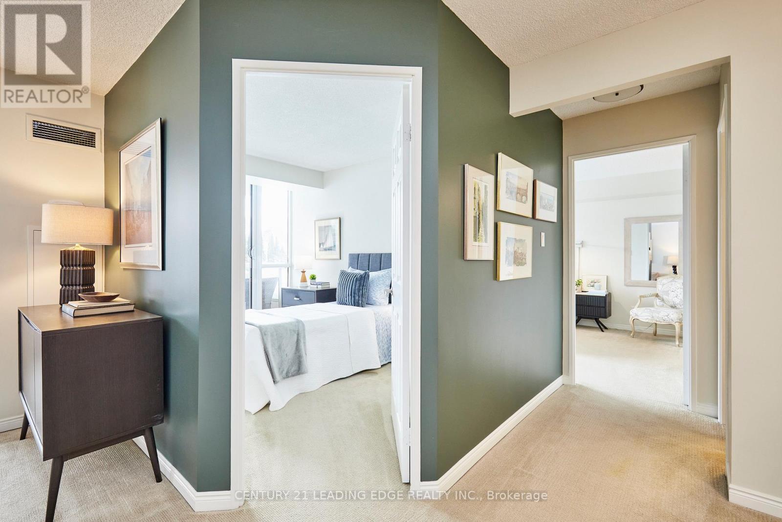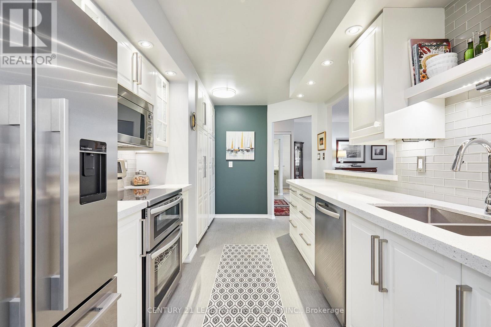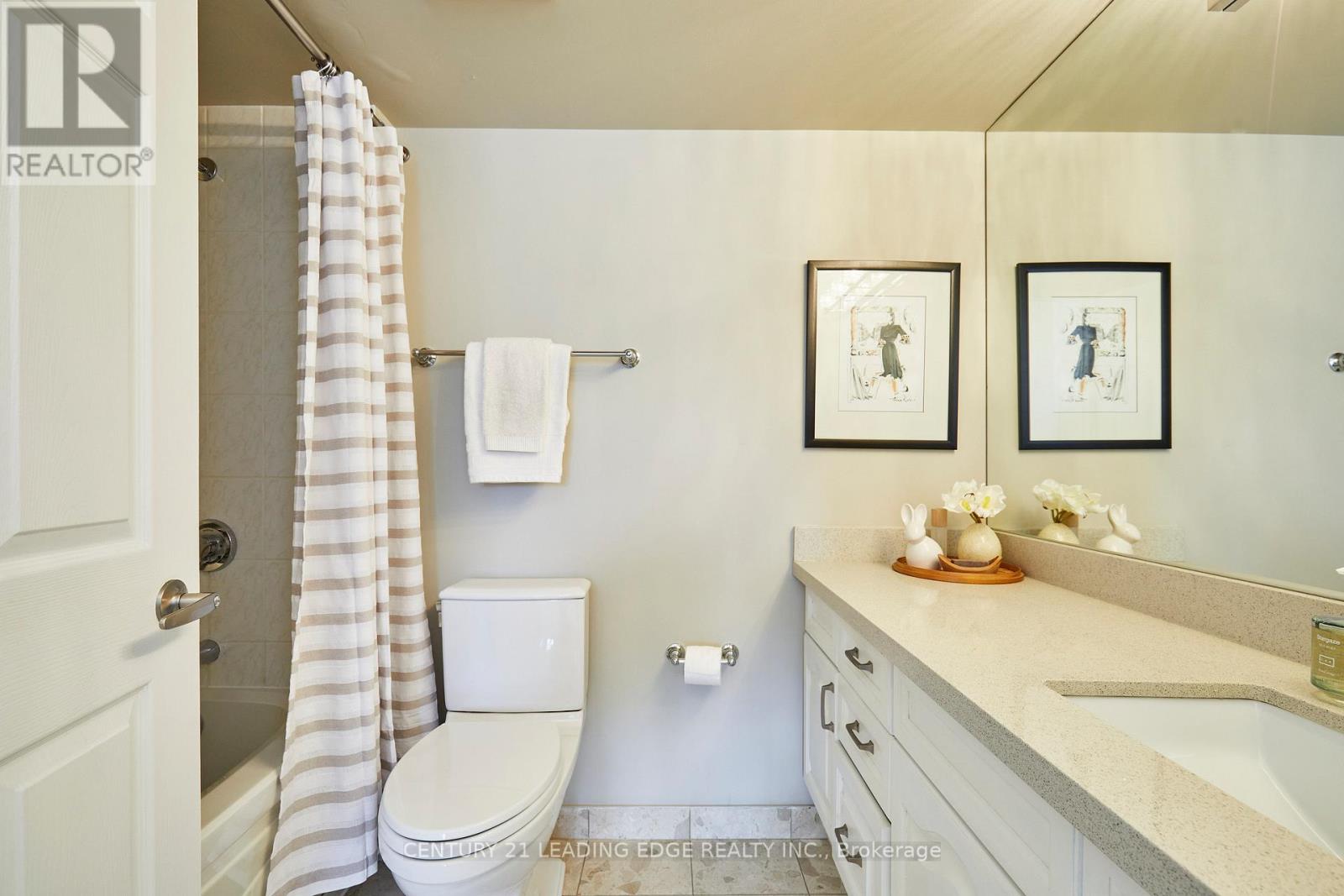 Welcome home to the highly sought-after Gates of Guildwood. This exceptional Dearham suite truly stands apart. This desirable 2nd-floor Dearham suite offers 1,185 sq. ft. of beautifully updated, move-in-ready living space with stunning unobstructed southwest garden views. The ideal layout features 2 bedrooms + open den with walk-out to balcony, 2 bathrooms, and a stunning kitchen. Custom upgrades elevate this suite: a showstopper dining room light fixture, custom blinds & curtains, marble window sills, marble baseboards in the 3pc bathroom, open concept den & a designer kitchen that steals the show! Kitchen highlights include stainless steel appliances, quartz countertops, pot lights, tile flooring, two floor-to-ceiling side-by-side custom built-ins, illuminated glass cabinets, custom shelf over the sink & glass tile backsplash. Freshly painted & professionally cleaned broadloom, new sliding doors & furnace, this suite is truly turnkey. Additional conveniences include a main-level locker steps from the door, easy access to your parking spot and a convenient exterior side entrance--perfect for daily walks and effortless coming and going. Nestled atop picturesque Guildwood Village, this prestigious enclave boasts 10 acres of award-winning gardens, mature trees, walking paths, and a gazebo. Experience resort-like, active lifestyle amenities right at home with a substantial BBQ area, tennis/pickleball courts, putting green, indoor swimming pool, hot tub, sauna, fitness room with workout equipment, squash, table tennis, billiards, library, media room, and a large party space. Walk to shops, parks, GO Train & TTC. 24-hour Gatehouse Security ensures peace of mind. Maintenance fees cover heat, hydro, water, A/C, Rogers Ignite internet & TV, bike storage & even a car wash! Visitor parking, and reservable guest suites make hosting easy. Gates of Guildwood offers everything for a hassle-free lifestyle in one of Scarborough's most desirable communities! (id:4555)