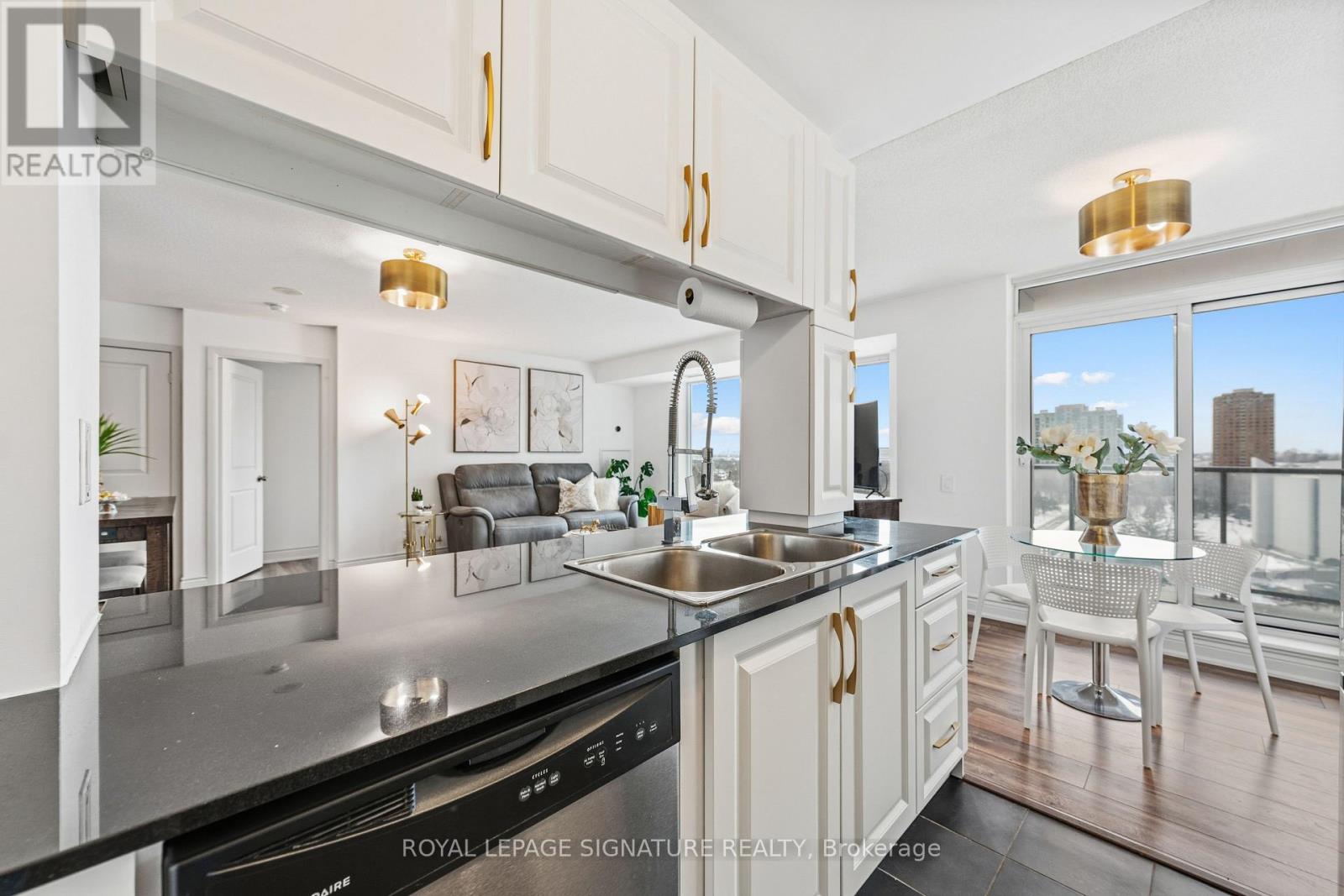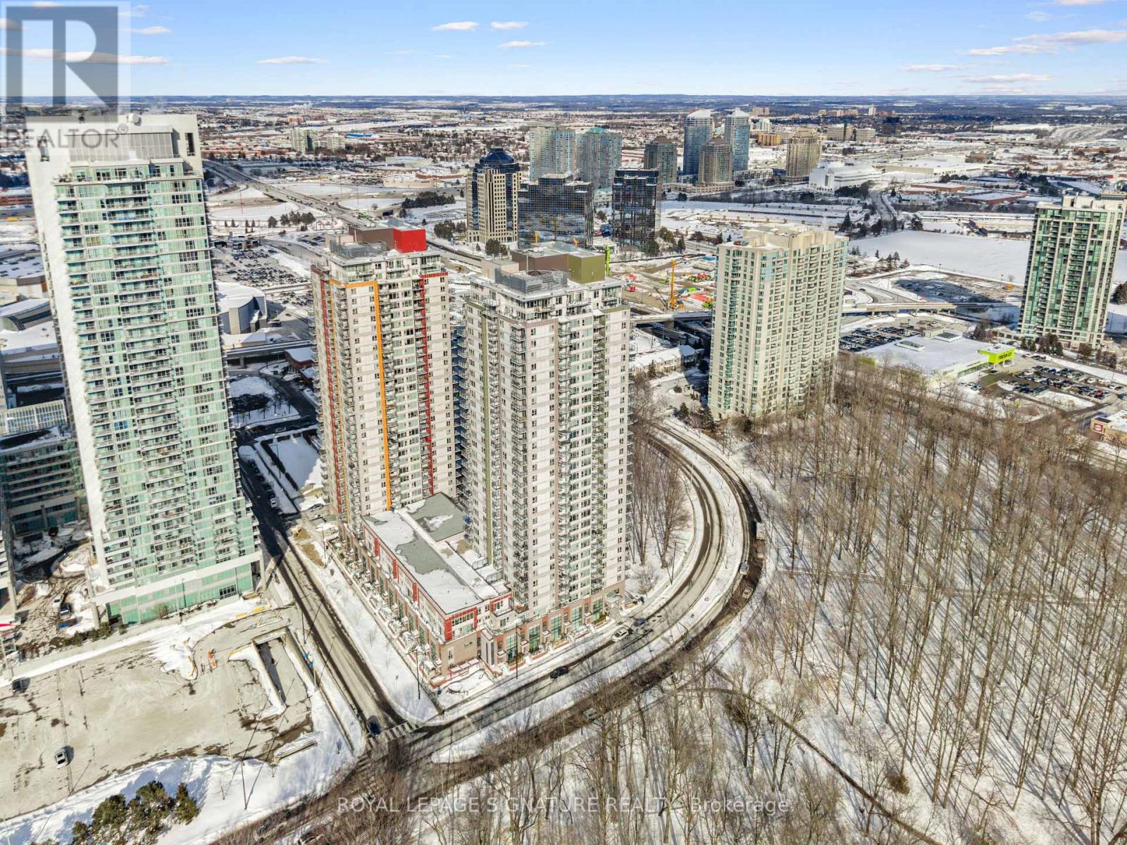 Welcome to this impressive corner 2-bedroom plus den condo with a desirable split layout, offering 1 parking space, a locker, anda private balcony. Ideally located just steps from Scarborough Town Centre, TTC subway, and GO Station, this unit boasts unobstructed east and south-facing views, filling the home with natural light throughout the day.The updated kitchen (2024) features refaced cabinetry, granite countertops new stainless steel appliances (fridge, stove,microwave - 2025), and a convenient breakfast bar-perfect for everyday living and entertaining. New flooring throughout(2021/2024) adds a fresh, modern feel.The spacious primary bedroom includes his-and-hers closets and a beautifully renovated 3-piece ensuite (2024). The second bedroom offers a double closet and south-facing views, complemented by new HVAC (2023). The versatile den is ideal for a home office or study. Additional upgrades include new HVAC in the living room (2025).This well-managed building offers outstanding amenities, including 24/7 concierge and security, a private terrace with BBQs, an indoor pool, a party room, a games room, a theatre, and more. The building also maintains a solid Reserve Fund. EV charger parking installed (2024) adds ready convenience for an electric car.Perfect for first-time buyers, downsizers, or investors seeking comfort, convenience, and an unbeatable location. A definite must-see! Close to parks, trails, shopping,easy access to HWY 401 and transit. (id:4555)
