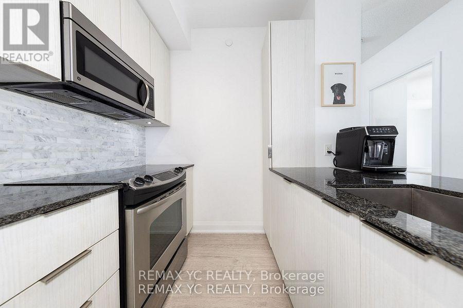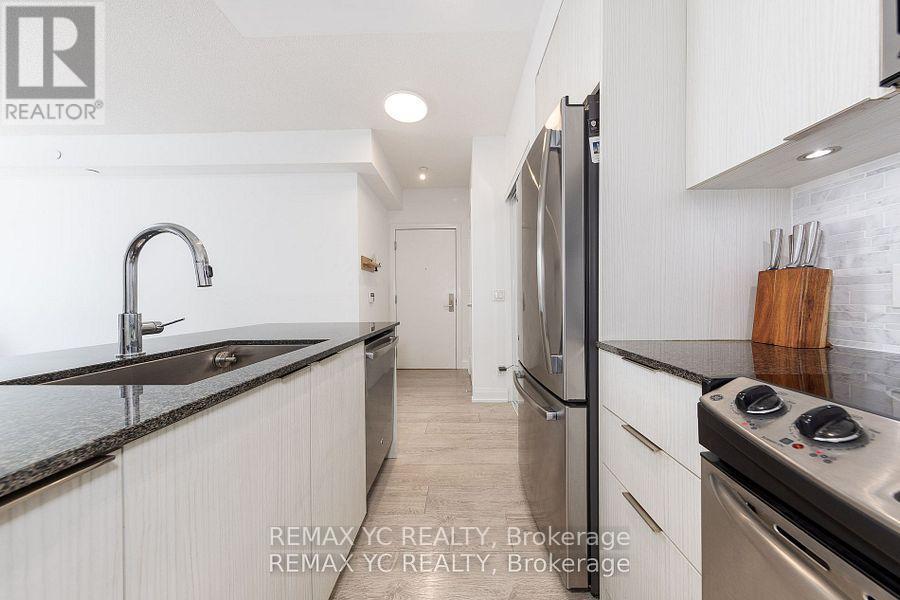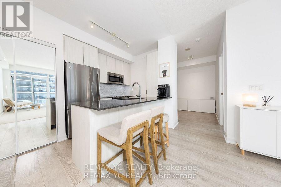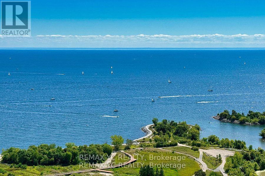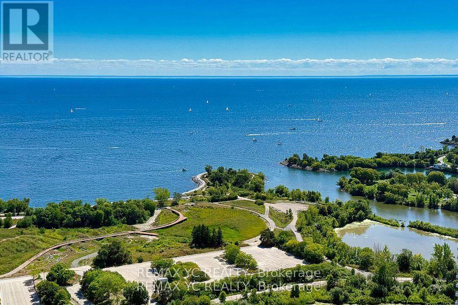Welcome to waterfront living in the heart of Mimico! This well-maintained southeast-facing residence offers stunning lake views, 9-foot ceilings, and hardwood flooring throughout. Both the primary bedroom and living room provide direct access to the balcony, allowing abundant natural light to fill the home all day. The thoughtfully designed layout features a separate dining and living area, while the kitchen boasts a large island and a dedicated appliance space. The primary bedroom includes a spacious closet and an oversized window with lake views. The versatile den can be used as a home office or open flex space. Proudly owned and never rented, this home has been meticulously cared for by the original owner. Just steps from Lake Ontario and surrounded by all amenities-grocery stores, banks, shops, and more-with quick access to the Gardiner Expressway. This unit includes one conveniently located parking space (directly in front of the P4 elevator) and one private locker. Move-in ready and waiting for you! (id:4555)