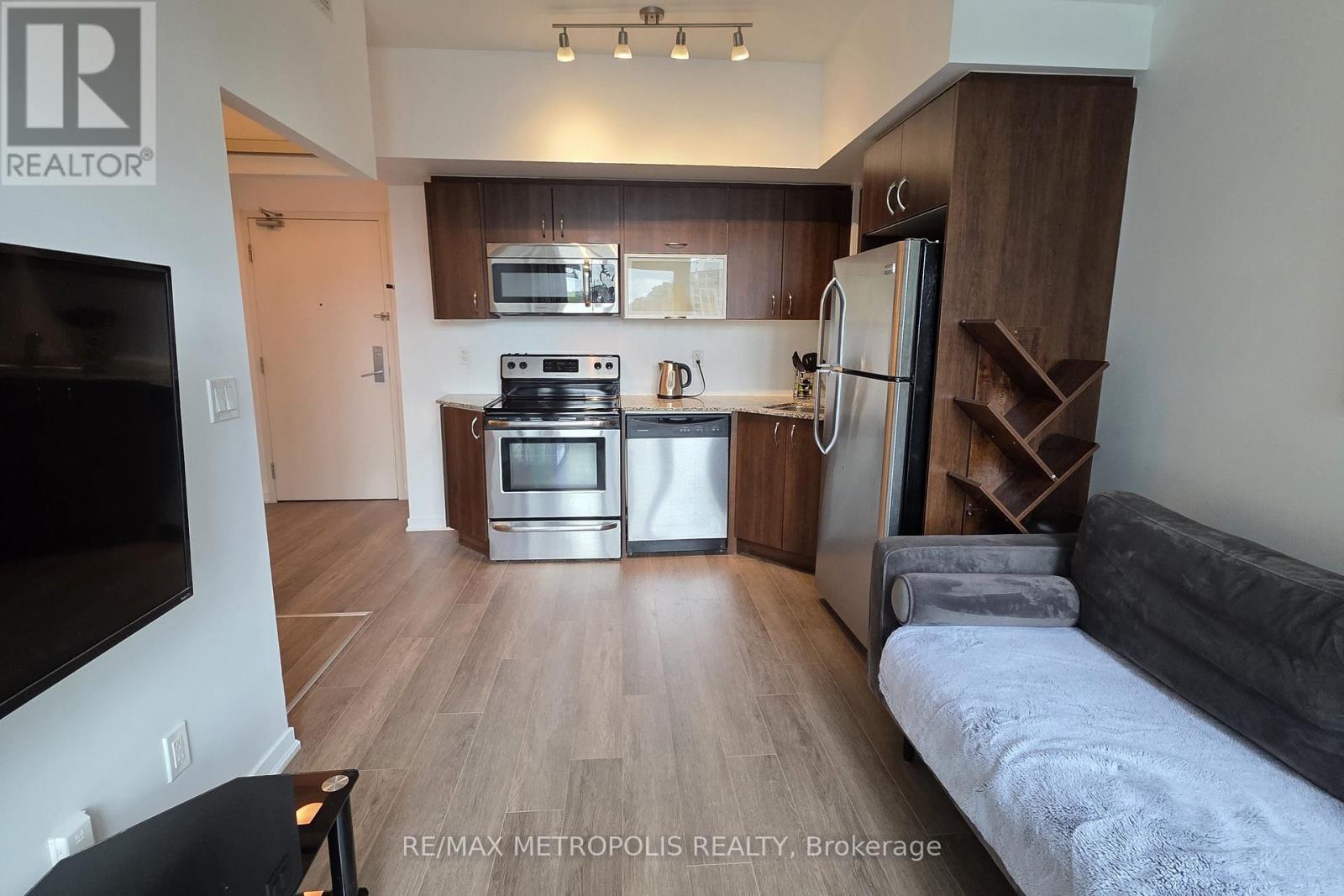 (Open House every Sat/Sun 24pm by appointment). Welcome to your new home in the heart of Liberty Village! This charming 1 bedroom condo at 55 East Liberty St offers 445 square feet of beautifully designed living space, perfect for the modern urban dweller. As you step inside, you'll immediately notice the brand new laminate flooring that extends throughout the unit, giving it a fresh and contemporary feel. The space has been freshly painted and lightly renovated, creating a bright and inviting atmosphere. The kitchen is a true highlight, featuring sleek stainless steel appliances, elegant quartz countertops, and a stylish backsplash. Open concept living and dining area are perfect areas to hangout and relax after a long day. Enjoy the outside from the Juliette balcony overseeing Liberty Village. The bedroom offers ample space and a large closet. Unit features an ensuite laundry closet space. Vacant possession guaranteed. Building amenities including indoor pool, exercise gym, party room, rooftop terrace & concierge. Steps to local amenities grocery stores (metro), restaurants, shops, bars, banks & cafes. 1 parking spot and 1 locker available for purchase, not included in the price. (id:4555)