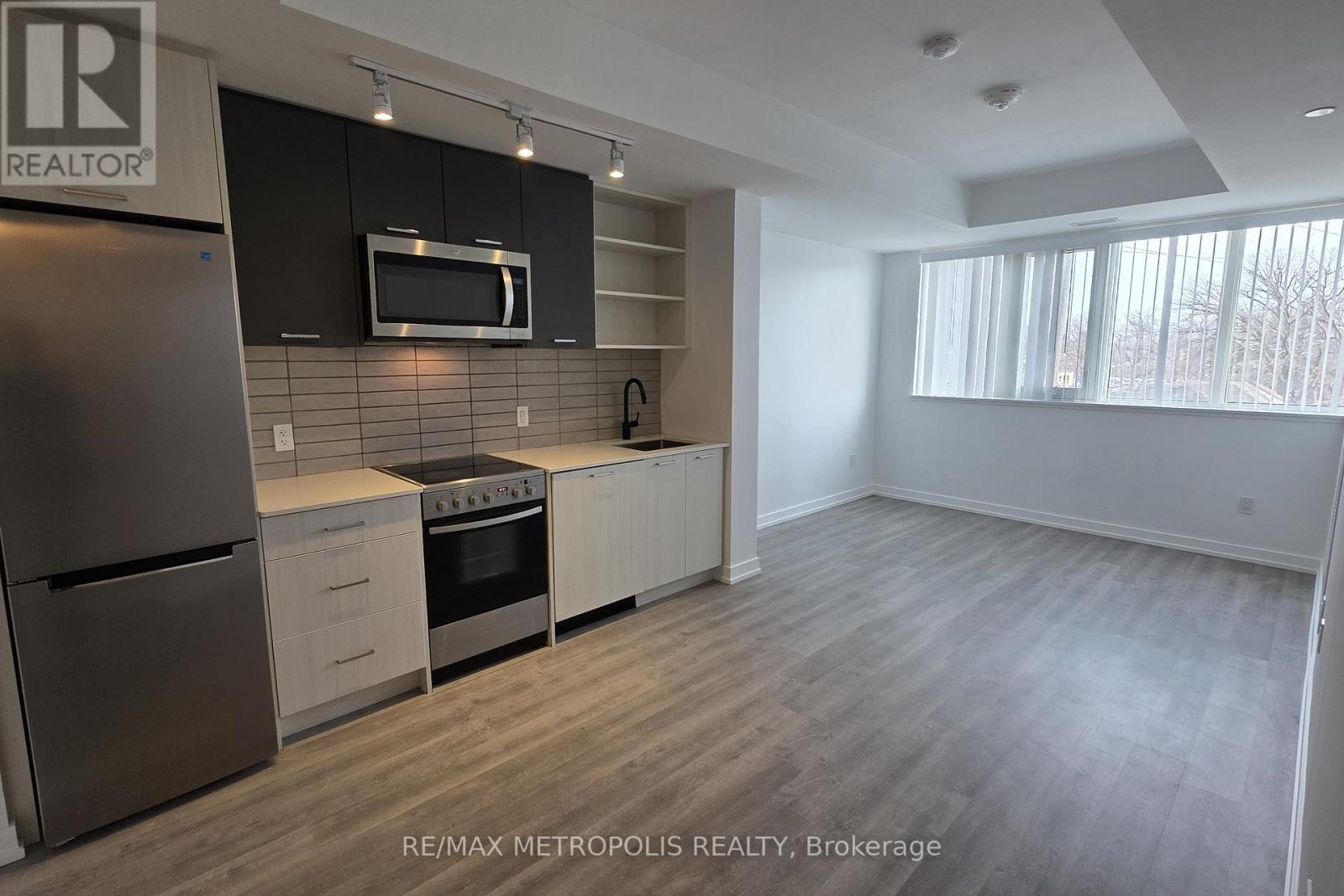 (Open house every Sat/Sun 2-4pm by appointment only.) Welcome to Stockyard Condos by Marlin Spring Developments nestled in the heart of The Junction a prestigious Toronto neighbourhood. Located on the 3rd floor with a South exposure, this spacious 2 bedroom suite offers 607 sq ft of living space, tons of natural light, modern finishes, laminate flooring throughout, ensuite laundry and an open concept balcony to unobstructed city views. The inviting open-concept living and dining areas are perfect for relaxation and entertainment. Enjoy the chef's kitchen that's equipped with contemporary stainless steel appliances, quartz countertops, and a stylish backsplash. The spacious bedroom features a sizeable closet and a walk out to balcony. The second bedroom features sliding doors and convenient closet space. The unit comes with 1 parking space and 1 locker. Building amenities include a 24-hr concierge, gym/exercise room, party/meeting room, outdoor terrace with BBQ area, visitors parking, electric car charging stations, games room and more. Conveniently located near TTC public transit, Stockyards Village, grocery & shopping plazas, restaurants, cafes, parks, banks & other local area amenities. Building allows short-term rentals. Vendor Take Back (VTB) is available. (id:4555)