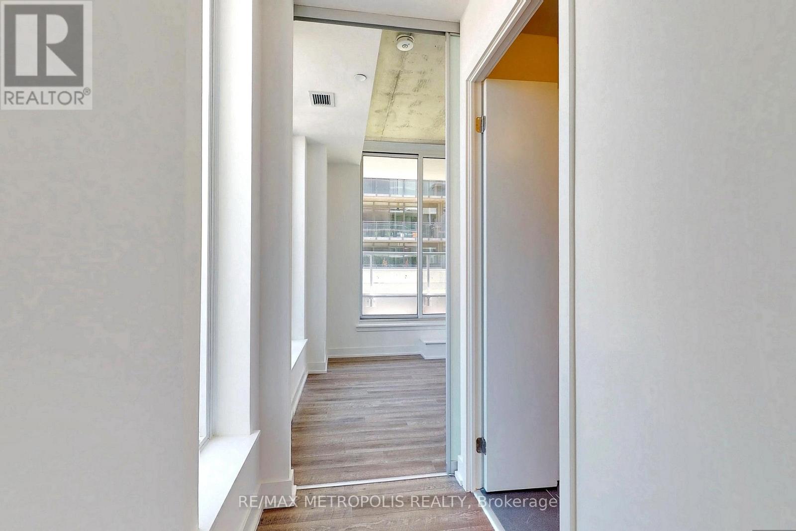 Live Above It All in Riverside Square! This rare 2-bedroom, 2-bathroom corner suite offers 2 private balconies and comes with a parking space and locker-a coveted combination in the heart of the city. Located near Queen & Broadview, this 778 sqft unit features a smart split-bedroom layout, high concrete ceilings, and wide-plank flooring throughout. The sleek, open-concept kitchen includes quartz counters, a designer backsplash, a panelled fridge and dishwasher, and a stainless steel stove. With northwest exposure, the space is bathed in natural light and showcases vibrant city views. The second bedroom opens to its own balcony-perfect for a peaceful retreat or home office-while the primary bedroom includes a 3-piece ensuite and a large window. Additional features: ensuite laundry, thoughtful storage, and a seamless indoor-outdoor flow. Residents enjoy access to a concierge, rooftop pool and sundeck, gym, party room, visitor parking, and more. Experience curated urban living steps from transit, cafés, parks, and the energy of Riverside. (id:4555)
