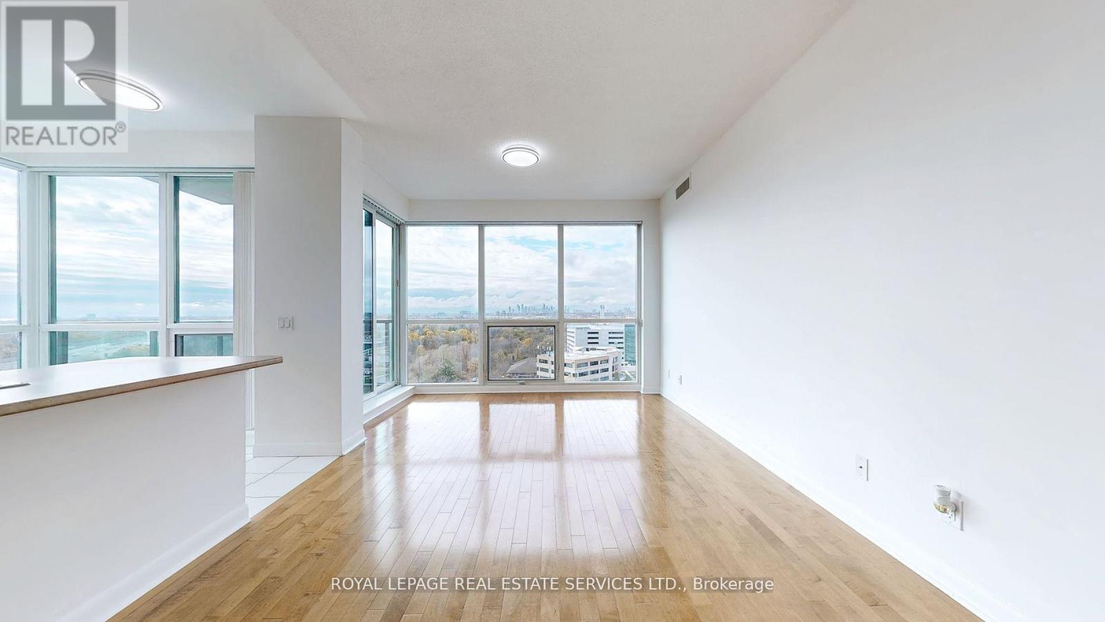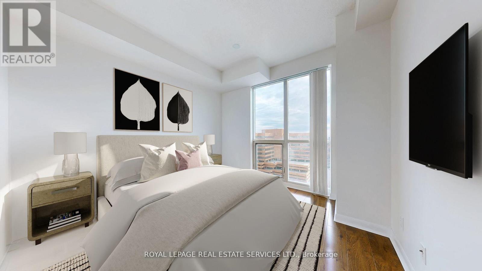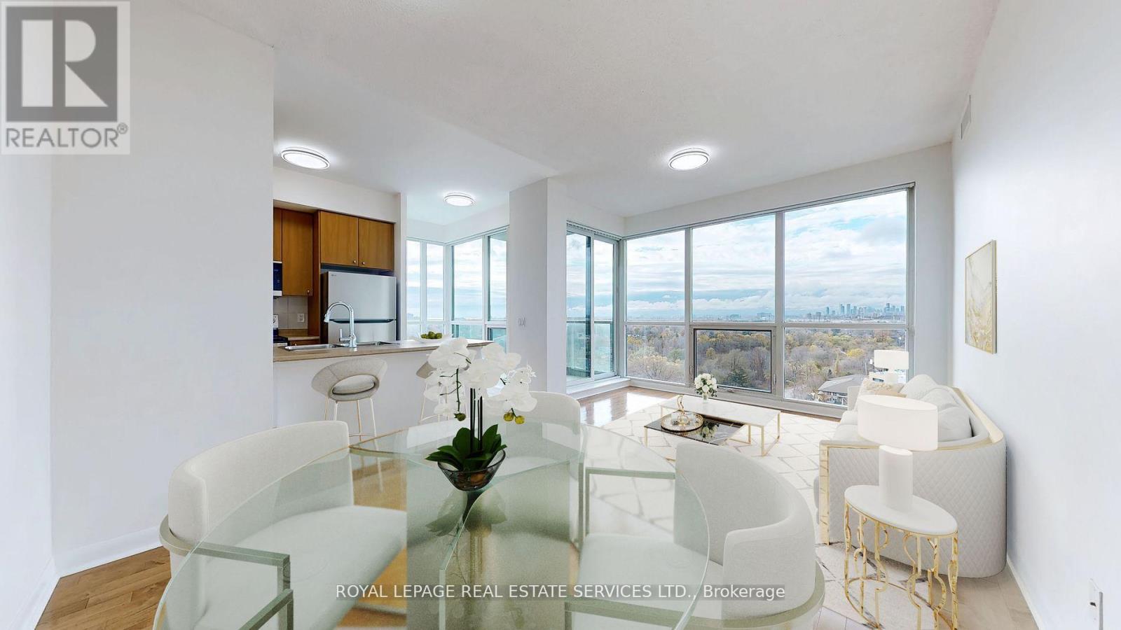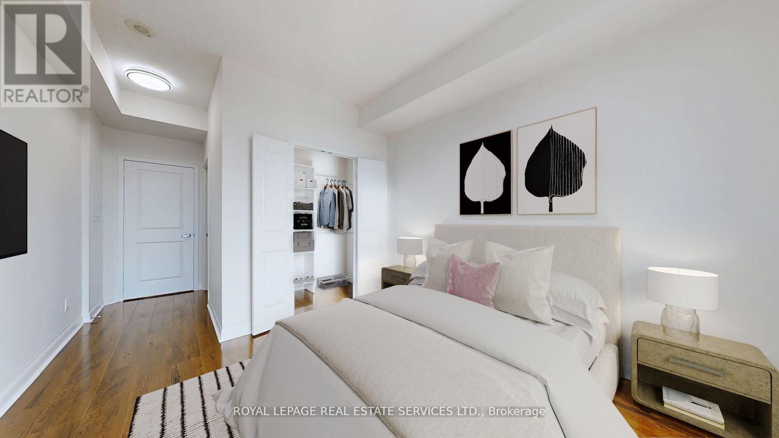 Renovated Oct-Nov/24 This Corner is a Split Plan 2 bedroom with 2 four piece bathrooms and is just under 900 sq ft.It features a rare 9 ft (2.80 m) ceiling height.Located in the Luxury One Sherway Tower 2 condo building across the road from Sherway Gardens Mall.The unit overlooks Lake Ontario, Etobicoke Creek and serene Green Space.It is Immaculately Clean, Bright and Spacious.The floor Plan has an Open Concept Living, Dining Kitchen/Breakfast.Floor to Ceiling Windows provide abundant Natural Light. Interior Features include:Luxurious Hardwood Flooring in the Living and Dining Rooms plus newly Installed Quality Laminate in the Bedrooms that meet the condo's soundproofing rules.The Landlords Installed Additional Underlay under the laminate as well as new lighting and light switches throughout.You will be delighted to have a Primary Bedroom large enough for space for a King Sized Bedroom Set and an envious walk-in closet with custom built closet organizer plus a 4 piece ensuite bathroom.The LG Stainless Steel Kitchen appliances are 1 year's old. The laundry closet has secured shelving and modern double bi-fold doors. Conveniently located on level P2 Tower 2 is 1 parking spot and the Locker is in Tower 1 on P3. Great amenities are located on the 3rd floor of the building: Indoor pool, whirlpool, sauna, Fitness Gym and Virtual Golf. The main floor has a Party/Multimedia Room, Lounge, Library and Parcel Pick-Up Lockers. Peace -of- mind 24 hours Concierge/Security and Underground Visitors Parking.Truly an incredible and desired condominium building conveniently located with easy access to The QEW, Hwy 427, The Gardiner Expressway within minutes drive. You can walk across the road to CF's Sherway Gardens Mall to shop or eat.Just steps away from the front of the Condo building are TTC buses taking approximately 15 minutes to the Kipling Station, 23 mins to the Royal York Station or 13 mins to the Long Branch Go Train Station.(Photos with Furniture were Virtually Staged) (id:4555)