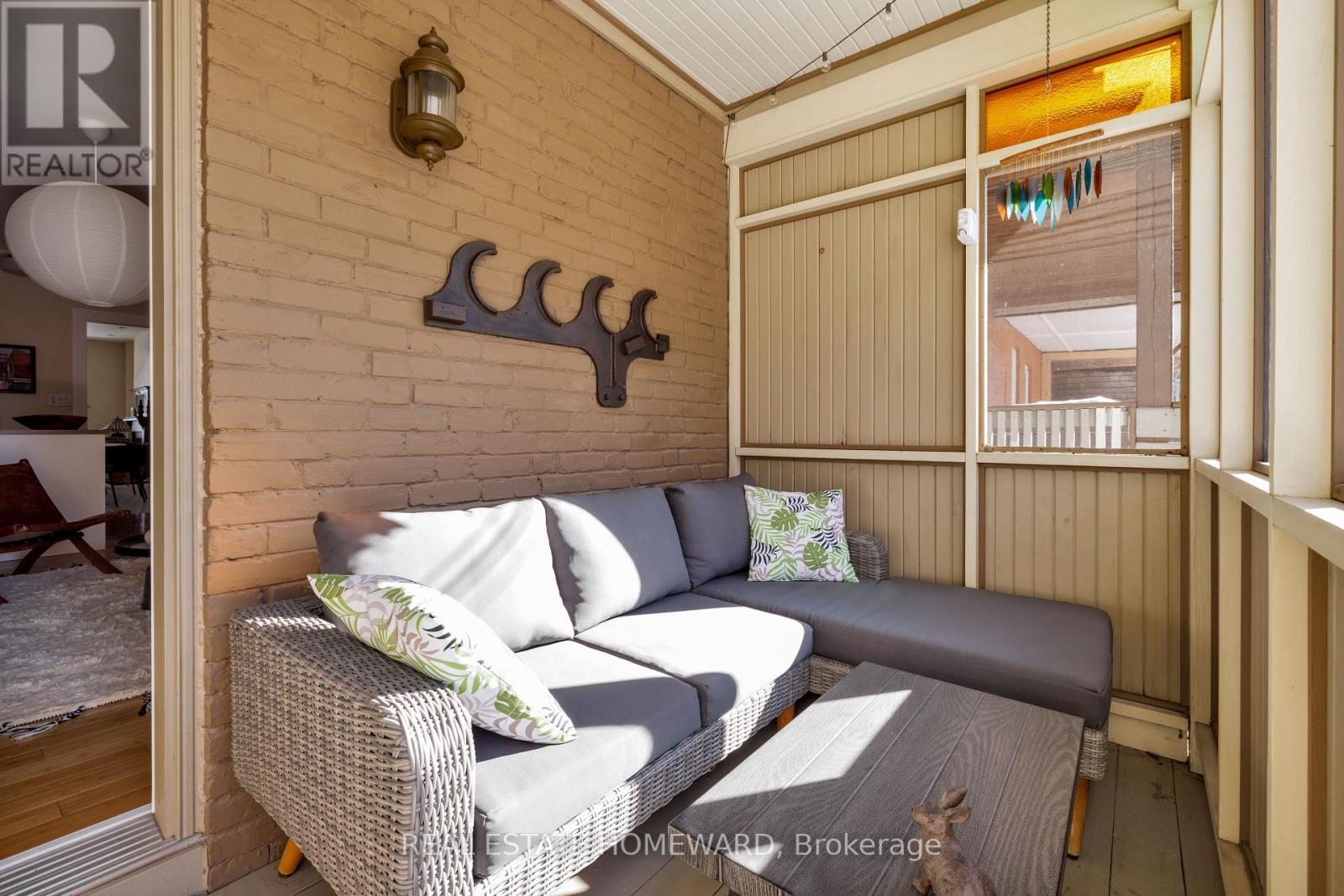 **OPEN HOUSE Sat/Sun 1-4 pm**. On a friendly, tree-lined street in Leslieville, this solid brick century home hits a rare "sweet spot" between character, certainty, size and location. Renovated back to the studs over time, it offers the behind-the-walls upgrades buyers hope for but rarely find, including a new kitchen and baths, fully updated electrical, plumbing, insulation, and soundproofing, a new roof, exterior doors, and Pella windows throughout. The result is a home that feels both established and entirely dependable. Custom trim and millwork add warmth and detail, reflecting clear pride of ownership from room to room. The main floor is designed for everyday living, anchored by a kitchen overlooking a main floor family room w/ a wood-burning stove that opens to a west-facing three-season porch, perfect for slow mornings and relaxed evenings. The welcoming front porch is a natural gathering spot where neighbours stop to chat and kids cruise by on scooters. A 3-pc bathroom adds convenience, while the front foyer offers functional space. Upstairs, three well-proportioned bedrooms are joined by a generous lounge w/ walkout to a private front deck. Comfortable as it is, the layout also offers excellent flexibility, easily adapted into a fourth bedroom or design a spacious primary retreat w/ ensuite. A separate bonus area off the 3rd bedroom works beautifully as a home office, or chill zone. Downstairs, a clean 7'2" basement w/ a separate entrance offers boundless storage as well as strong future potential without the need to underpin. You don't have to choose between the Beaches or Leslieville here. You get the best of both! Steps to Woodbine, Greenwood, and Orchard Parks, great schools w/ French immersion, transit, the beach/boardwalk, and a vibrant local food & retail scene along Queen as well as Gerrard! This thoughtfully cared-for home makes daily life feel easier while offering the kind of connected, community-driven lifestyle people move to Leslieville fo (id:4555)