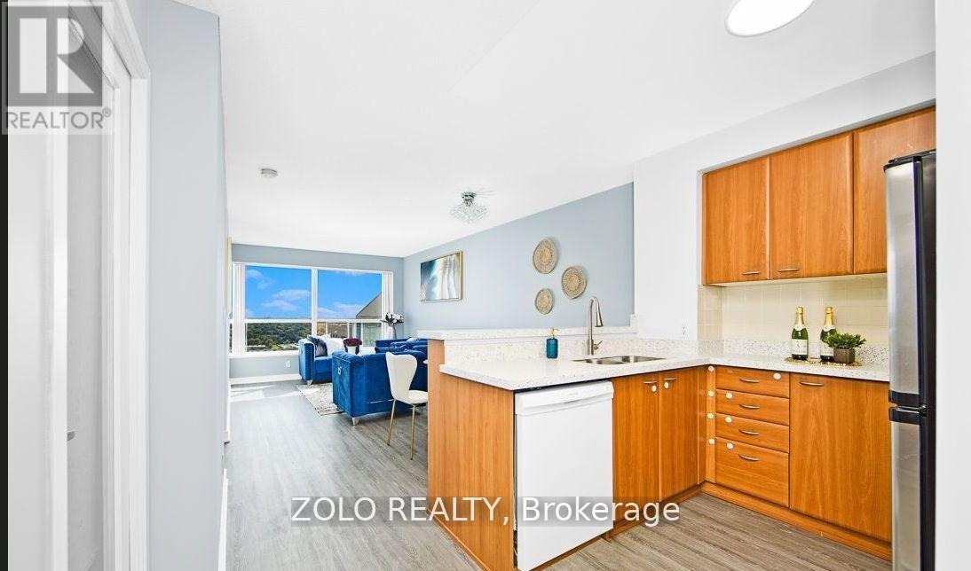 Step Into This Bright And Modern 1+1 Bedroom Condo with 1 Parking Featuring An Open-Concept Living And Dining Area With A Huge Window That Showcases Beautiful, Unobstructed City Views. The Kitchen Is Designed For Functionality, Offering A Convenient Breakfast Bar And An Open Layout That Overlooks The Living Space. The Primary Bedroom Is A Cozy Retreat, Complete With A Large Window And Ample Closet Space. The Den serves As A Second Bedroom Or A Private Home Office. This Unit Includes Owned 2 Parking Spots And Access To World-Class Amenities Such As An Indoor Pool, Sauna, Billiards Room, Exercise Room, Meeting Room, And 24-Hour Concierge/Security. Enjoy Easy Access To Major Highways, The Subway, And A Free Shuttle To Nearby Shopping Centers. All Utilities except Hydro Included. Additional parking can be rented at $100 per month. (id:4555)