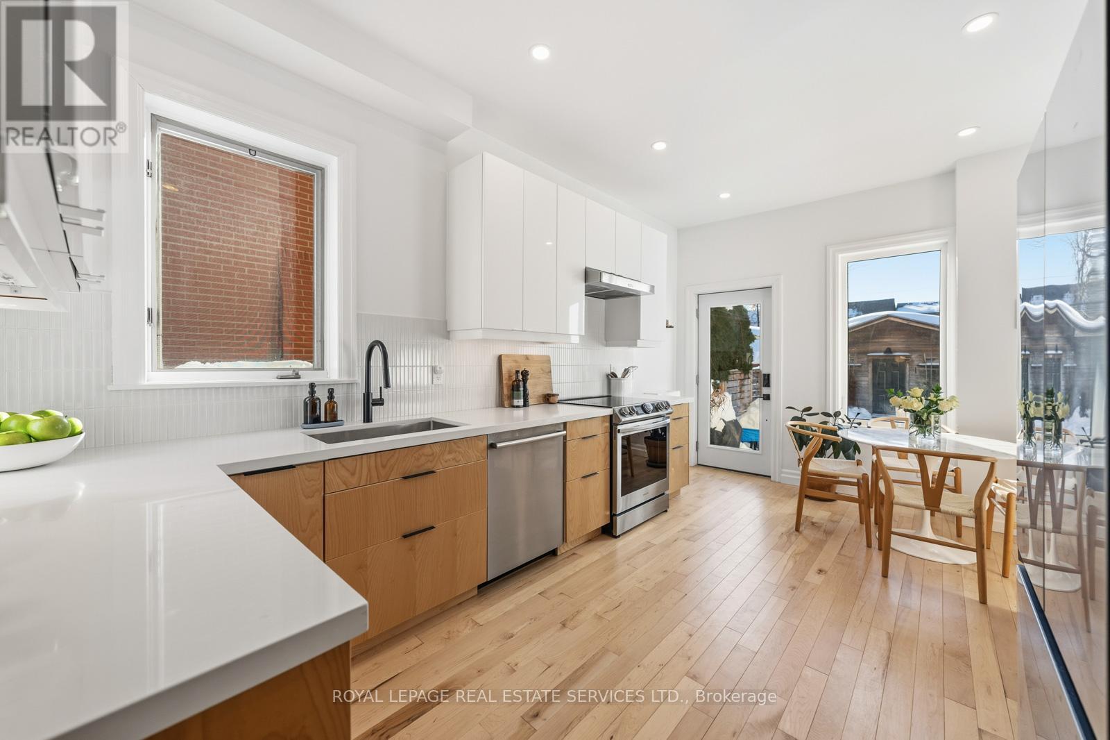 Welcome to 266 Delaware Avenue - a beautifully renovated red brick end of row house (like a semi-detached) set on a 14 x 127 ft lot in the heart of Dovercourt Village, offering over 2000sqft of living space. Built in 1898, this character-rich home seamlessly blends timeless charm with thoughtful modern upgrades - all in a location that truly delivers. From the moment you arrive, the large, private front porch, framed by a mature Japanese maple, sets the tone. It's a peaceful, sun-dappled spot to relax, unwind, and enjoy the rhythm of the neighbourhood. Inside, soaring ceilings, and abundant natural light create an airy, welcoming feel. The living room is anchored by a stunning window, decorative fireplace, and new hardwood floors, flowing effortlessly into a generous open-concept dining area - perfect for hosting family and friends. The newly remodeled west-facing kitchen is bright, sleek, and highly functional, featuring an eat-in nook, ample cabinetry, and expansive counter space. Walk out to the beautifully landscaped backyard and new deck for seamless indoor-outdoor living, and enjoy the rare convenience of a private garage off the rear lane for parking and additional storage. The second floor offers three spacious, light-filled bedrooms, including a front-facing primary with three large windows and a double closet. A finished loft adds exceptional bonus space - ideal for a home office, playroom, or workout area. The basement features separate front and rear entrances and offers flexible space for a rec room, gym, or playroom, complete with a second bathroom, dedicated laundry room, and ample storage. There is also excellent potential to create a self-contained apartment for added income. All of this in an unbeatable, walk-everywhere location. Steps to neighbourhood favourites like Mac's Pizza, The Common, Paradise Grapevine, and Fiesta Farms, with easy access to Bloor St W, Dundas West and Geary Avenue. (id:4555)