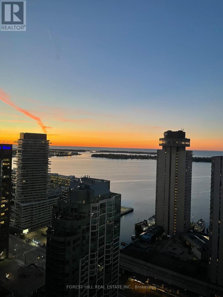 Your Oasis in The Sky! In the Heart of Toronto, You Will Find This South-West Facing Suite With Both Lake & CN Tower Views. Beautifully Renovated, This Split 2 Bedroom Layout Features an Upgraded Kitchen, Den & 2 FULL Bathrooms! Flooded With Sunshine and Offering 1051 Sq Ft Of Interior Space This is Where Luxury & Space Converge To Create An Unparalleled Residential Experience. Featuring Upgraded 7" Hardwood Floors, Modern Chef's Kitchen With Breakfast Bar & Living/Dining Room With Wall to Wall Windows. Primary Bedroom Has a Walk In Closet, 4 Pc Ensuite Bath and Direct Lake Views. The Grandeur Extends To The Practical Side Of Life With Amazing Amenities including a 70 Ft Lap Pool, Multiple Gyms, Basketball, Squash and Tennis Courts, Movie Theatre, Party Room, Games Room, Outdoor BBQ's, Visitor Parking+++. Steps To Union Station, Scotiabank Arena, Loblaws, Longos, Waterfront, Island Ferry & So Much More! With 1 Parking Spot and 1 Locker Included - You Can Truly Live Here, Play Here, Work Here! (id:4555)
