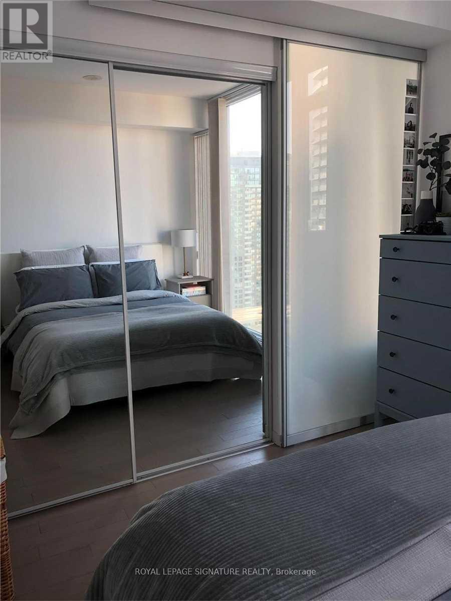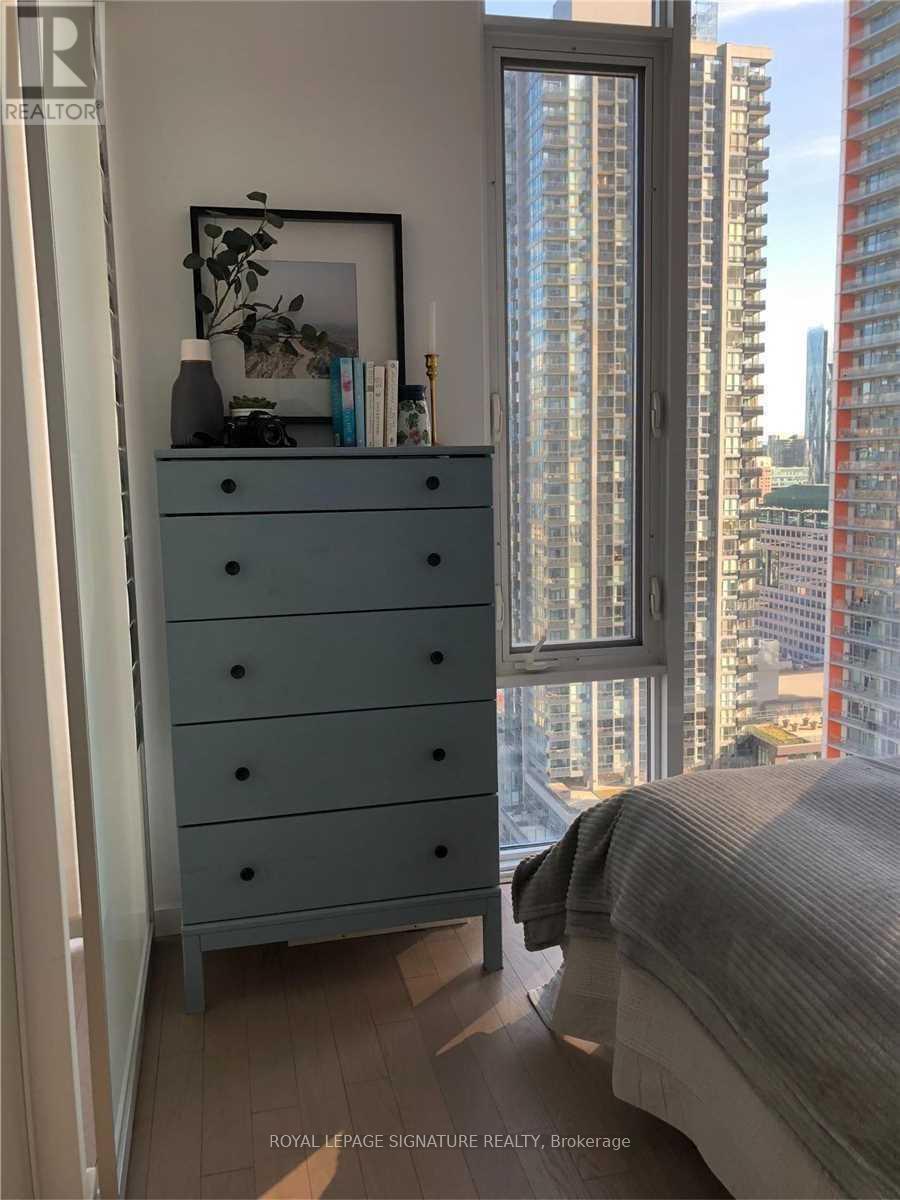 Luxurious Corner unit with lofty 9 ft ceilings, on the spectacular 25th floor with panoramic views of the city. The floor to ceiling wall to wall windows in the open concept Living and Dining rooms have a 320 breathtaking view of downtown Toronto. This spacious home in the city (607 sf plus 105 sf terrace) is centrally located and boasts a perfect 100/100 Transit Score, making it a "Rider's Paradise" with immediate access to TTC streetcars and subway stations. And, the 24 hour concierge is there to assist you 7 days a week. Located in the Entertainment District, it also features a near-perfect Walk Score of 98-100, offering unparalleled access to the Financial District, restaurants, and shops. (id:4555)