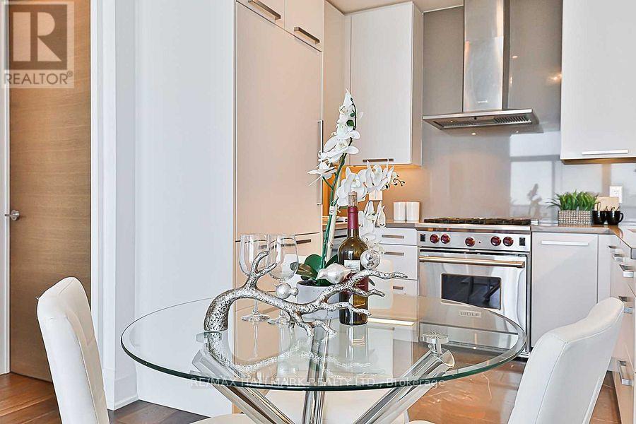 Welcome to 1 Market Street at Market Wharf, perfectly positioned in the heart of the iconic St. Lawrence Market neighbourhood. This beautifully upgraded high-floor 1-bedroom suite offers approximately 697 sq ft of interior living space, plus a generous 147 sq ft east-facing balcony with stunning lake views. Featuring soaring 10-foot ceilings, a modern well-appointed kitchen including Wolf, Subzero & Miele appliances, a luxury 5 pc marble covered bathroom and floor-to-ceiling windows that flood the space with natural light. The oversized balcony includes a gas BBQ hookup, water, and electrical connections, ideal for entertaining. Steps to the Market, shops, restaurants, transit, the Distillery District, Financial District, and easy access to the Gardiner. Building amenities include a concierge, gym, party room, rooftop terrace with BBQ area, and guest suite. This is a true gem in the heart of the city, a must see. (id:4555)