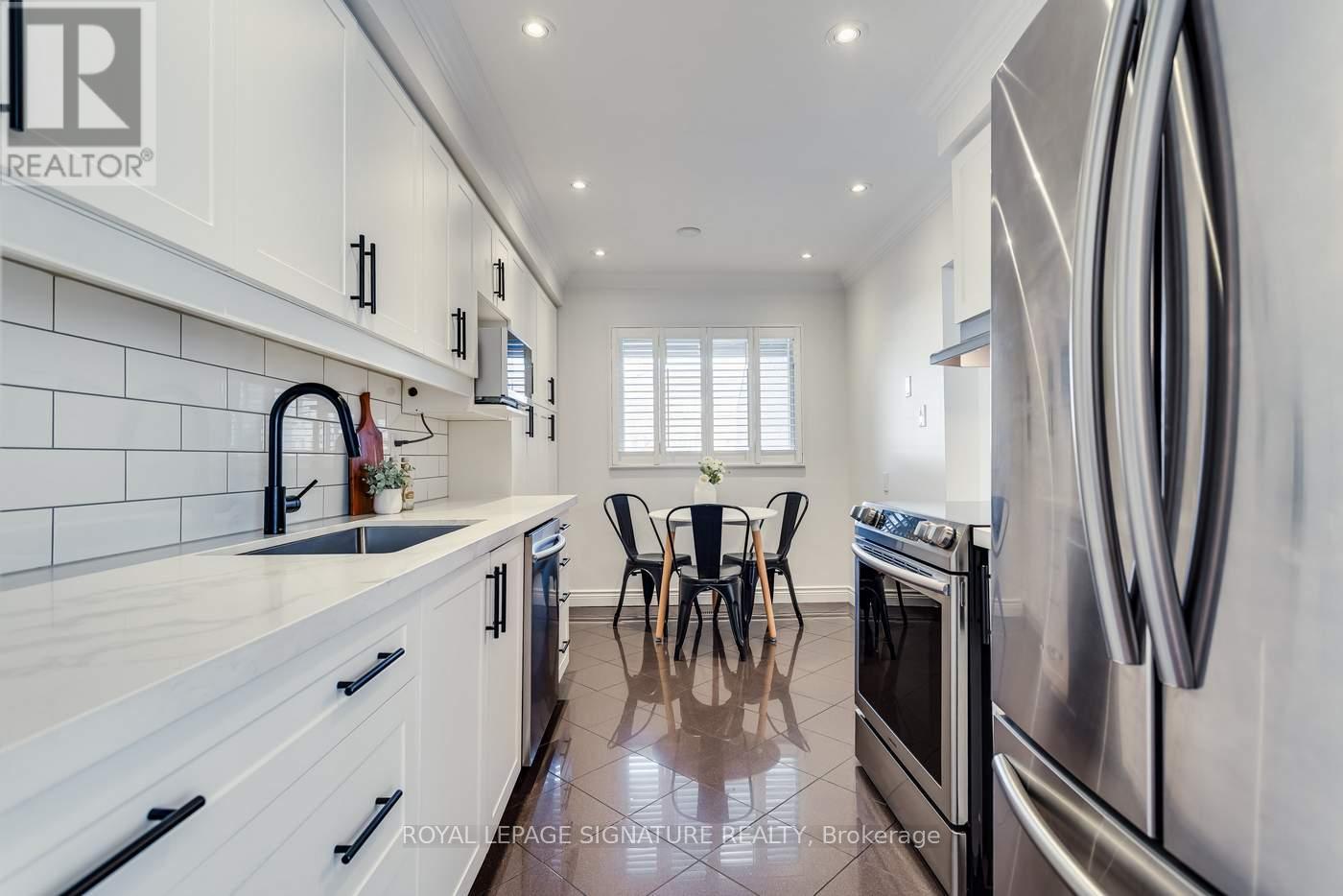 If you've been looking for space, a fabulous and functional layout, a prime location and value, then 17 Carl Shep Way is not one to miss. Tucked away in a secluded setting at prime Leslie and Sheppard, this home features 4 bedrooms and 4 bathrooms and almost 1500sf above grade. The eat-in kitchen is stunning with shaker style cabinets, quartz counters, large windows and stainless steel appliances. The open living and dining rooms feature gorgeous hardwood flooring, pot lights, crown moldings and a walkout to the outdoor patio and backyard. Enjoy entertaining and bbqing on your private patio and backyard or swimming in the complex's outdoor pool. Four roomy bedrooms, all with pot lights, good sized closets and another two renovated bathrooms complete the second floor. The high-ceiling basement provides excellent additional living space with a large recreation room, 3-piece bathroom and tons of storage. Perfectly located just steps to Leslie TTC Subway, Oriole GO Station, Don River ravine trails, parks and North York General Hospital. It's also Minutes to Hwy 401/404 and a short drive to Bayview Village and Fairview Mall. You can have it all. (id:4555)