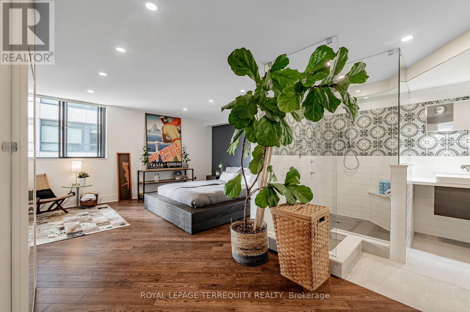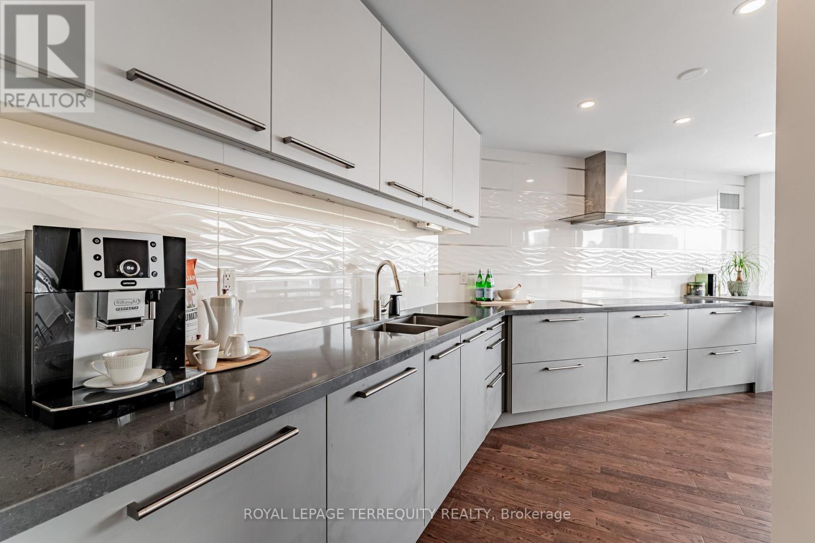 An exceptional downtown residence offering space, privacy, and finish rarely found in condo living. Welcome to Jarvis Gardens: a boutique building, known for long-term ownership and limited turnover in the heart of the city, featuring a fully renovated 2-bedroom, 2-bath home designed for long-term comfort and everyday ease.This suite offers 1,300+sq. ft. of interior space with a split-bedroom layout providing true separation of living areas. The open-concept living and dining space is filled with natural light and opens to a large southeast-facing balcony with open city views, ideal for entertaining in luxury or quiet evenings at home.Engineered hardwood flooring runs throughout, complemented by heated tile flooring at the entrance, and clean, contemporary finishes. The kitchen features quartz countertops, premium integrated appliances, a breakfast bar, and a custom laundry area offering quartz counter tops, additional prep space, large sink and storage, a highly functional upgrade.The primary bedroom includes balcony access, custom integrated closets, and a renovated ensuite with heated floors, double vanity, and oversized glass shower with multi-jet shower heads. The second bedroom is generously sized and located beside a full bathroom, suitable for guests, a roommate, or home office use.Jarvis Gardens is a quiet, well-managed pet friendly building with only 44 suites and just 4 units per floor. Amenities include rooftop terrace with garden plots, gym and yoga studio, sauna, party room with walk-out patio and BBQ, and on-site superintendent. Parking and large ensuite storage included.Steps to St. Lawrence Market, Financial District, TTC, parks, cafés, and daily essentials. This is downtown living without compromise, offering space, quality, and a layout designed to grow with you. (id:4555)