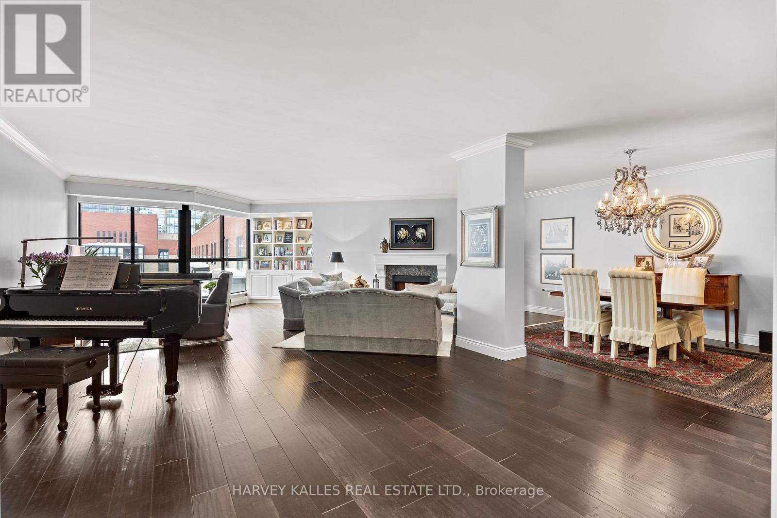 Stepping into this 1,950 sq ft condominium, downtown Toronto fades into the distance, giving way to a rare feeling of privacy, proportion, and calm.Suite 818 at 80 Front Street East is a rare penthouse-level, two-bedroom, two full-bath residence that lives like a home-offering the comfort, scale, and ease of living often associated with a house, without sacrificing the convenience of downtown condo life.Hand-scraped engineered hardwood floors, nine-foot ceilings, and crown mouldings create a composed and welcoming backdrop. The open layout flows naturally from living to dining to kitchen, anchored by a wood-burning fireplace framed in Caesarstone quartz with a custom mantle. The kitchen features a generous Caesarstone island, matching counters and backsplash, and custom cabinetry designed for practical, everyday use.The primary suite is a serene retreat with custom floor-to-ceiling closets and a well-appointed ensuite boasting an oversized shower, stone-topped vanity, and Rubinet fixtures. The second full bath, finished in Carrara tile and marble, continues the home's timeless aesthetic.A premium double-sized parking space adjacent to the elevator ensures everyday convenience. With remarkably low maintenance fees for its size and a rooftop terrace only forty steps from the stair door, effortless indoor-outdoor living is always within reach. Market Square offers 24-hour concierge and security, indoor salt-water pool, infra-red sauna, two fitness rooms, squash court, curated lending library, workshop, landscaped courtyard, and two rooftop terraces with panoramic views and natural gas and charcoal BBQs. Elegant new lobby (2025) and refurbished corridors reflect thoughtful reinvestment. Just steps from St. Lawrence Market, this is a condominium for those seeking space, comfort, and a home-like feel without compromise. (id:4555)