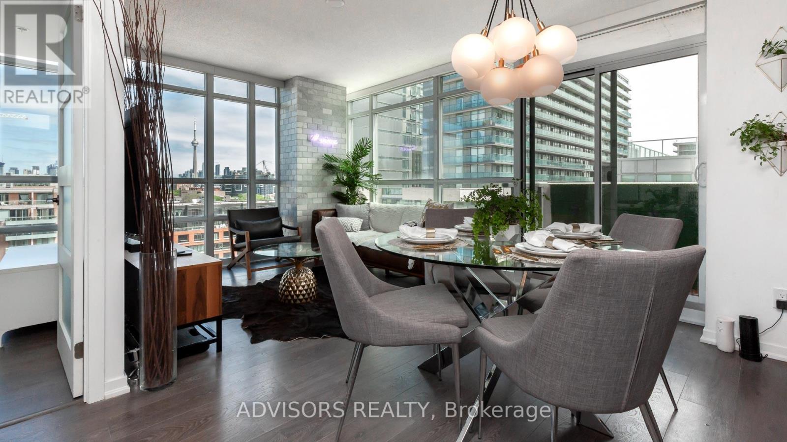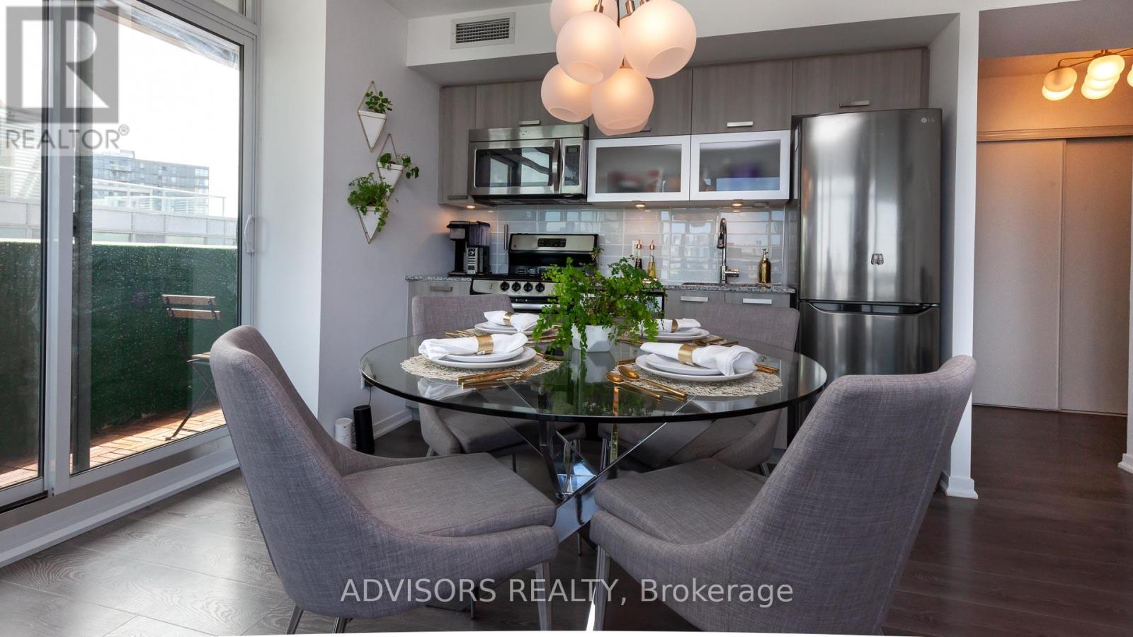 Welcome to this fully furnished corner suite at Epic on Triangle Park in the heart of Queen West. Offering approx. 690 sq. ft., this bright and stylish condo features 2 bedrooms, 2 bathrooms, hardwood floors, high ceilings, and floor-to-ceiling windows. The modern kitchen includes stainless steel appliances, granite countertops, ample cabinetry, and a dining area seating four, fully equipped with cookware and tableware. The open-concept living space is tastefully furnished and opens to a private balcony with city views. The primary bedroom offers a king-size bed, the second bedroom a queen-size bed, both with quality finishes and generous storage. Rent includes in-suite laundry, internet, water, hydro, Bell Fibe TV, air conditioning, smart home features, and one parking space; pets not permitted. Residents enjoy premium amenities including a fitness centre, rooftop patio, concierge, security, lounge, party and media rooms, saunas, and guest suites. Exceptional location with a Walk Score of 95 and Transit Score of 100, steps to TTC, dining, shopping, Liberty Village, Ossington Strip, and quick access to the Gardiner. Enjoy the shopping, cafes and dining that Queen West, or Little Italy/Portugal have to offer or venture to the infamous Drake Hotel, The Gladstone Hotel, and some of the best coffee shops, pizza parlors, and even fine dining minutes away. Your monthly rental payment encompasses essential utilities such as electricity, internet services and water usage (caps may apply). Additionally, $295 move-out cleaning fee and building move fees may apply. (id:4555)