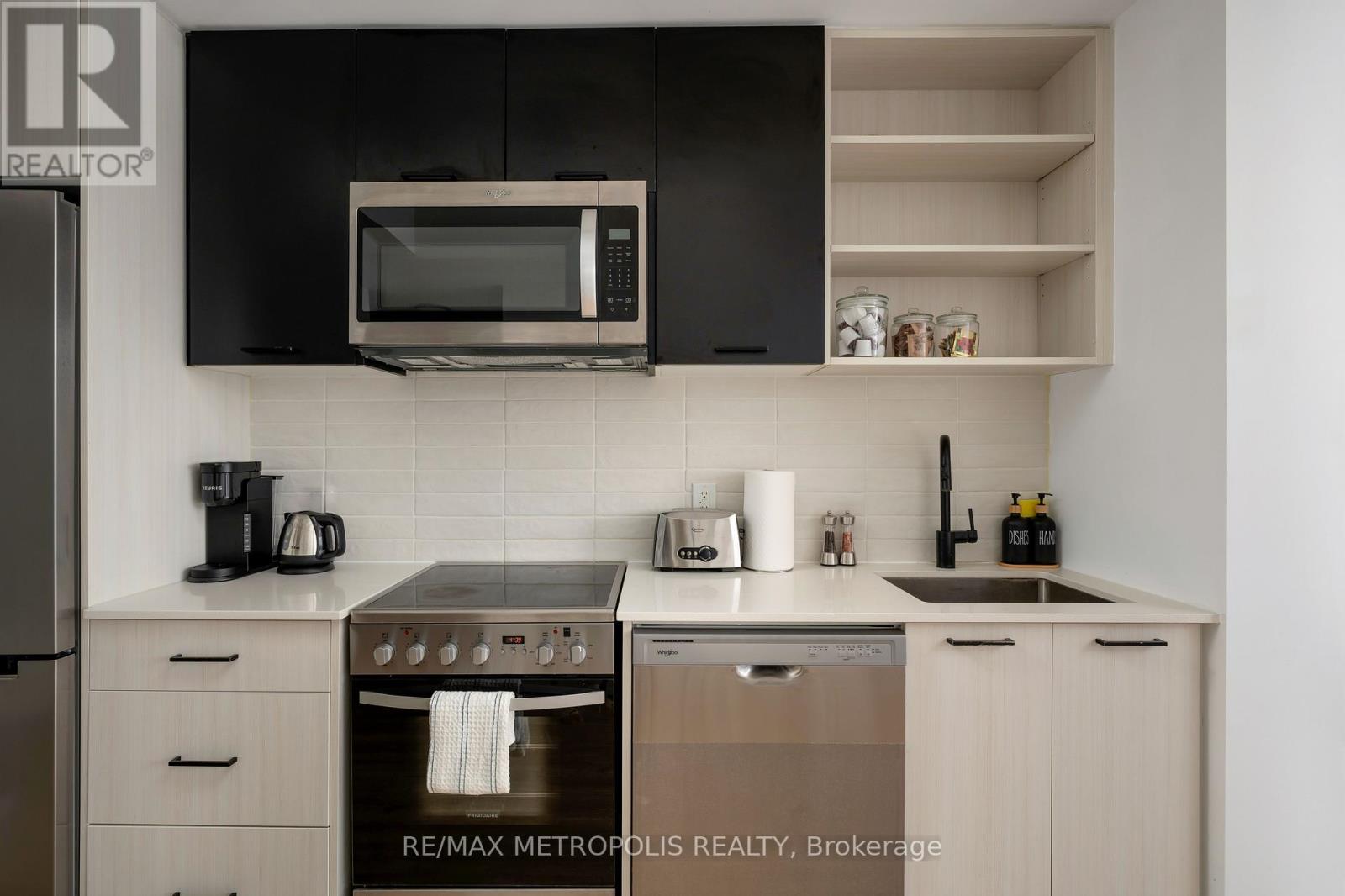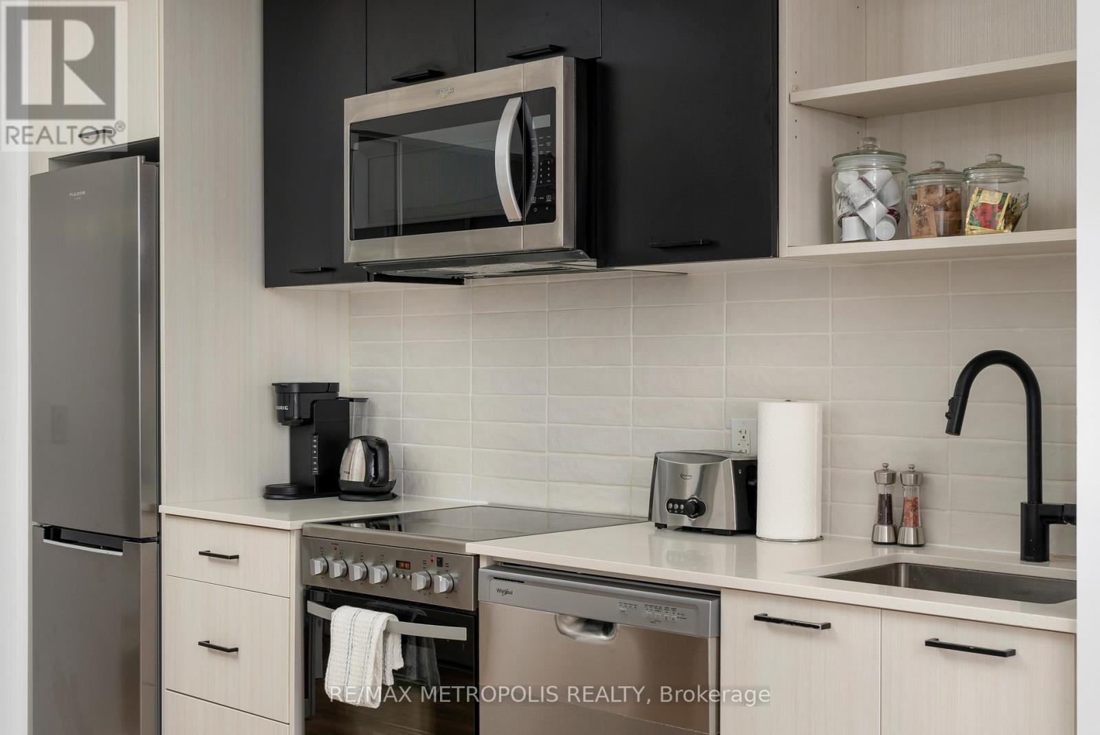 (Open house every Sat/Sun 2-4pm by appointment only.) Welcome to Stockyard Condos by Marlin Spring Developments nestled in the heart of The Junction a prestigious Toronto neighbourhood. Located on the 3rd floor with a South exposure, this spacious 2 bedroom suite offers 607 sq ft of living space, tons of natural light, modern finishes, laminate flooring throughout, ensuite laundry and an open concept balcony to unobstructed city views. The inviting open-concept living and dining areas are perfect for relaxation and entertainment. Enjoy the chef's kitchen that's equipped with contemporary stainless steel appliances, quartz countertops, and a stylish backsplash. The spacious bedroom features a sizeable closet and a walk out to balcony. The second bedroom features sliding doors and convenient closet space. The unit comes with 1 locker. Building amenities include a 24-hr concierge, gym/exercise room, party/meeting room, outdoor terrace with BBQ area, visitors parking, electric car charging stations, games room and more. Conveniently located near TTC public transit, Stockyards Village, grocery & shopping plazas, restaurants, cafes, parks, banks & other local area amenities. Building allows short-term rentals. Vendor Take Back (VTB) is available. (id:4555)