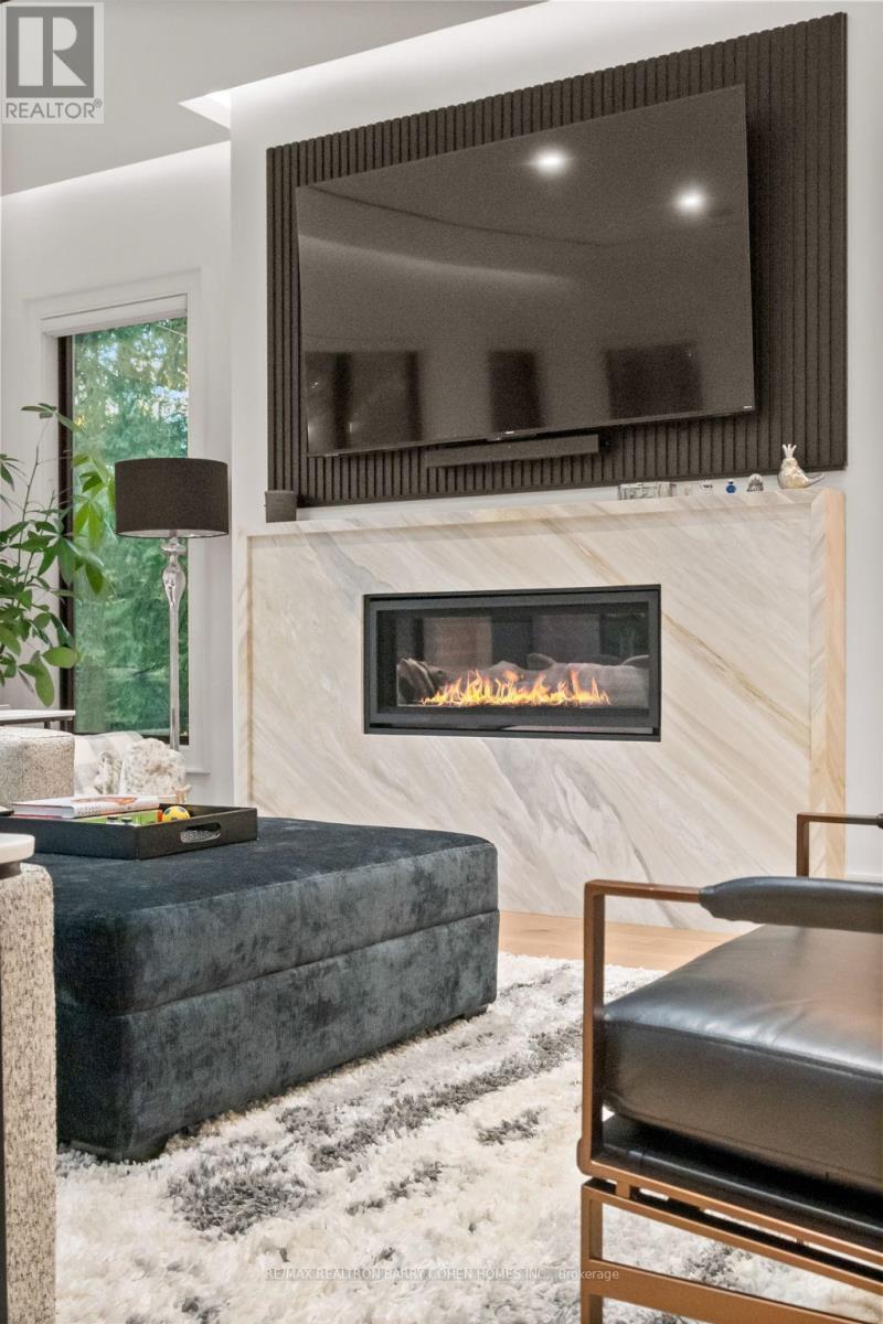 Newly built modern residence in the heart of South Leaside offering nearly 6,500 sq.ft. of living space! Exceptional designer-curated finishes and smart home technology throughout. Designed for the modern family and built to impress, this magazine-worthy residence perfectly blends luxury, functionality, and versatility. Oversized principal rooms, two private home offices, and a full legal in-law suite with income potential make it ideal for multigenerational living or a flexible live-work lifestyle.Showcasing engineered white oak floors, soaring ceilings, and expansive windows with motorized blinds, every detail reflects thoughtful design and quality craftsmanship. The custom kitchen is a true centerpiece - featuring a panelled fridge, trash compactor, waterfall island with hidden storage, and full-height cabinetry - flowing seamlessly into the family room with a marble gas fireplace and walkout to the backyard. Step lighting, integrated speakers, and sleek modern finishes complete the main level's sophisticated aesthetic.Upstairs, four oversized bedrooms include a magazine-worthy primary suite with a slatted wood feature wall access to His & Hers WICs, cove-lit ceiling, fireplace in stone surround, fully equipped bar, walkout to a private balcony (hot tub-ready), and a spa-inspired ensuite with steam shower, freestanding tub, heated floors, and double vanities. Secondary bedrooms are equally impressive, and a dedicated laundry room with dual washer/dryers enhances everyday ease. Upstairs office may be converted to a 5th bedroom.The lower level extends the living experience with a gym, sauna, recreation lounge, and wet bar equipped with a dishwasher and bar fridge - plus a soundproofed legal in-law suite with its own entrance, kitchen, 3-piece bath & laundry.Located in the coveted Bessborough/Rolph school district, this home delivers a rare combination of sophistication, and future income potential in one of Toronto's most sought-after neighbourhoods. (id:4555)