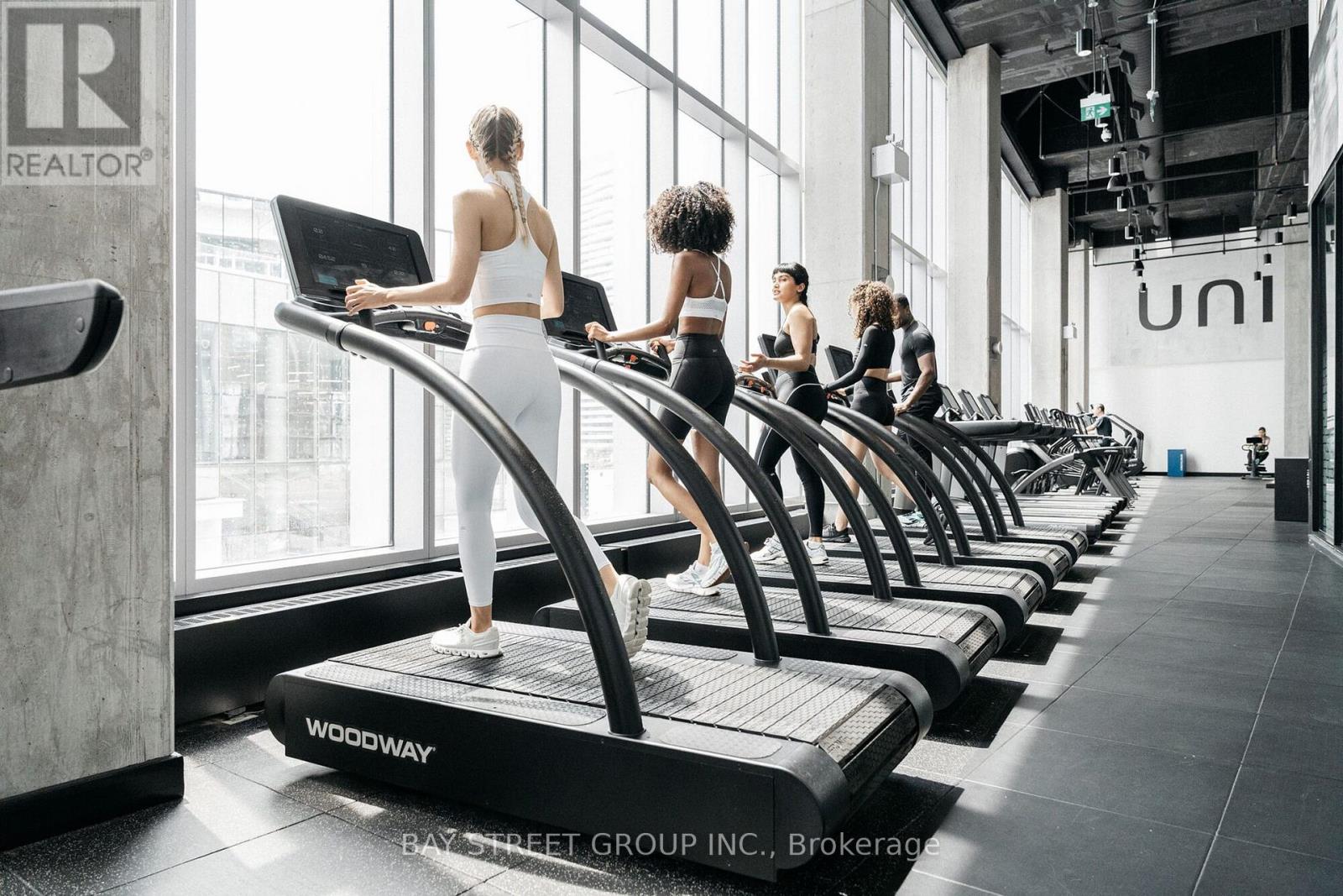 Welcome to a lifestyle of unparalleled convenience and luxury at Sugar Wharf Condos. This spacious 1 bedroom, 1 bathroom suite offers 518 sq ft of bright living space, complemented by an ***oversized 252 sq ft private balcony*** with views of Lake Ontario and the Toronto skyline. Flooded with natural light from floor-to-ceiling windows, the modern open-concept layout includes a stylish kitchen with premium stainless steel appliances. This unit places you in the heart of Toronto's dynamic core, just steps from the Financial District, Union Station, and the PATH network, making your commute seamless. The vibrant waterfront is your backyard, with Sugar Beach, lakeside trails, and the marina moments away. Daily errands are effortless with Farm Boy, Loblaws, LCBO, banks, and an array of shops and restaurants all within a short walk. The building is a destination in itself, offering world-class amenities including a state-of-the-art fitness center, a residents' lounge with co-working spaces, a private movie screening room, an arcade/games room, and expansive outdoor terraces with fire pits and BBQ stations. For added value, this tenancy includes a ***complimentary Unity Fitness Gym membership (a $169/month value) and ***high-speed internet. (id:4555)
