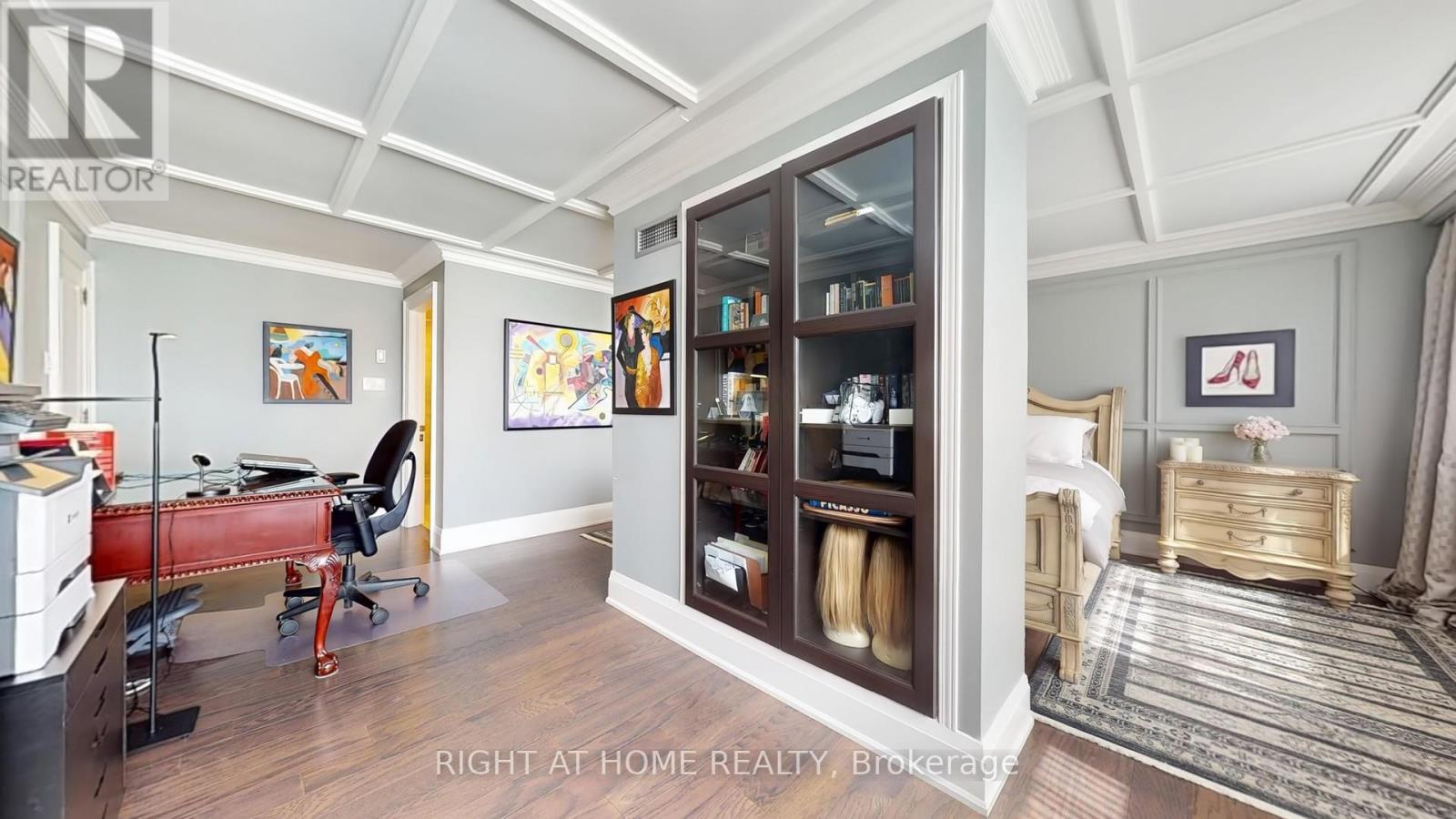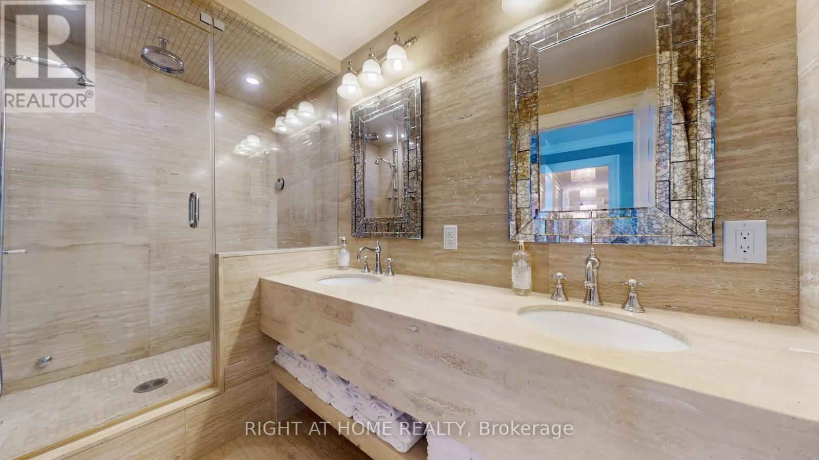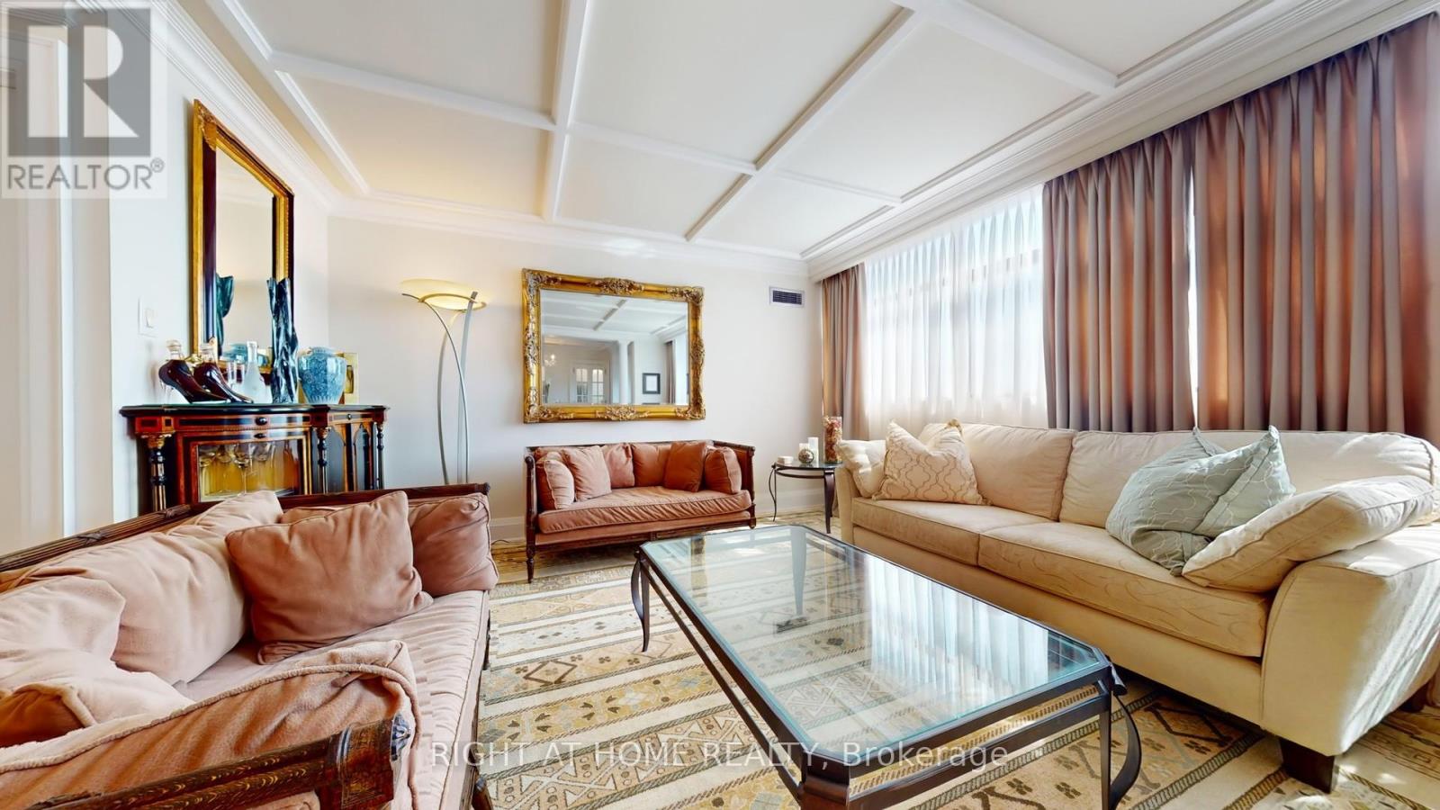 One of the Largest and Most Beautifully Renovated Suites in the Building. Welcome to this exquisitely updated 2-bedroom plus den/office, 2-bathroom suite offering approximately 2,000 sq. ft. of bright, elegant living space with unobstructed corner unit south-facing views a true bungalow in the sky on the sub-penthouse 28th floor. The grand foyer with a double-door closet leads into spacious living and dining areas, perfect for entertaining or relaxing. Large windows fill the space with natural light and frame stunning east, south and west views. Featuring waffle ceilings and gypsum crown moulding, Jerusalem stone flooring, custom solid wood doors, and rich draperies throughout, this home radiates warmth and elegant sophistication. A full-sized dining room with custom built-in cabinetry connecting to a sun-filled quartz solarium, ideal for lounging or working from home. The gourmet kitchen is beautifully designed with granite countertops and backsplash, under-cabinet lighting, extensive custom cabinetry, large floor to ceiling window, and high-end built-in appliances including a paneled double-door fridge, cooktop, microwave/oven combo, and paneled dishwasher. The spacious primary suite offers a reading nook, desk area, generous cabinetry, a large custom walk-in closet, and a luxurious ensuite with Perrin & Howe Mayfair hardware, custom slab travertine heated floor to ceiling finishes, double-sinks, travertine vanity and shelving, steam sauna shower, with a connecting private toilet and bidet. The second bedroom includes a double closet and is perfect for guests or family. An in-suite locker with built-in shelving adds valuable storage space. Located steps from transit, top schools, parks, and shops, this home offers ultimate convenience. Maintenance fees include all utilities, including Rogers cable TV. Two parking spaces are included. (id:4555)