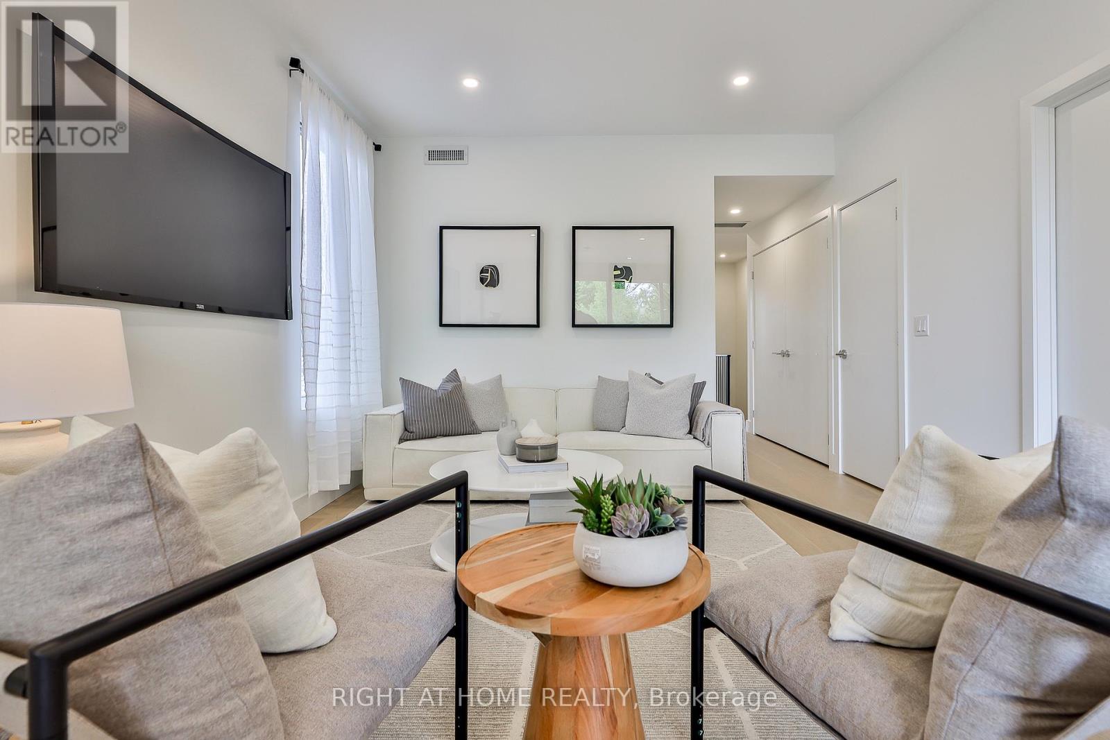 An astounding residence in a rare boutique building - imagine your very own full-floor home, providing over 1,100 square feet of interior space with TWO terraces (one with bbq connection). Filled with natural light, this carefully designed and beautifully built home includes exceptional details throughout, a custom kitchen with integrated Fisher & Paykal appliances, gas cooktop, stylish eat-at island and an oversized living room / dining room perfect for daily living and great entertaining. 2 full bedrooms including a primary with decadent ensuite bathroom and huge walk-in closet. Exceptional space, designed and built to the highest standards with advanced acoustic insulation, oversized windows, individual heating and cooling and enormous ensuite storage. The style and simplicity of a condo, with the space and comforts of a traditional home! Low maintenance living, moments to the subway, nearby shopping, parks, schools and of course Kingston Road Village. Never lived in, with a full tarion warranty. (id:4555)