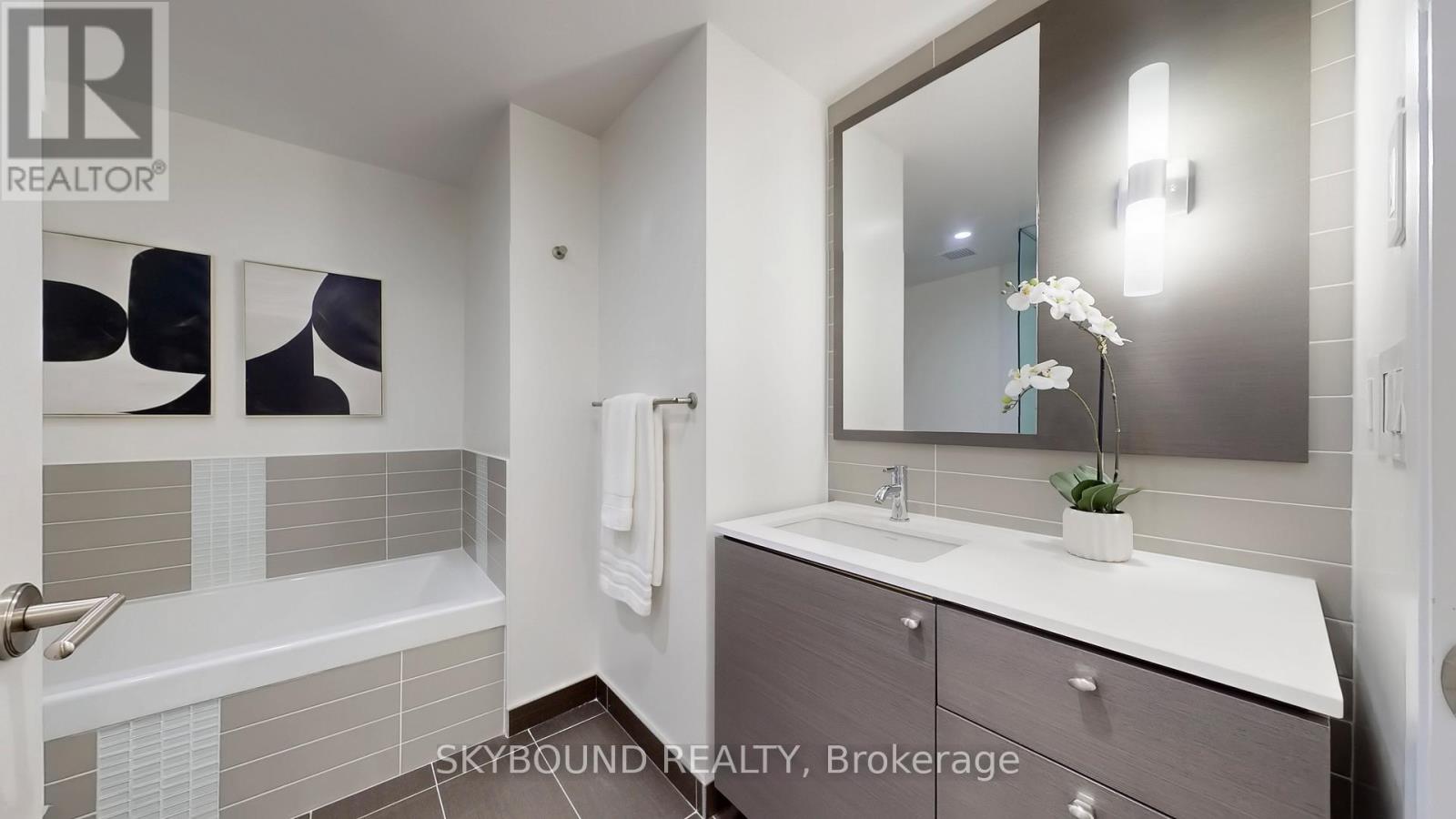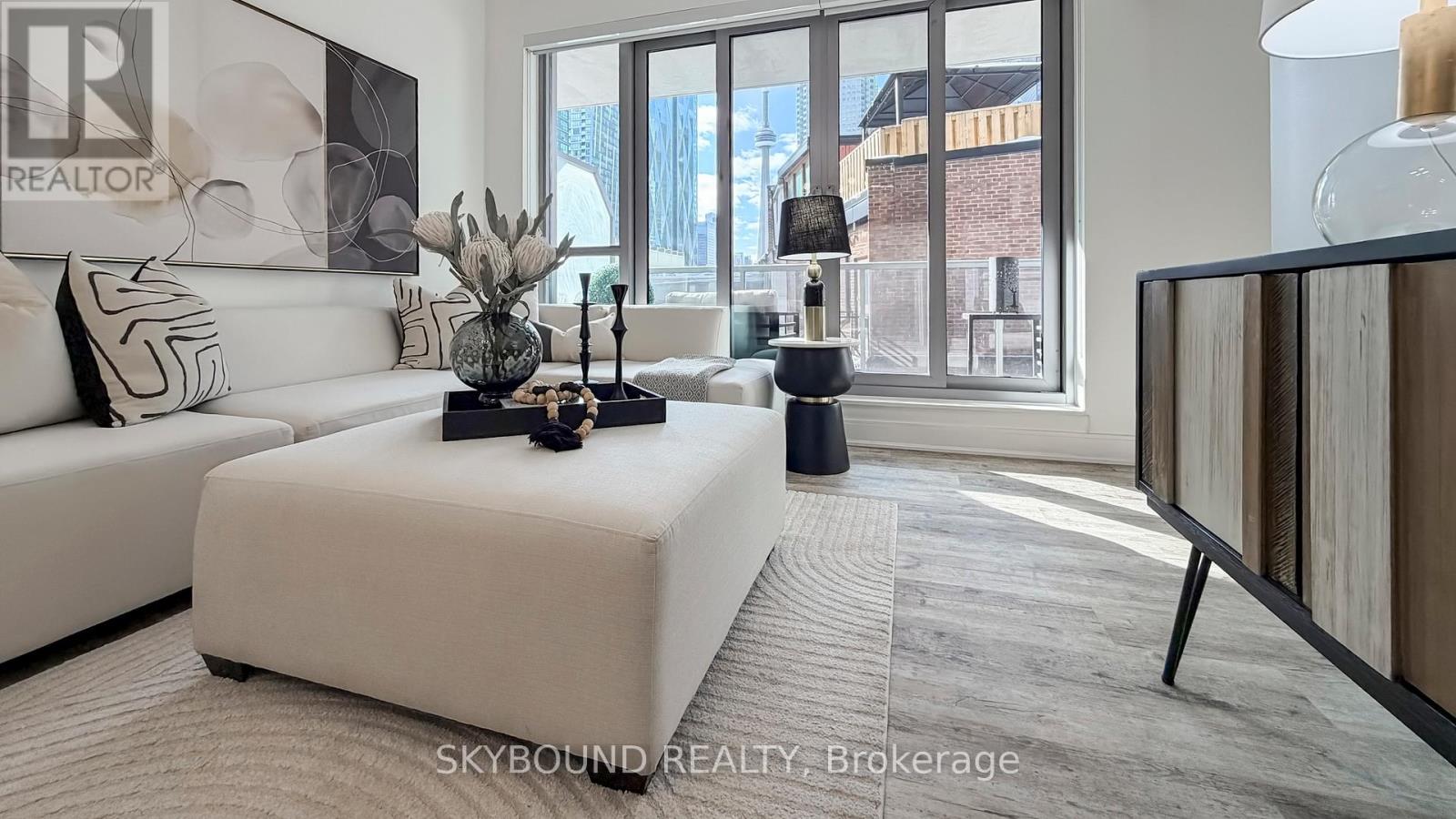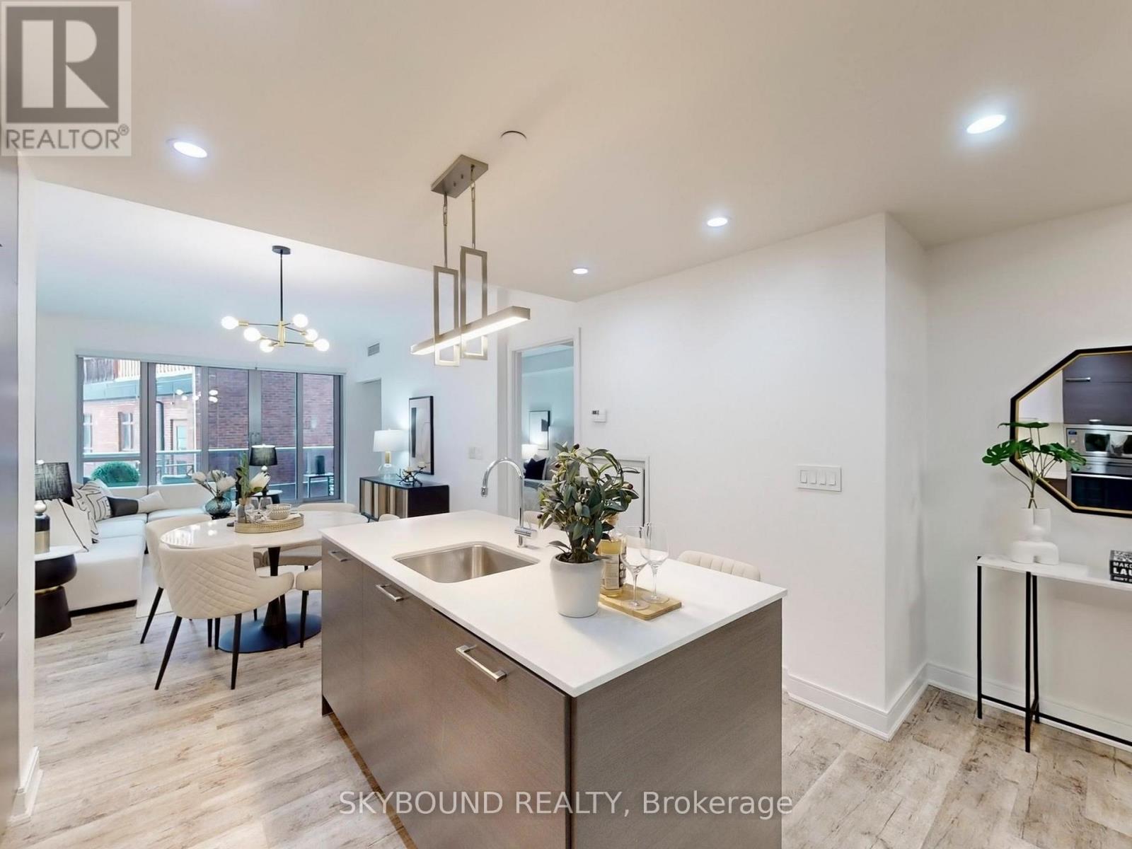 Welcome to The Berczy! Quintessential boutique luxury living in the heart of the St Lawrence Market neighbourhood. This elegant 2-bedroom/2-bathroom suite is well over 900 sq ft with 9' ceilings plus a deep, West-facing 100 sq ft balcony with city skyline views, situated above the building's private, peaceful courtyard. A serene sanctuary with no street or city noise that you'll forget you're in the heart of one of the most vibrant neighbourhoods in the city. Open concept living and dining perfect for entertaining, a European-inspired kitchen with integrated appliances (paneled Liebherr fridge/freezer, AEG glass cooktop, AEG built-in oven, paneled AEG dishwasher, and built-in microwave), quartz counters, and a large island allows for plenty of counter and storage space. The King-sized primary bedroom features a walk-in closet and a spa-like 5-piece ensuite bath with deep soaker tub and separate glass enclosed shower, plus a large guest bedroom, and an additional 3-piece guest bathroom. Extremely durable and waterproof LVT flooring throughout means your floors will withstand just about anything for years to come. Literally a block to St Lawrence Market, directly across from Berczy Park and the Flatiron building, and mere steps to the Financial District and Union Station, with countless dining and entertainment options at your doorstep. Fantastic building amenities: 24-hr concierge, gym, party room, media room, hot tub, sauna, steam room, roof deck with BBQs, private courtyard, pet wash station, visitor parking, and two guest suites. And very pet friendly! **Includes 1 owned parking space and 1 large storage locker**. Welcome home to one of the most coveted buildings in the city. (id:4555)