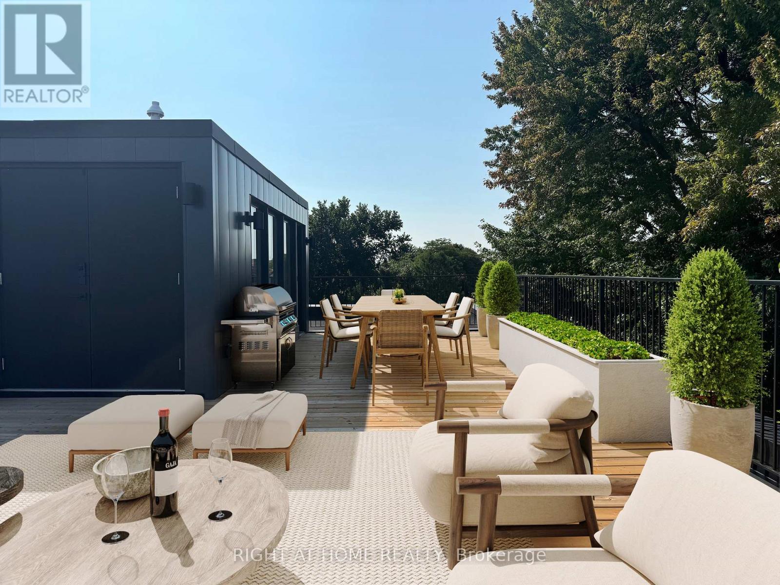 You won't find anything like this - a FULL floor penthouse residence of over 1,400 square feet with an additional 795 square feet of outdoor space, including your VERY OWN rooftop terrace! An utterly unique and private residence, built to the highest standards, designed for exceptional day-to-day living and tremendous entertaining. Inside - hardwood throughout, a chef's kitchen with integrated appliances, gas cooktop and an oversized island, and an oversized living / dining room with tremendous south windows, potlights and fine finishes. 2 full bedrooms, including a primary suite with decadent ensuite bath with shower and walk-in closet. Upstairs, an unrivaled rooftop terrace all to your own, perfect for the urban gardener or anyone who likes to entertain in style. This is elevated and sophisticated urban living in a truly boutique building, designed and built to the highest standards with superior acoustic insulation, oversized windows, individual heating and cooling and superb storage. Perfectly located just moments from the subway, shops, parks, school and Kingston Road Village. Full tarion warranty - be first to call this exceptional home your very own. (id:4555)