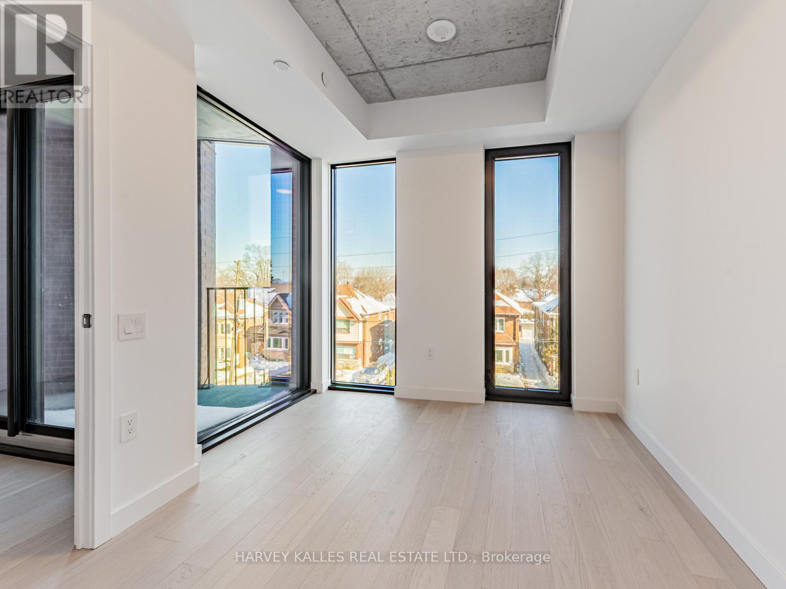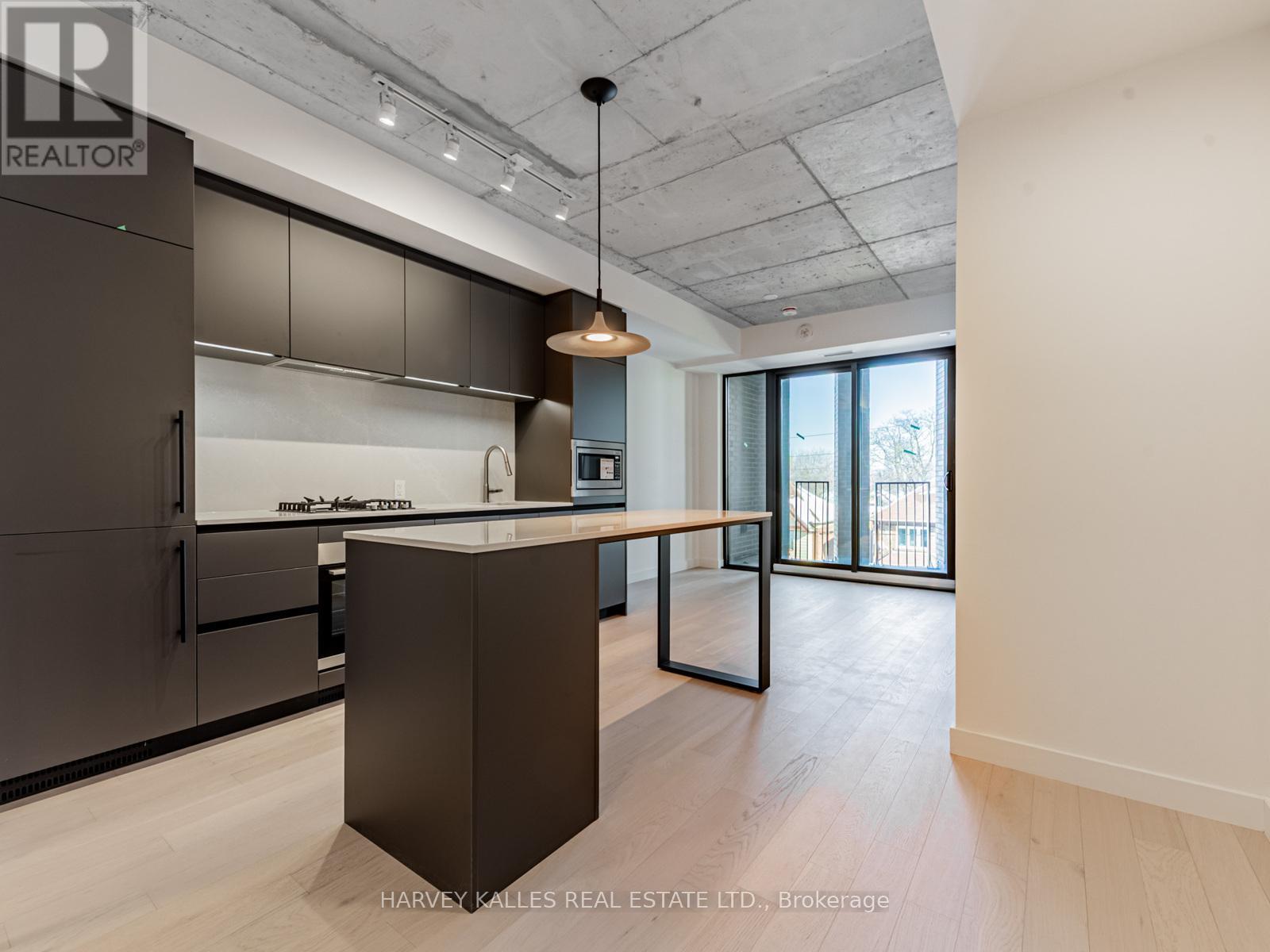 Welcome to Leaside Common, located in one of Toronto's most desirable neighbourhoods. Steps from the new Leaside LRT station, this 2-bedroom condo offers urban convenience surrounded by tree-lined streets, top schools, sports clubs, boutiques, cafes, and restaurants. Inside, you step into 9' exposed concrete ceilings, premium engineered hardwood floors, and floor-to-ceiling windows that fill the space with natural light. The Italian-inspired kitchen features custom cabinetry, soft-closing drawers, quartz countertops, and a full suite of Port and Charles built-in appliances, including a gas cooktop and paneled refrigerator. Retreat to your ensuite bath with a frame less glass shower, rain shower head, porcelain tile, and quartz vanity. Enjoy outdoor living on your private balcony with water, gas and electrical connections. Smart-home features include keyless entry, a mobile resident app, and individually controlled HVAC with fresh-air ventilation. A perfect blend of sophistication, comfort, and community, Leaside living at its finest. (id:4555)