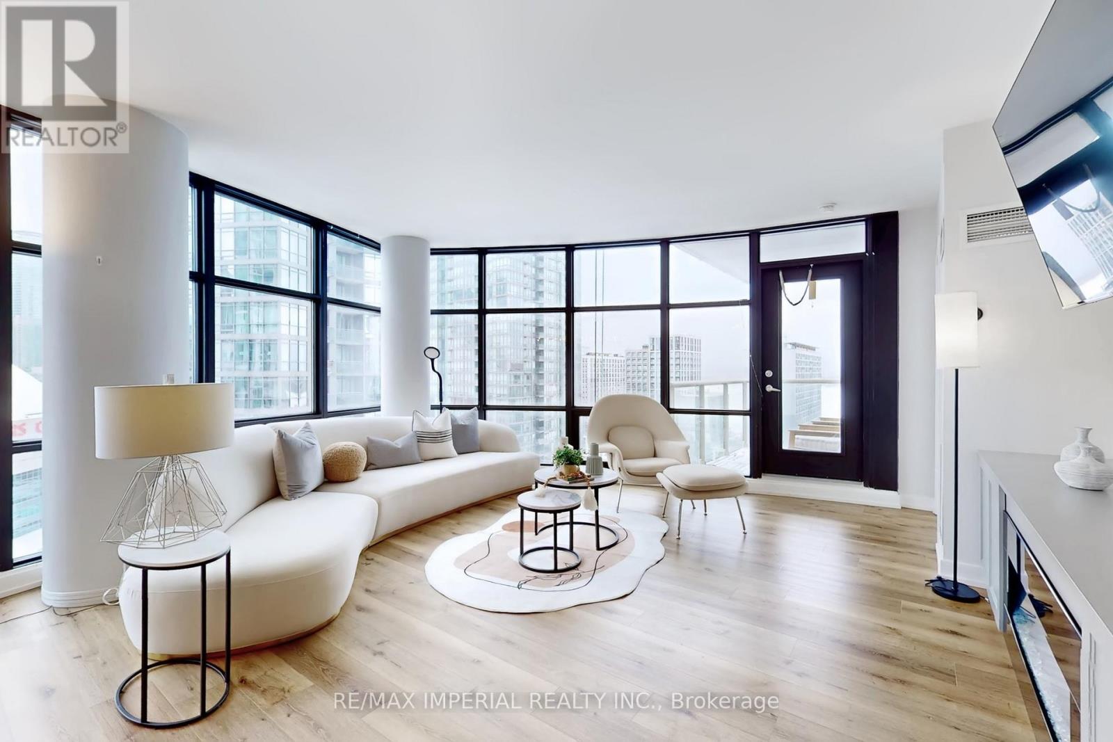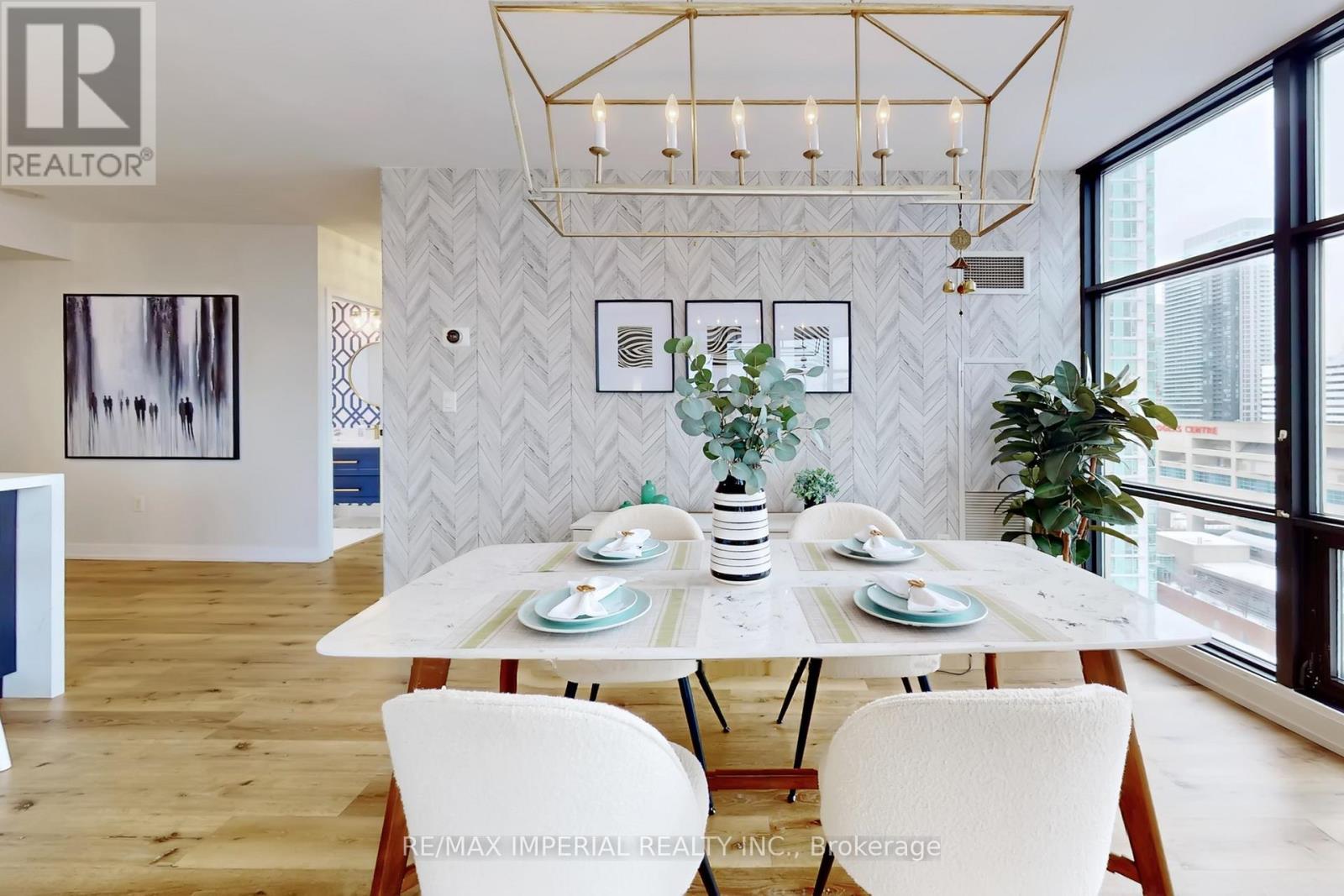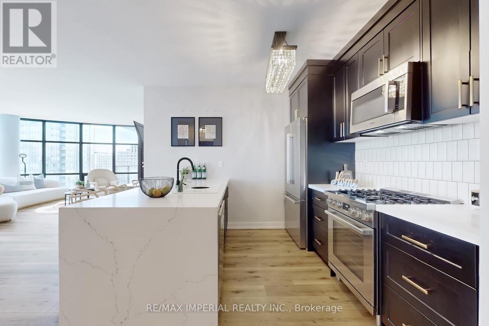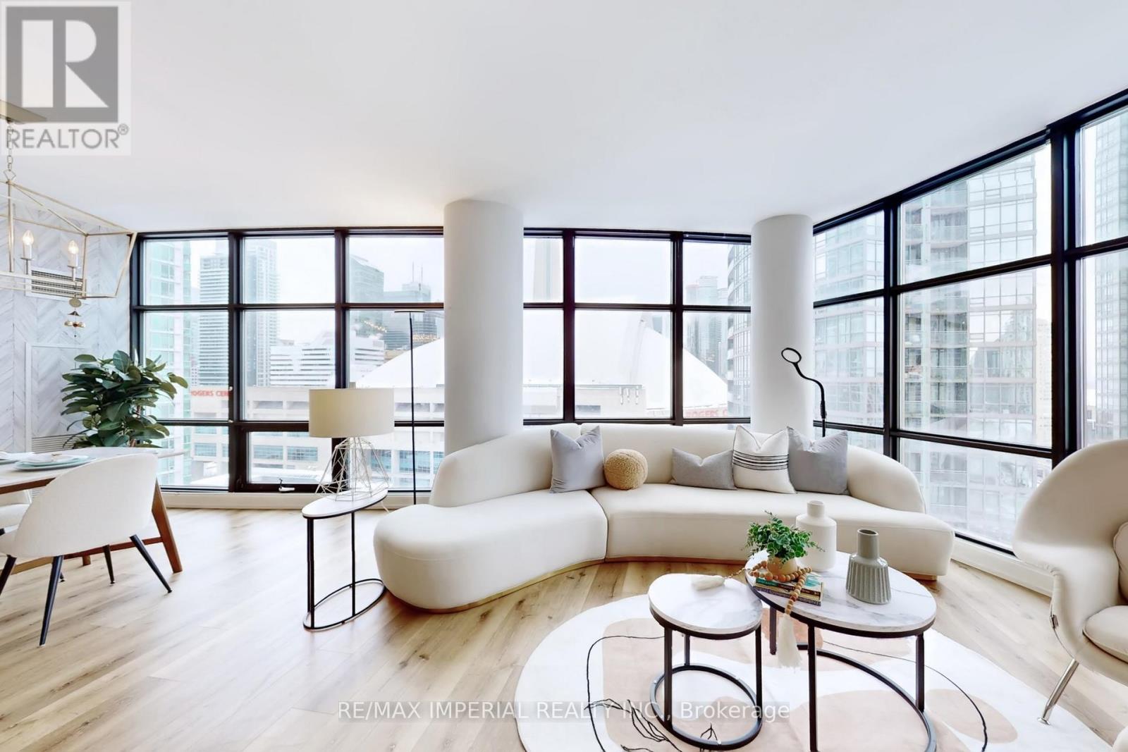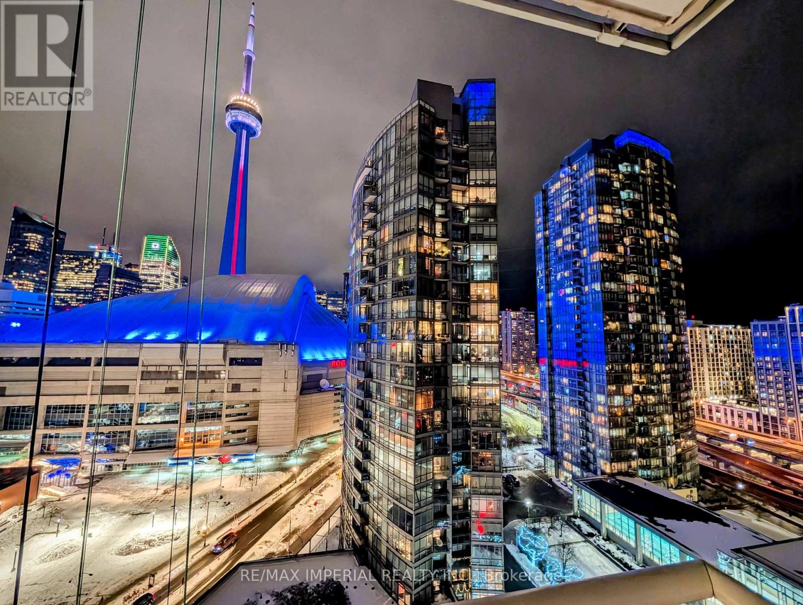 Wake up to Sweeping Lake and Skyline Views from One of the Most Coveted Vantage Points on Toronto's Waterfront. This bright and Elegant Corner Suite offers over 1,200 sq ft of Refined Indoor Living, with Breathtaking South and East Exposures Showcasing Lake Ontario, the Toronto Islands, Rogers Centre, and the CN Tower.Designed for Both Comfort and Sophistication, the Residence Features a Highly Desirable 2+1 Bedroom, 2-bath split-bedroom layout, Ideal for Privacy and Functionality. The open-concept Living and Dining area is Highlighted by Floor-to-Ceiling Windows, a Stylish Accent Wall, Electric Fireplace, and a Walkout to a Balcony Capturing Some of the Best Unobstructed Views in the City.The Modern kitchen is Sleek and Functional, Featuring Stainless Steel Appliances, a Gas Stove, Contemporary Cabinetry, Quartz Countertops, Backsplash, and a Striking Waterfall Island-Perfect for Entertaining. The Primary Bedroom Retreat Enjoys Serene Lake Views, Motorized Blinds, a Generous Walk-In Closet with California Closet organizers, and a Luxurious Ensuite. The Well-Proportioned Second Bedroom and Spacious Den Offer Excellent Flexibility for a Home Office, Fitness Area, or Additional Sleeping Space. Tastefully Updated Bathrooms Complete the Suite.Located in an Unmatched Downtown Waterfront Setting, just Steps to Transit, Shops, Dining, Nightlife, Sports and Entertainment Venues, the Financial District, and the Lakefront. This is urban luxury living at its finest-ready for you to call HOME. (id:4555)