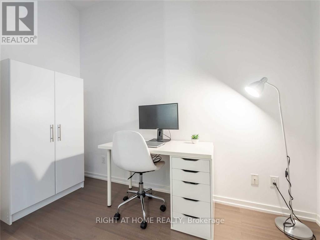 A bright, south-facing 1+1 in the centre of the Entertainment District-spaciously laid out across 569 sq. ft. with soaring ceilings, engineered hardwood floors, recently updated bathroom, a modern kitchen with an island made for morning coffee or late-night takeout. The den flexes as the perfect work-from-home zone, while building perks like a gym and party room make city living effortless. Bonus: there's a grocery store right downstairs, and Toronto's best dining, nightlife, and transit are just steps away. Option to lease furnished. (id:4555)