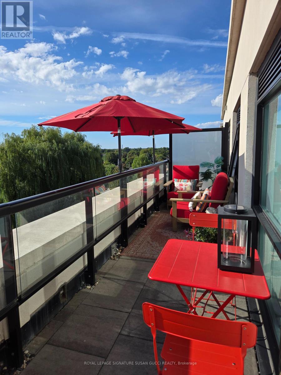 Welcome to 1401 O'Connor Drive #620, a rare and spacious offering in the sought-after Historic Lanes condominium-where a cherished piece of local history has been thoughtfully preserved within a stunning, modern development. This beautifully finished suite offers over 835 sq ft of interior living space with a highly functional 2+1 bedroom, 2 full bathroom layout. The generous principal bedroom features a private ensuite, his-and-hers closets, and a large picture window overlooking a quiet, tree-lined residential pocket with desirable east-facing views and exceptional privacy. The den is currently used as a dining room for easy entertaining but also functions perfectly as a work-from-home space. Enjoy an oversized 150 sq ft terrace-ideal for outdoor dining, lounging, and even your own herb or vegetable garden without compromise. The unit includes one parking space and two storage lockers, a larger-than-average laundry room, and thoughtful storage throughout. Residents enjoy exceptional amenities including a party room with pool table and foosball table, guest suite, yoga studio, lounge/TV room for hosting movie nights, a well-equipped gym with unobstructed views, and a rooftop terrace perfect for BBQs and dining under the stars/ entertaining. With a strong sense of community, social events, and many owner-occupied units who take pride in the building, this home is ideal for down-sizers, families, and urban professionals seeking more space than the average condo. Don't miss this rare opportunity-units like this seldom come available. (id:4555)