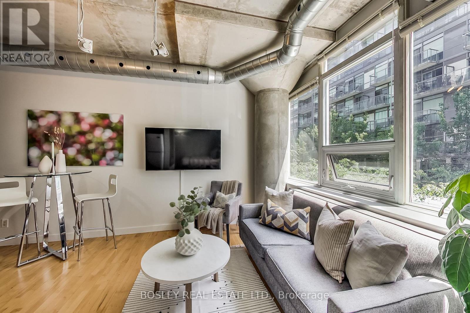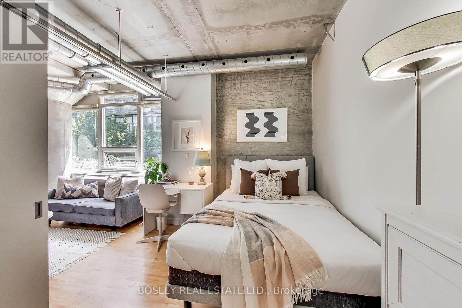Welcome to the Stewart Lofts! Rarely Available Boutique 1 Bed Loft in the Heart of the Fashion District, at King and Bathurst. Bright, South Facing Floor Plan Featuring 10ft Ceilings with Exposed Ductwork, Huge Bedroom Closet, Gas Stove and Oversized Entry Closet. New Dishwasher (2025), New Washer/Dryer (2025). Located Across from1Hotel and a 1 Minute Walk to the Dog Park. Steps to 24hr TTC, Shopping, Cafes, Parks, Restaurants &Entertainment Right Outside Your Door! Walk Score of 98, Don't Miss Out!! (id:4555)