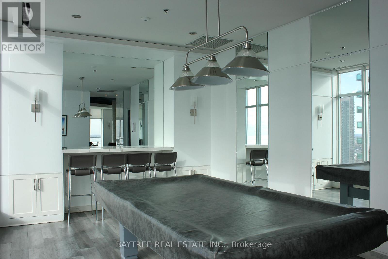 Welcome to Voyager I at Waterview by Monarch Developments, a premier waterfront residence in Toronto's vibrant Humber Bay Shores, just minutes from the downtown core. This exceptionally well-maintained, never-before-tenanted suite (originally a 2 bedroom layout), has been thoughtfully converted into an expansive 700 SF+ open-concept One Bedroom + Den, perfectly suited for modern living and effortless entertaining. The interior features 9Ft ceilings, floor-to-ceiling windows, luxury finishes, hardwood floors and no carpet throughout, while the modern kitchen boasts a sleek breakfast bar, brand new stainless steel fridge, stove and microwave along with a built-in dishwasher and in-suite security panel. The primary bedroom offers a serene retreat with a private ensuite, soaker tub and a large custom closet. The highly versatile, oversized den easily functions as a second bedroom, home office or media room. Enjoy seamless indoor-outdoor living with three distinct walkouts to a massive 155 SF balcony showcasing stunning southwest views of the lake and city. This all-inclusive lease covers heat, hydro and water and includes the use of one locker and a prime parking spot conveniently located next to the elevator. Residents have access to world-class resort-style amenities including: 24hr security, indoor pool, fitness centre, hot tub, sauna, golf simulator, theatre, guest suites and an exclusive Rooftop Sky Lounge. This pristine residence is just steps to waterfront trails, parks, shops, restaurants, TTC, GO Transit, major highways and just about anything you could need. Don't miss out on this exceptional value and rarely offered suite in one of Toronto's most sought after Waterfront communities! (id:4555)
