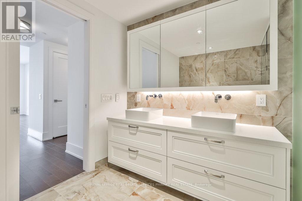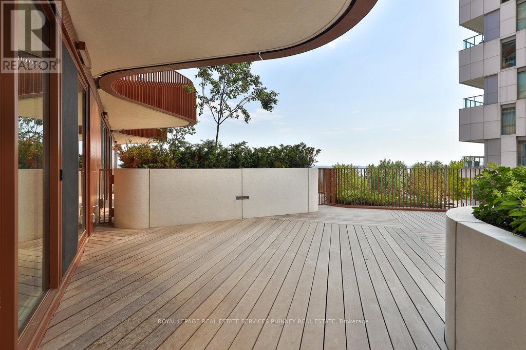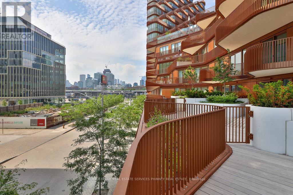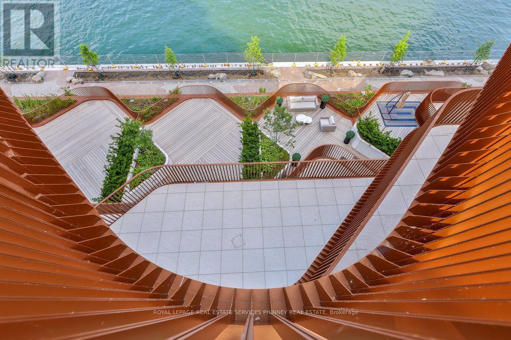 Discover unparalleled resort-style living on Torontos waterfront in the vibrant Queens Quay neighbourhood.Tridels latest waterfront masterpiece is just steps away from the scenic promenade, Cherry Beach, and the iconic Waterfront Trail. The striking architecture of this development adds a bold presence to Torontos Port Lands, with a host of world-class amenities that cater to your every need. Enjoy access to a state-of-the-art fitness centre, multiple elegant lounges, 24/7 concierge service, and a breathtaking rooftop deck with a pool and expansive entertaining spaces that offer panoramic views of the water and skyline.This exceptional two-storey residence, spanning over 2,400 square feet, showcases exquisite finishes throughout. The expansive main level is highlighted by a gourmet two-tone kitchen featuring top-tier appliances and a large waterfall island, perfect for both cooking and entertaining. The spacious living room seamlessly flows out to a generous terrace overlooking the serene beauty of Lake Ontario. Upstairs, a large private balcony accessible from two bedrooms offers sweeping water views. The primary suite is a true retreat, with a walk-in closet, a second closet, and a luxurious spa-inspired ensuite complete with double sinks, a freestanding tub, a glass-enclosed shower, and a private toilet.A secluded den with large sliding doors offers the ideal space for an office or guest bedroom. The second floor also features a convenient laundry room and ample storage, ensuring comfort and practicality.At Aqualuna, theres no need to leave the city to experience the tranquility of a resortits all right here, waiting for you. (id:4555)