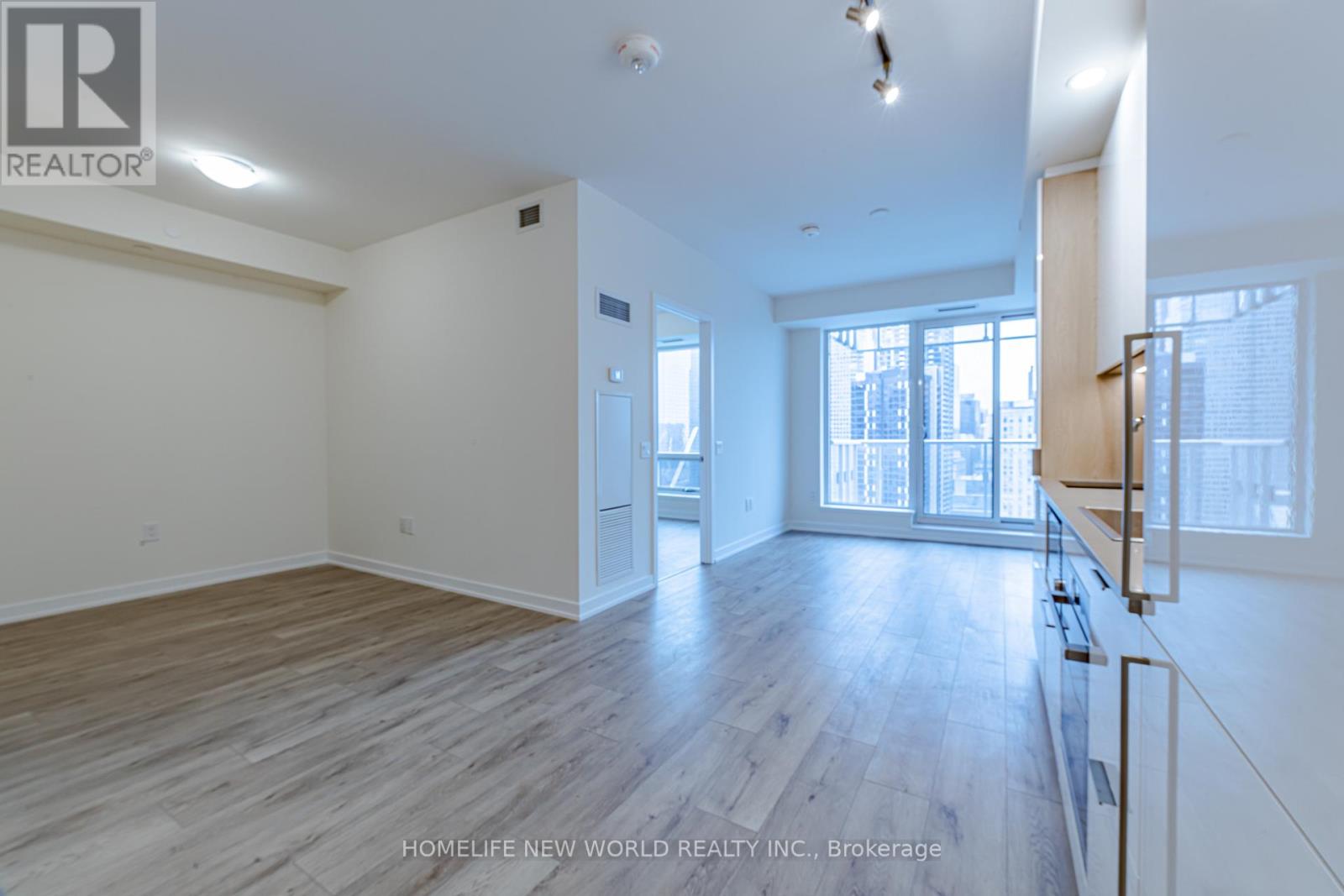 Welcome To Elevated Urban Living At The Iconic One Yonge. This Meticulously Maintained 617 Sq Ft 1+Den Suite Features A Functional Open-Concept Layout With Contemporary Light-Toned Laminate Flooring Throughout. The Modern Chef's Kitchen Is Equipped With Integrated Bosch Appliances, Sleek Glossy Cabinetry, And Quartz Countertops. Enjoy A Spacious Living Area Leading To A Balcony With Captivating Metropolitan Views Of The City Skyline. The Versatile Large Den Provides Plenty Of Space For A Second Bedroom Or Private Executive Office. Luxury Finishes Extend To The Bathroom With Designer Textured Tile Work. Includes An In-Suite Over-Sized Washer And Dryer For Ultimate Convenience.World-Class Building Amenities Include A 24-Hr Concierge, Fitness Centre, Spin Room, Party Room, Outdoor Lounge With BBQ, And Unique Features Like An Outdoor Track And Dog Washing Stations. The Massive 50,000 SF Community Centre Is Conveniently Located Next Door, Boasting A 6-Lane 25M Pool And Full-Size Basketball Courts. Perfectly Positioned Steps From The Waterfront, Sugar Beach, And Union Station. Unbeatable Grocery Access With Farm Boy, Loblaws, And Metro All Nearby. Rent Includes Heat And Water. A Truly Prestigious Address In The Heart Of Toronto! (Photos Were Taken Before The Current Tenant Moved In.) (id:4555)