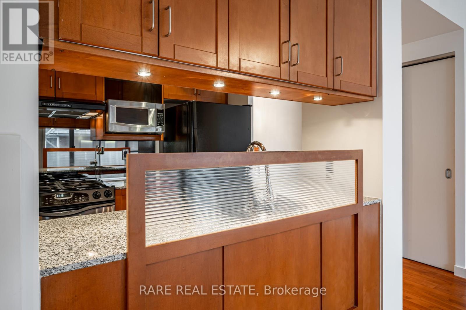 The Perfect 1 Bedroom Suite In Radio City Condos! Large and open 598 Sqft unit with 2 walkouts to huge private balcony Overlooking Quiet Courtyard. All Laminate Floors, Granite Counters In Kitchen With Gas Stove! Outdoor Gas Line For Bbq On Balcony. Bedroom With Sliding Door Walkout To Balcony, and custom closet. Prime Central Location, but set in a quiet neighbourhood. Next To UFT, Ryerson, Hospitals. Historic Maple Leaf Loblaw's Next Store. Walk To Subway Station. High 9Ft Ceilings. 24 Concierge, Gym, Guest Suites, Party Room, Rec Room, Visitors Parking. (id:4555)