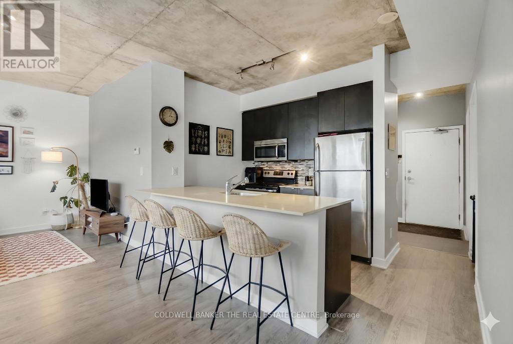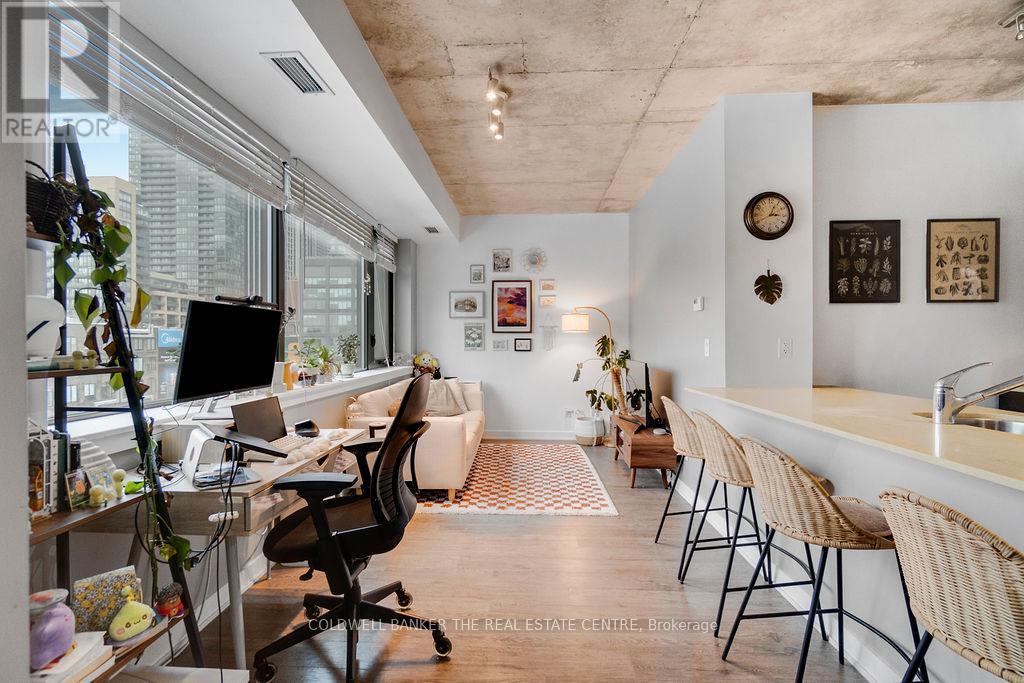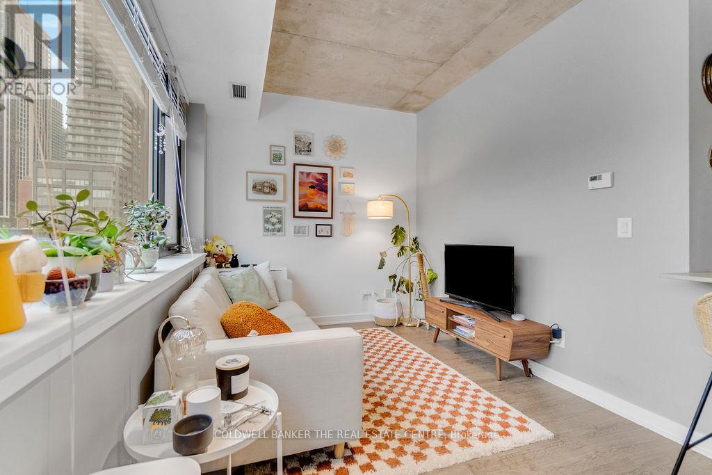 Welcome to stylish boutique living in the heart of vibrant King West. This beautiful 1 bedroom suite is nestled in one of Toronto's most sought after boutique buildings on prestigious Millionaire's Row. The thoughtfully designed 606 sq ft layout features 9-foot ceilings and a sleek modern kitchen with stainless steel appliances, creating a bright and contemporary space perfect for everyday living. Step out onto the spacious north facing balcony and enjoy open city views an ideal spot for morning coffee or evening relaxation. This suite also includes the convenience of ensuite laundry, parking, and a locker. Perfectly positioned directly across from The Well, you'll have Wellington Market, Indigo, Shoppers, banks, cafés, and shops right at your doorstep. Enjoy being steps from Toronto's premier dining, shopping, and nightlife, while remaining just minutes to the Financial District, Queens Quay, and Spadina. Experience chic downtown living where style, comfort, and convenience come together. Some photos have been virtually staged. (id:4555)