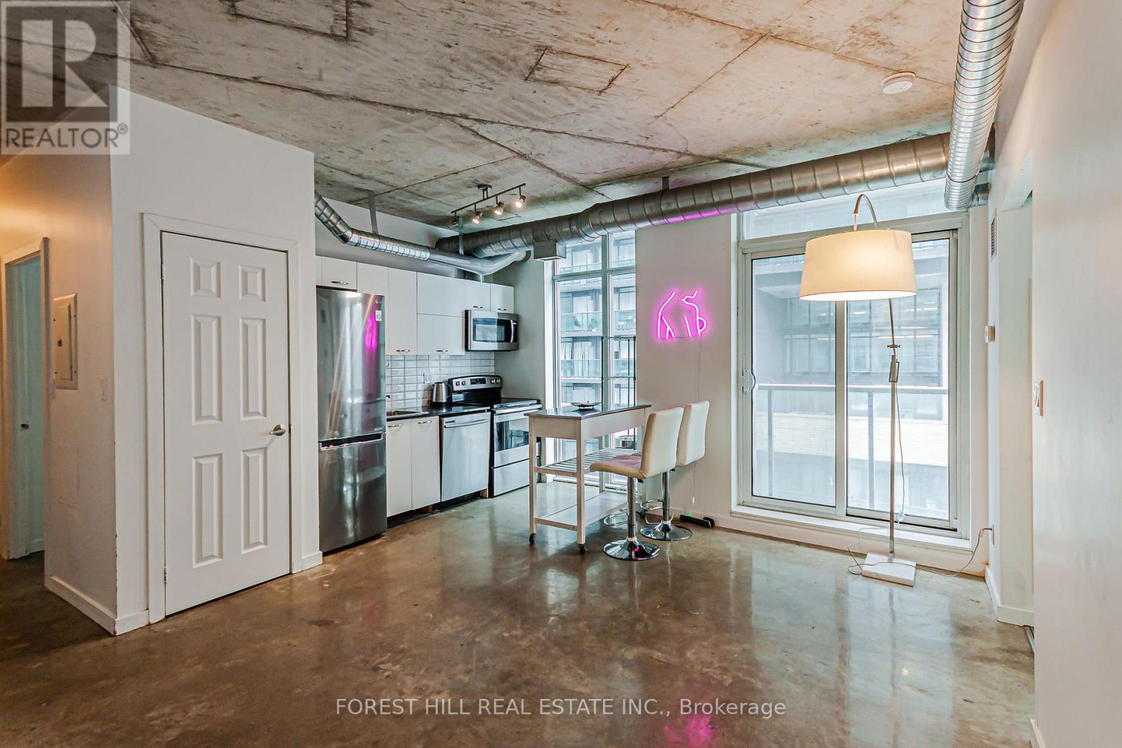 Bright and airy soft loft with polished concrete floors, exposed ceilings, and expansive floor-to-ceiling windows creating a striking industrial aesthetic. Open-concept living space flows seamlessly to a private balcony with lake views. Quiet suite with a desirable split two-bedroom layout, both bedrooms offering windows, closets, and abundant natural light. Updated with stainless steel appliances.Offered partly furnished for added convenience. Live in the heart of vibrant Queen West and enjoy excellent amenities, including a gym and pool. Parking and Locker included. (id:4555)
