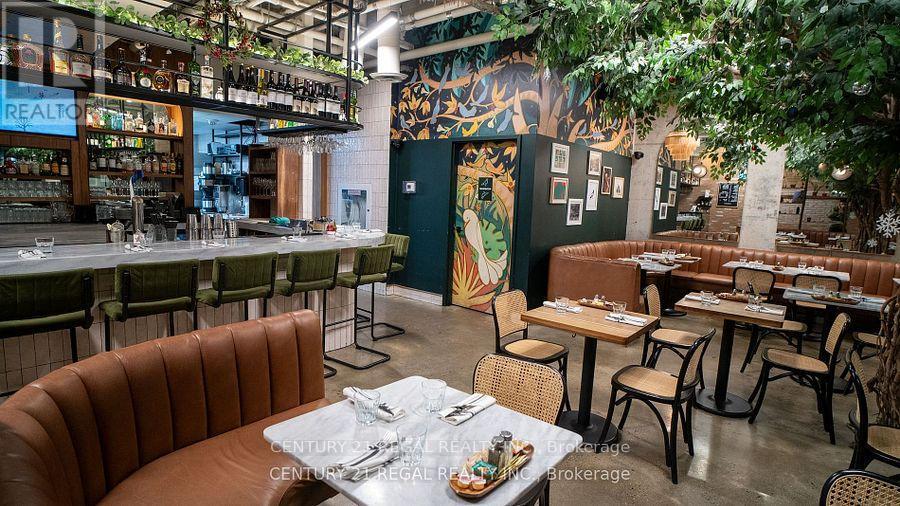 IMPRESSIVE RESTAURANT FOR SALE WITH A KILLER DOWNTOWN LOCATION AND PREDOMINANT FRONTAGE ON KING WEST AVAILABLE FOR REBRAND. 2100 SQUARE FOOT OF CLEAN, TASTEFULLY FINISHED SPACE AND A LARGE COMMERCIAL KITCHEN. ADDITIONAL PREP AND STORAGE AREA IN THE LOWER LEVEL. LICENSED FO 71 GUEST INSIDE AS WELL AS AN ADDTIONAL 11 ON THE FRONT PATIO. TASTEFUL, HIGH END FINISHES AND REAL ATTENTION TO DETAIL WAS PUT INTO EVERY INCH OF THIS UNIT. LARGE EXHAUST HOOD EQUIPPED WITH FIRE SUPPRESSION AND A DECKED OUT KITCHEN WITH FULL RANGE THAT HAS EVERYTHING A CHEF NEEDS. BUILT FOR HIGH VOLUME PRODUCTION. AMPLE FRIDGE AND FREEZER SPACE. THE DINING ROOM IS STUNNING. POLISHED CONCRETE FLOORS, WRAP AROUND LEATHER BANQUETTES, HIGH CEILINGS, EXPOSED BRICK WALLAS AND GREAT NATURAL LIGHT FROM T THE FLOOR TO CEILING FRONT FACADE. (id:4555)