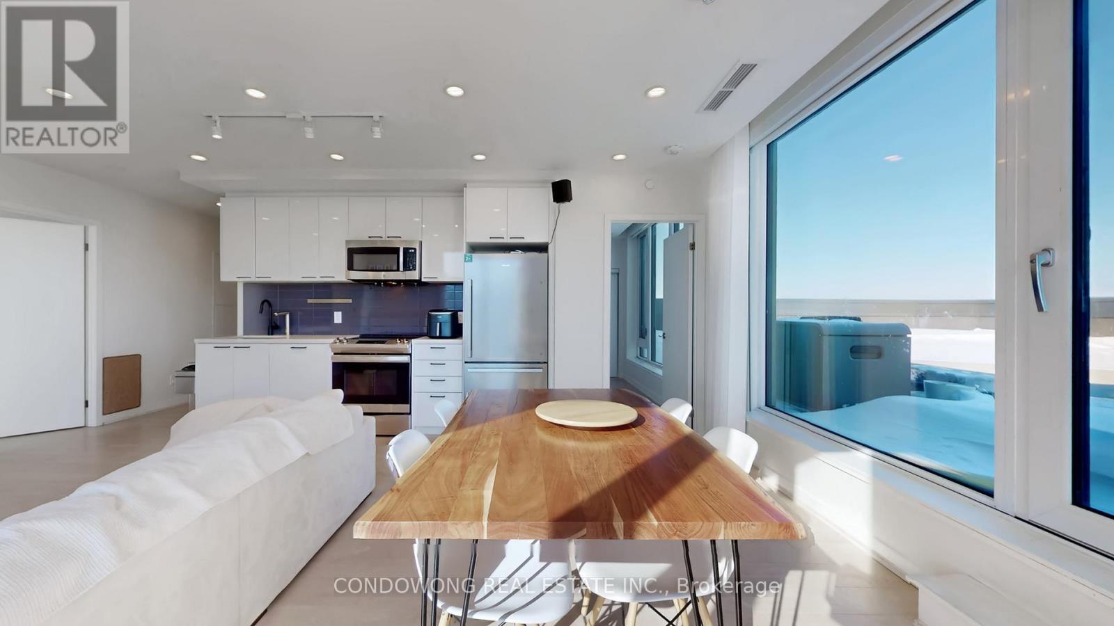 Rare Fully Furnished Penthouse with 1,200+ SQFT Private Terrace! Experience the crown jewel of Reunion Crossing in this stunning, turnkey 2-bedroom plus den suite, featuring an unprecedented 1,200+ sq. ft. private terrace with unobstructed city views. This massive outdoor oasis comes fully equipped for elite entertaining and lounging. Inside, enjoy a designer-furnished space boasting floor-to-ceiling windows, a sleek modern kitchen with premium stainless steel appliances, and a high-end 75-inch Samsung OLED TV for the ultimate cinema experience. The versatile den is perfectly set up as a professional home office, and the internet is included in the rent for total convenience. This unit also features a premium parking spot located directly beside the elevator entrance. Unbeatable location where The Junction meets the Stockyards-enjoy direct access to the St. Clair Streetcar and a 5-minute walk to the future GO Station. Building perks include a 24hr gym, Scandi-inspired co-working lounge, pet spa, and an "Urban Garage" workshop. Steps to trendy craft breweries and organic grocers. The city's best terrace and a seamless move-in experience await! (id:4555)