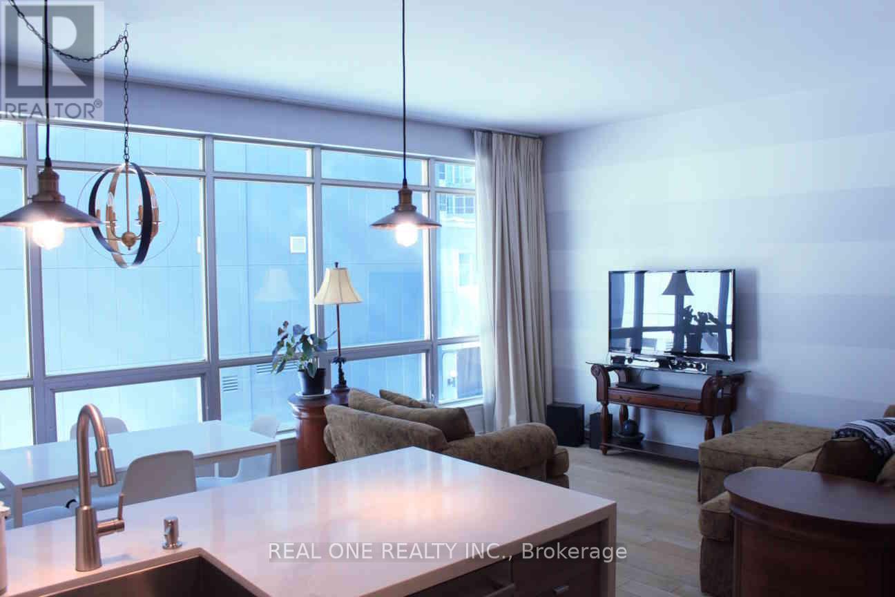 Prime Location! Downtown Luxury Meets Parkside Serenity. Experience the ultimate urban lifestyle at the highly coveted 'Soho Met' in the heart of King West. This spacious 1-bedroom suite boasts soaring 9ft ceilings and floor-to-ceiling windows, flooding the open-concept living space with natural light. Tucked away by the quiet greenery of Clarence Sq Park, you get the best of both worlds: city energy and a peaceful retreat. Featuring stylish laminate floors, ample bedroom storage, and an upgraded air conditioning system. Enjoy 24hr security and exclusive access to the hotel's newly renovated health club, indoor pool, and sauna. World-class dining, sports, and transit are right at your doorstep! (id:4555)