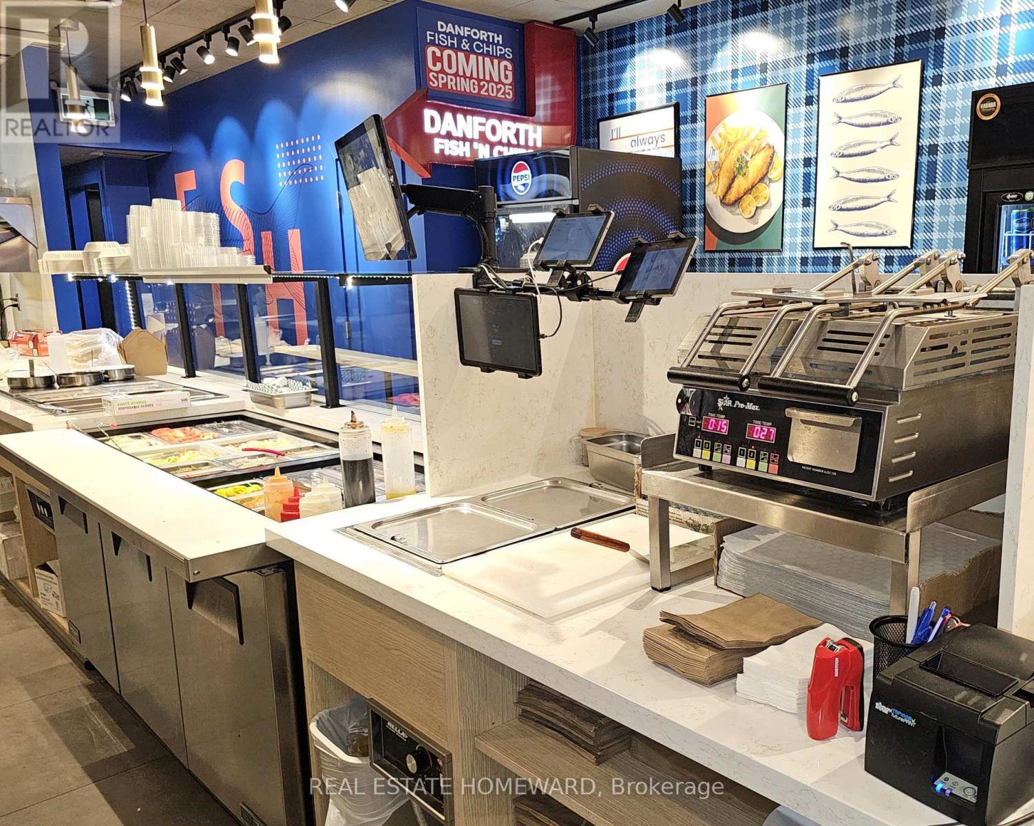 A rare and exceptional opportunity to purchase a Middle Eastern Restaurant located in a high demand and very busy area, across from Shoppers World, at Danforth Ave. and Victoria Park. It has a technologically advanced dine-in and take-out system and serves a diverse client base. A complete turnkey package with polished operations ready for a seamless transition. Including recipes, website, social media, and menu board conversion to your brand name. 1,200sf of retail space plus lower level for prep, walk-in fridge and catering preparation. Lease to July 2029, monthly rent is only $6,074.55+HST. A highlighted equipment list is attached to the listing.A great opportunity for the right restauranteur (id:4555)