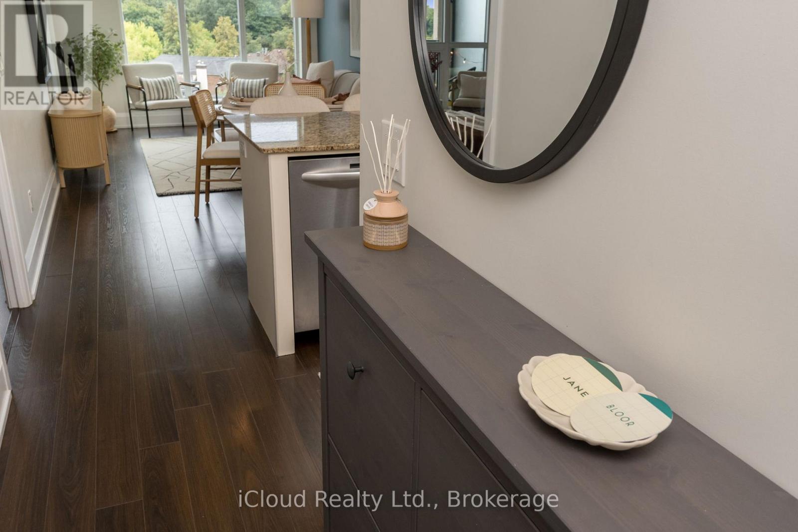 This well laid laid out 807 sq. ft. condo delivers comfortable city living in an upscale neighbourhood where everyday life is effortlessly walkable so daily errands, dining, and cafés are easily done on foot. Jane subway station is just a few minutes away making car-free living not only possible, but ideal. Inside, the spacious layout offers a large primary bedroom with walk-in closet & private ensuite bath. The versatile open-concept den with custom sliding doors easily adapts as a second bedroom, or home office. A modern kitchen with extended upper cabinetry, granite counters, and designer finishes flows seamlessly into the living space, while a separate laundry room adds valuable extra storage. The rare bonus of a second full washroom makes this layout exceptionally functional for everyday living and entertaining. Soaring 9-foot ceilings, stylish lighting, and custom window coverings frame oversized south-facing windows with views of the tudor mansions, greenery, and a subtle glimpse of the lake as a stunning backdrop to your day-to-day life. Set in an luxury building steps to Bloor West Village shops and restaurants, Brule Park, the Humber River, and scenic lakeside trails, this is urban living done right as it's connected, convenient, and lifestyle-focused. Parking is easily rented in the building). Photos were taken when the property was previously staged. The unit is currently vacant and no longer staged. (id:4555)