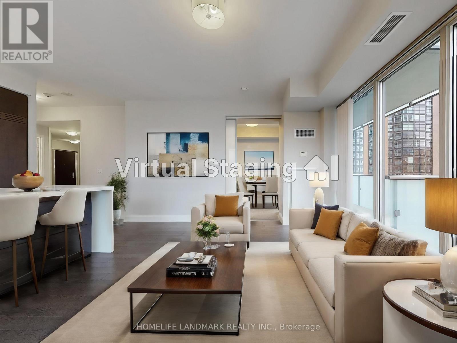 Rarely offered corner unit at U Condos with parking and locker included. This spacious 892 sq.ft. 2-bedroom, 2-bathroom suite features a highly desirable split-plan layout perfect for roommates or a home office setup. High-end upgrades include wide-plank hardwood flooring, a modern kitchen with dark cabinetry and integrated appliances, and floor-to-ceiling windows that flood the space with natural light. The standout feature is the massive wrap-around balcony offering panoramic corner views. Unbeatable location next to St. Michael's College and U of T, with easy access to the subway and financial district. Building amenities include a gym, party room, and rooftop terrace. (id:4555)
